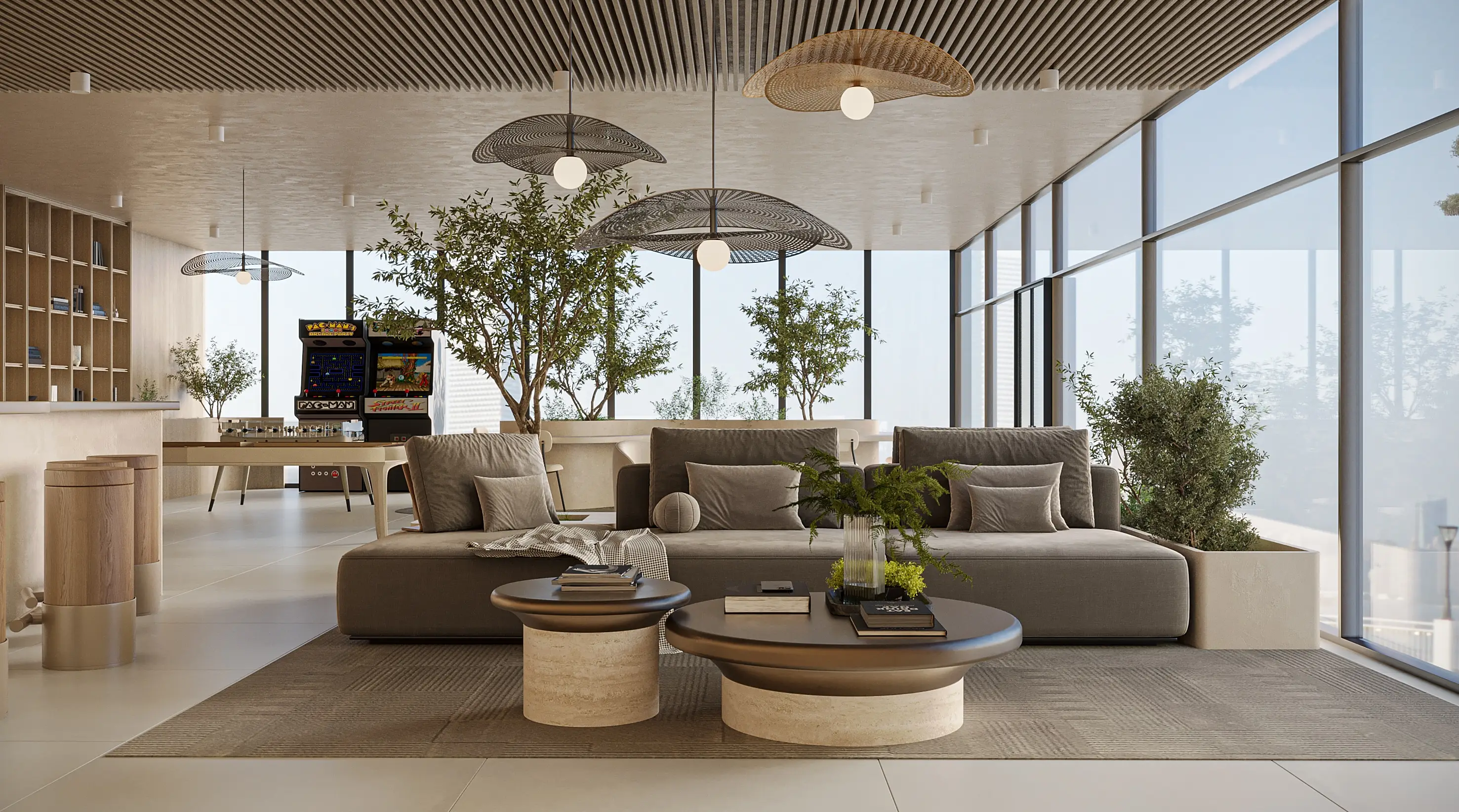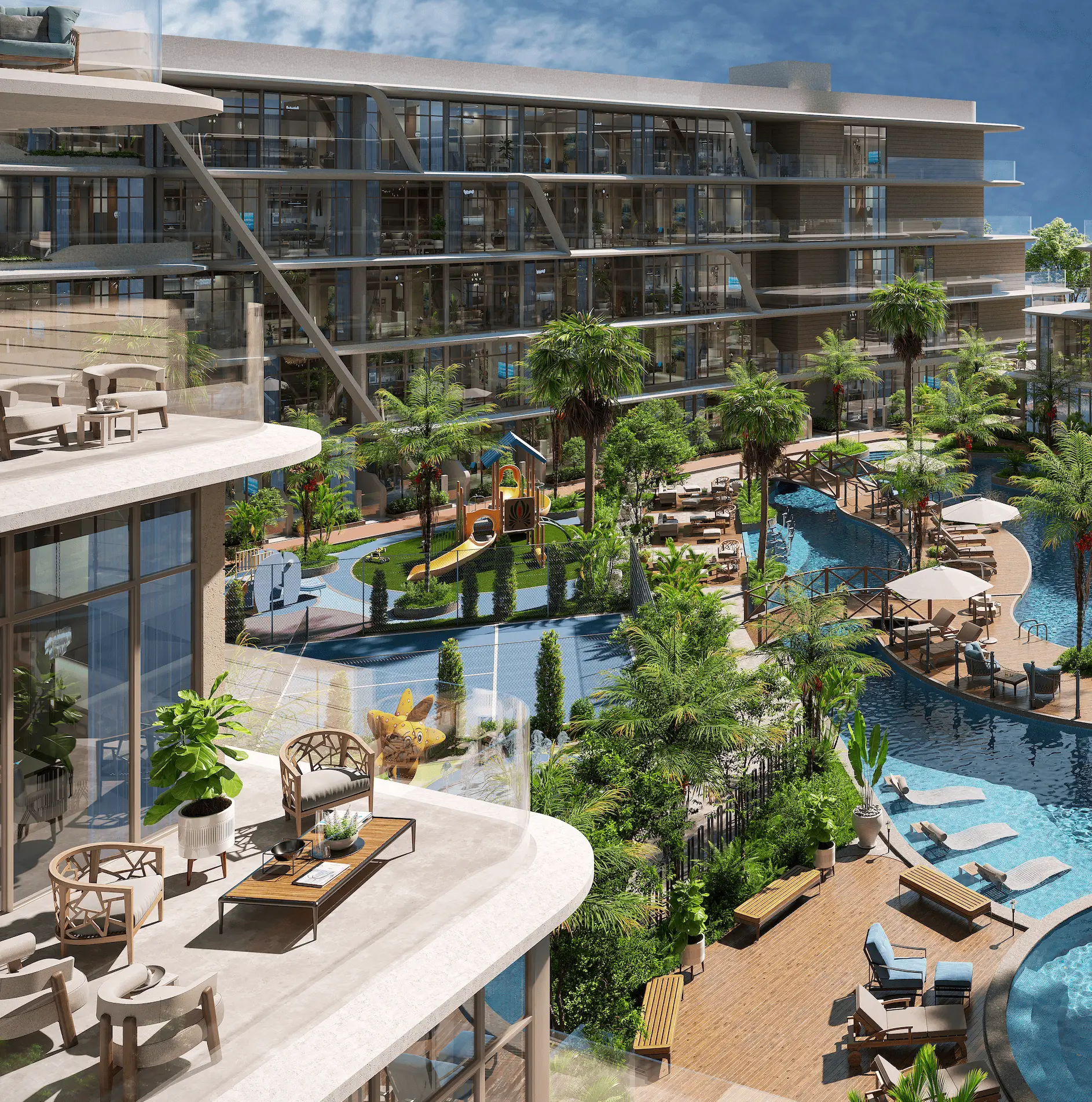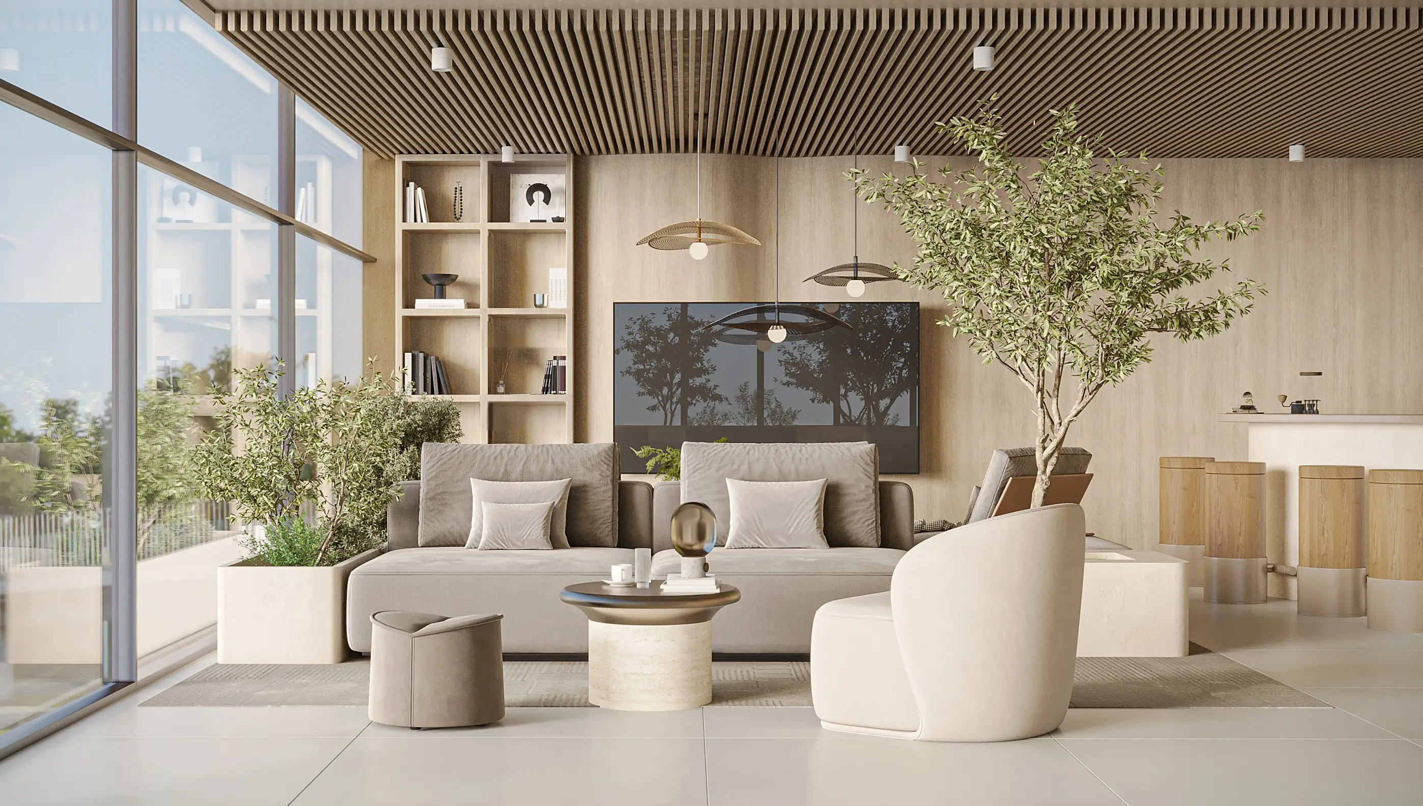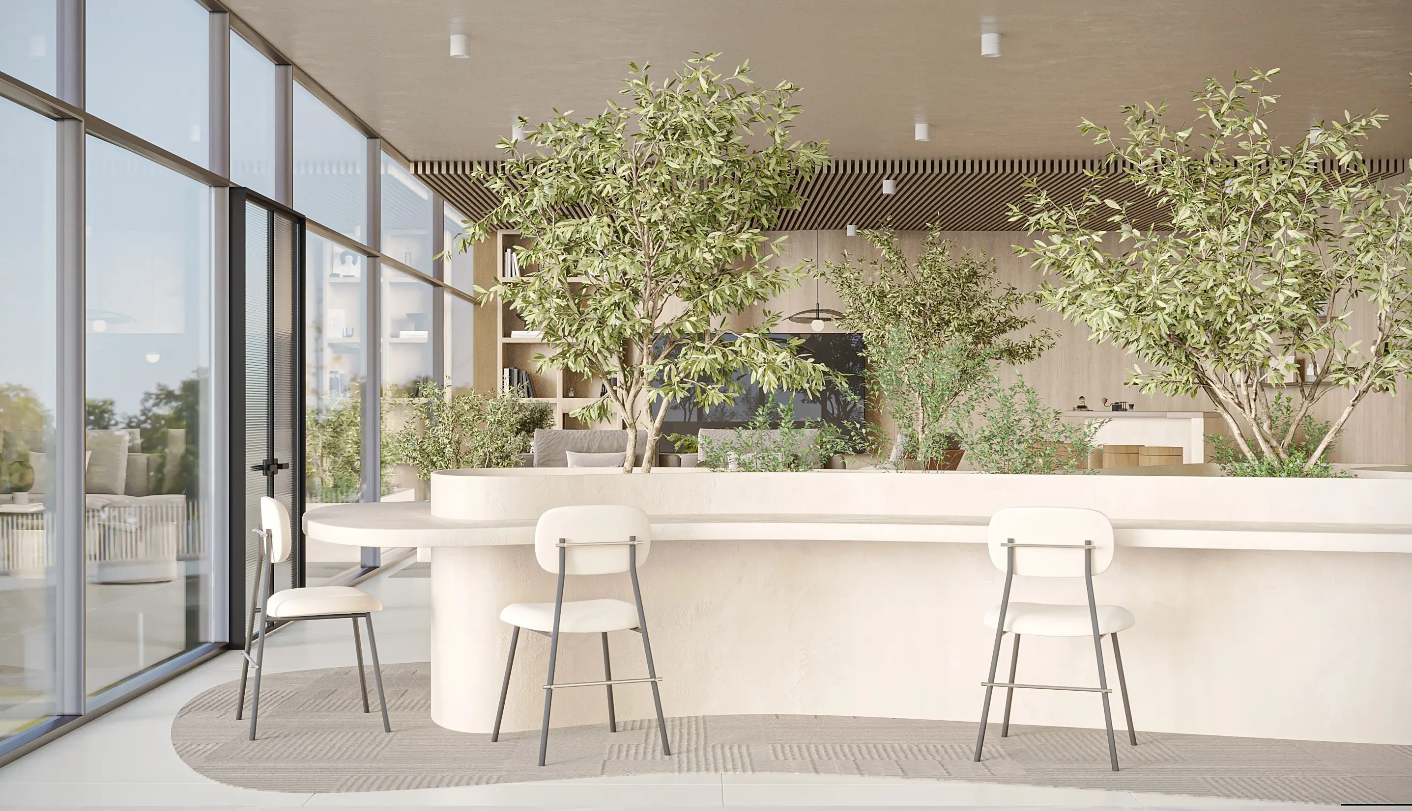 The development offers studios, as well as 1- and 2-bedroom apartments. The layouts are thoughtfully designed for maximum comfort: spacious living areas, large windows that fill the interiors with natural light, and a neutral palette that enhances the feeling of balance and warmth. Each space is oriented toward a modern lifestyle, combining functionality, aesthetics, and comfort.