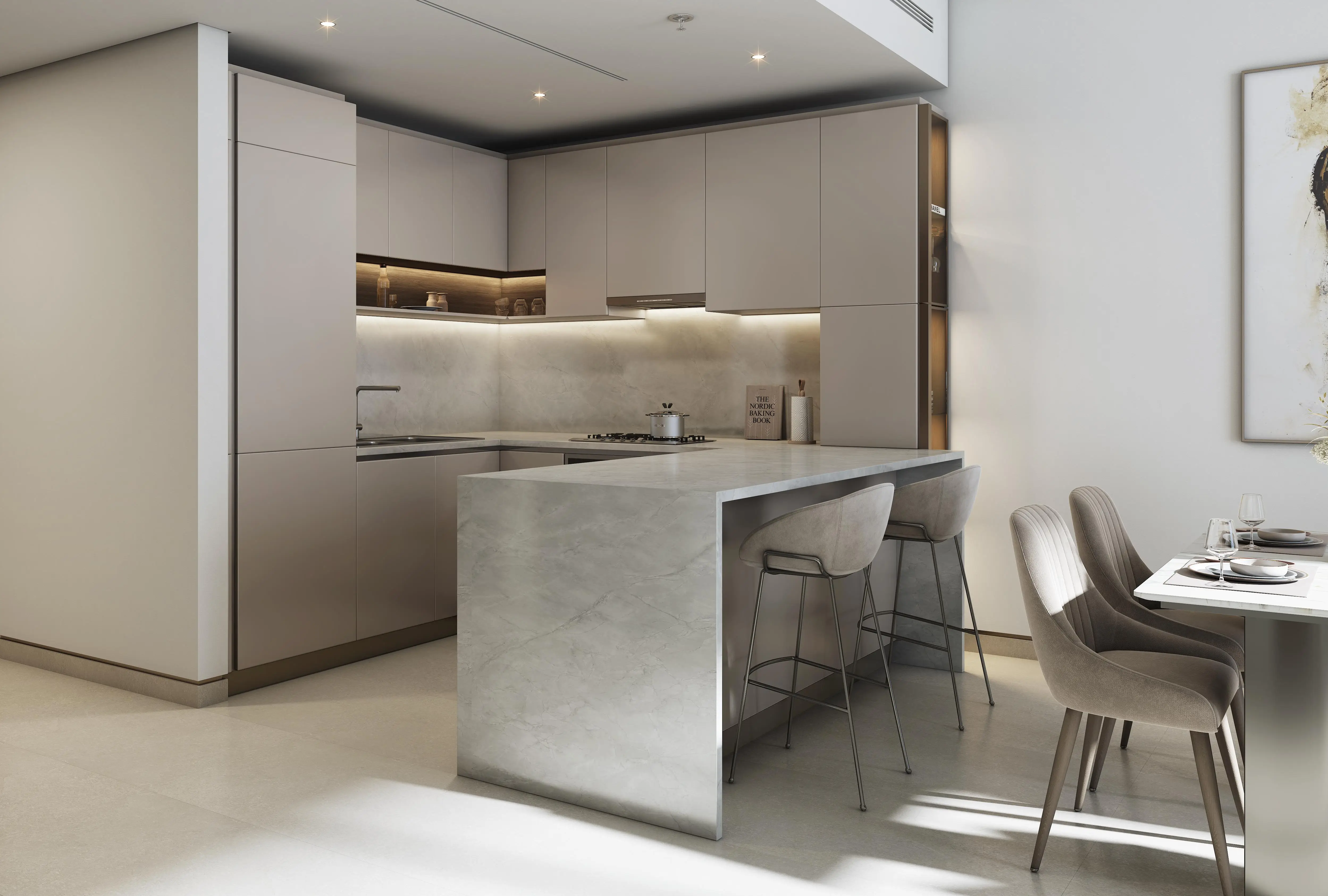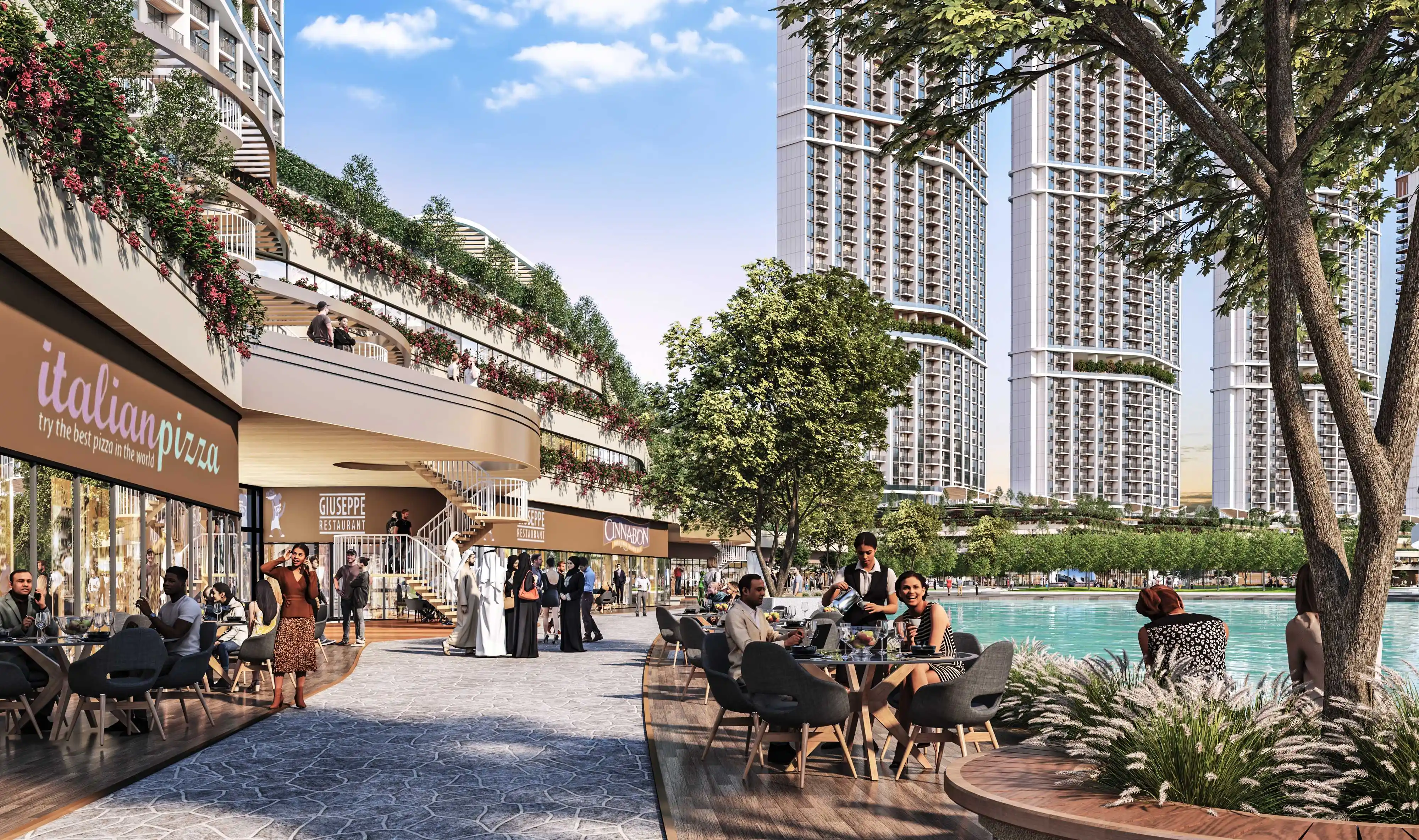 Tennis court 320 Riverside Crescent is the second tower in the Riverside Crescent development by Sobha Realty in Hartland 2. The building consists of two basement levels, a ground floor, four podiums, fifty-nine residential floors, and a roof. The project offers modern one-, two-, and three-bedroom apartments featuring well-thought-out layouts, stylish designs, and spacious interiors. Natural lighting creates a bright and inviting ambiance.