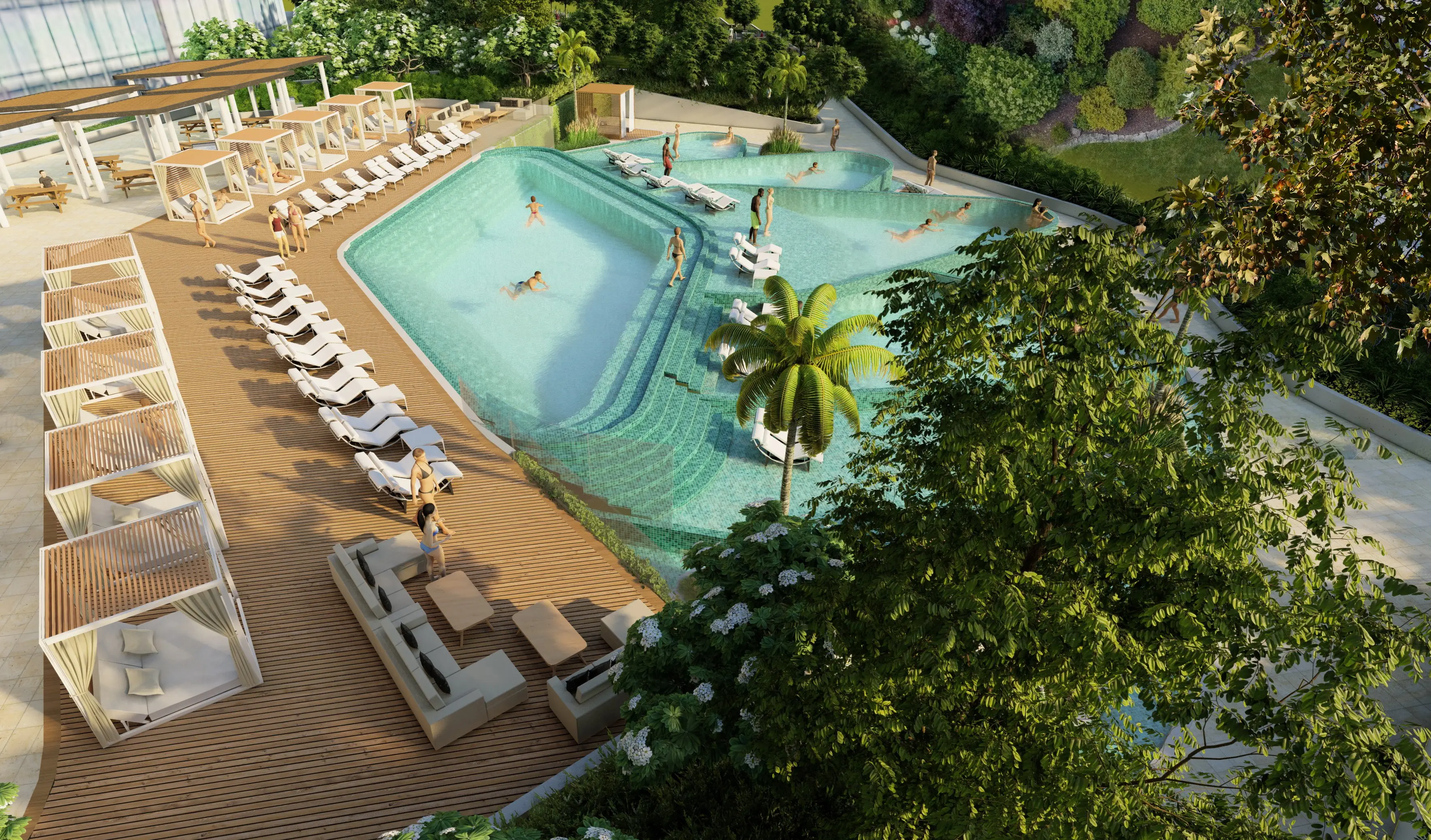 Residents have access to a wide range of amenities. The complex features landscaped gardens, well-maintained green spaces, a state-of-the-art fitness center, a lagoon-style swimming pool, a children's playground, as well as jogging, cycling, and walking tracks. Social spaces are designed for relaxation and community interaction.