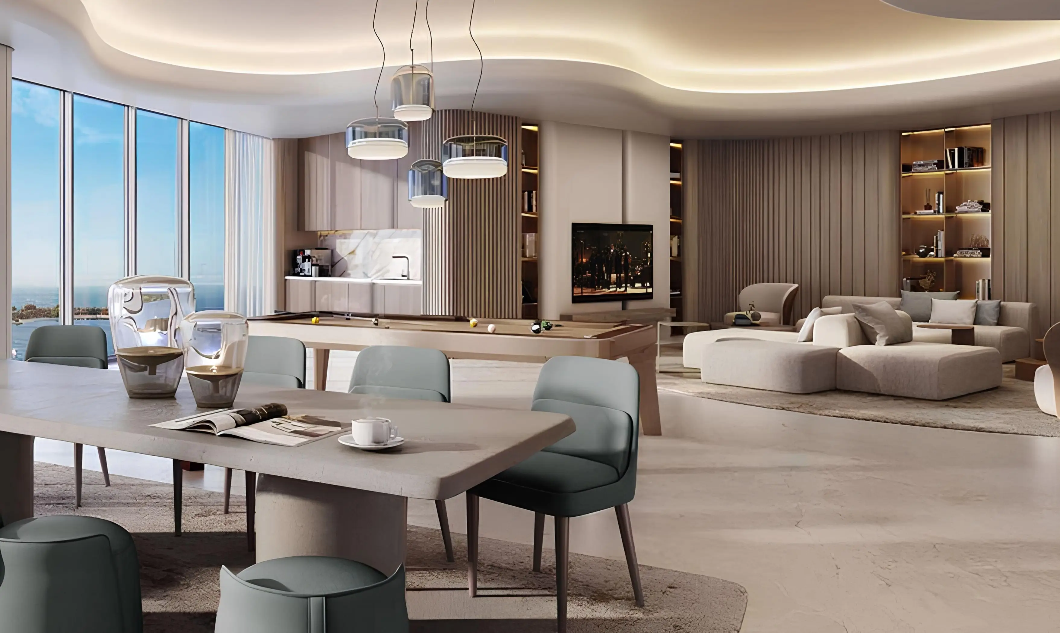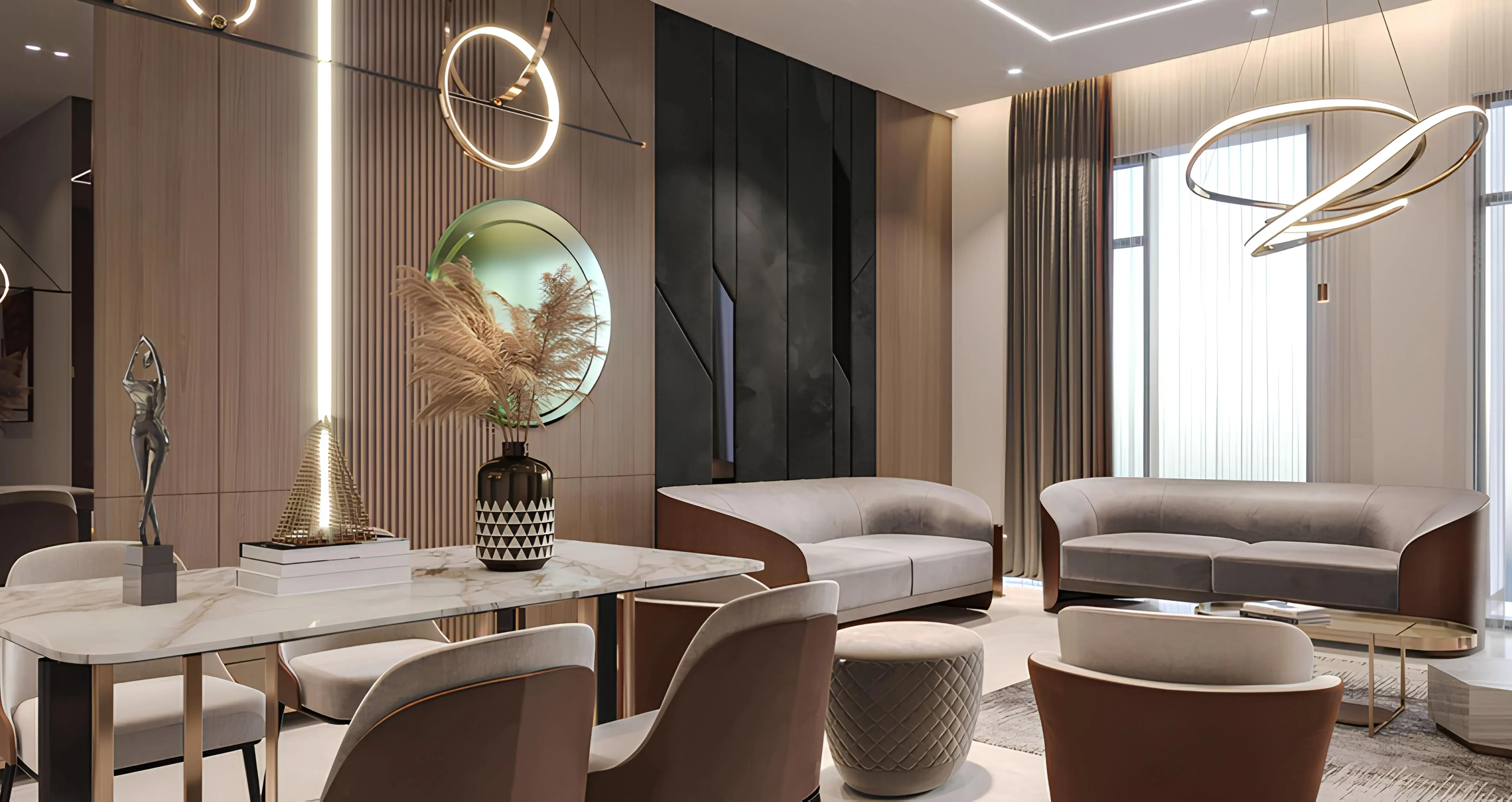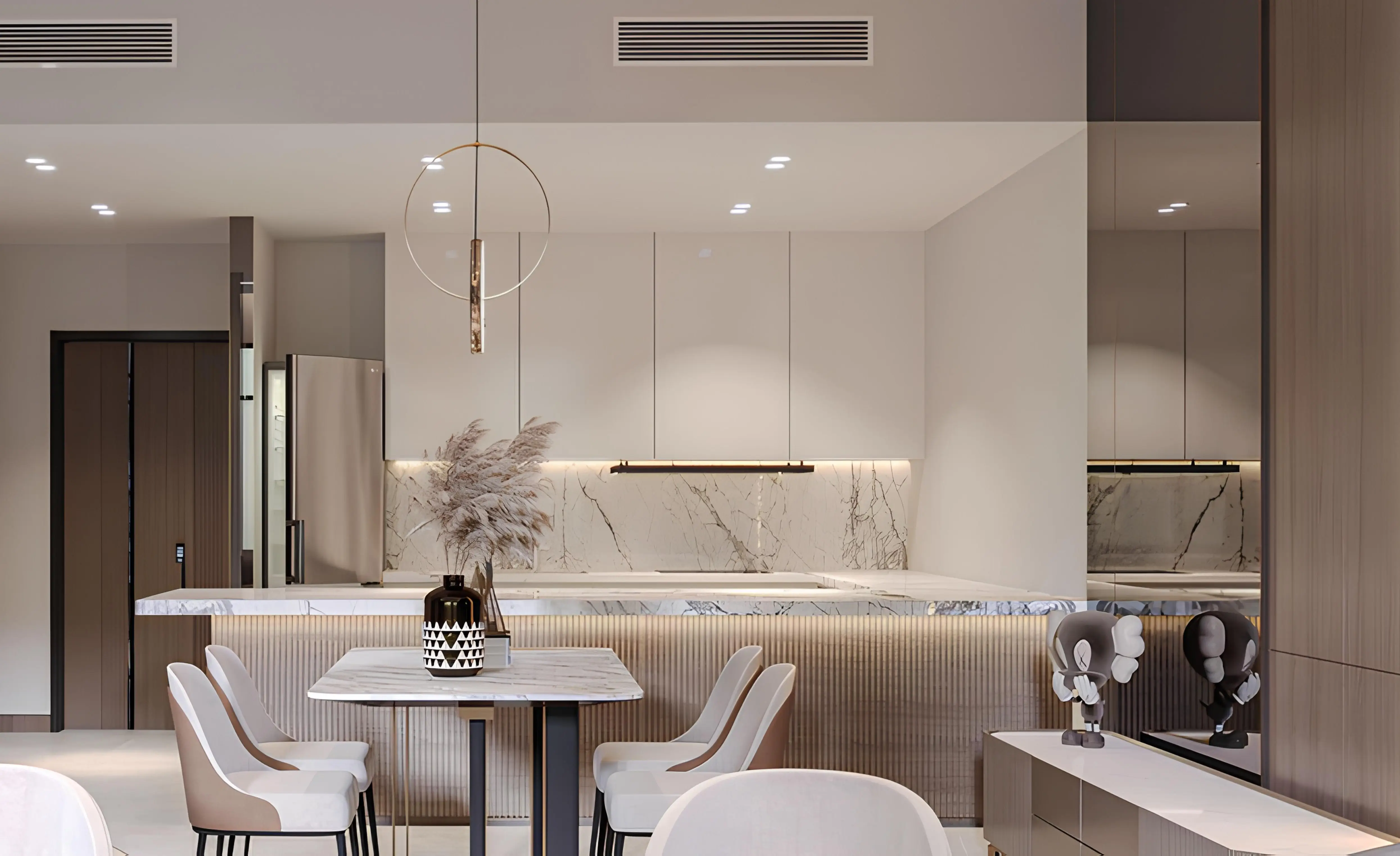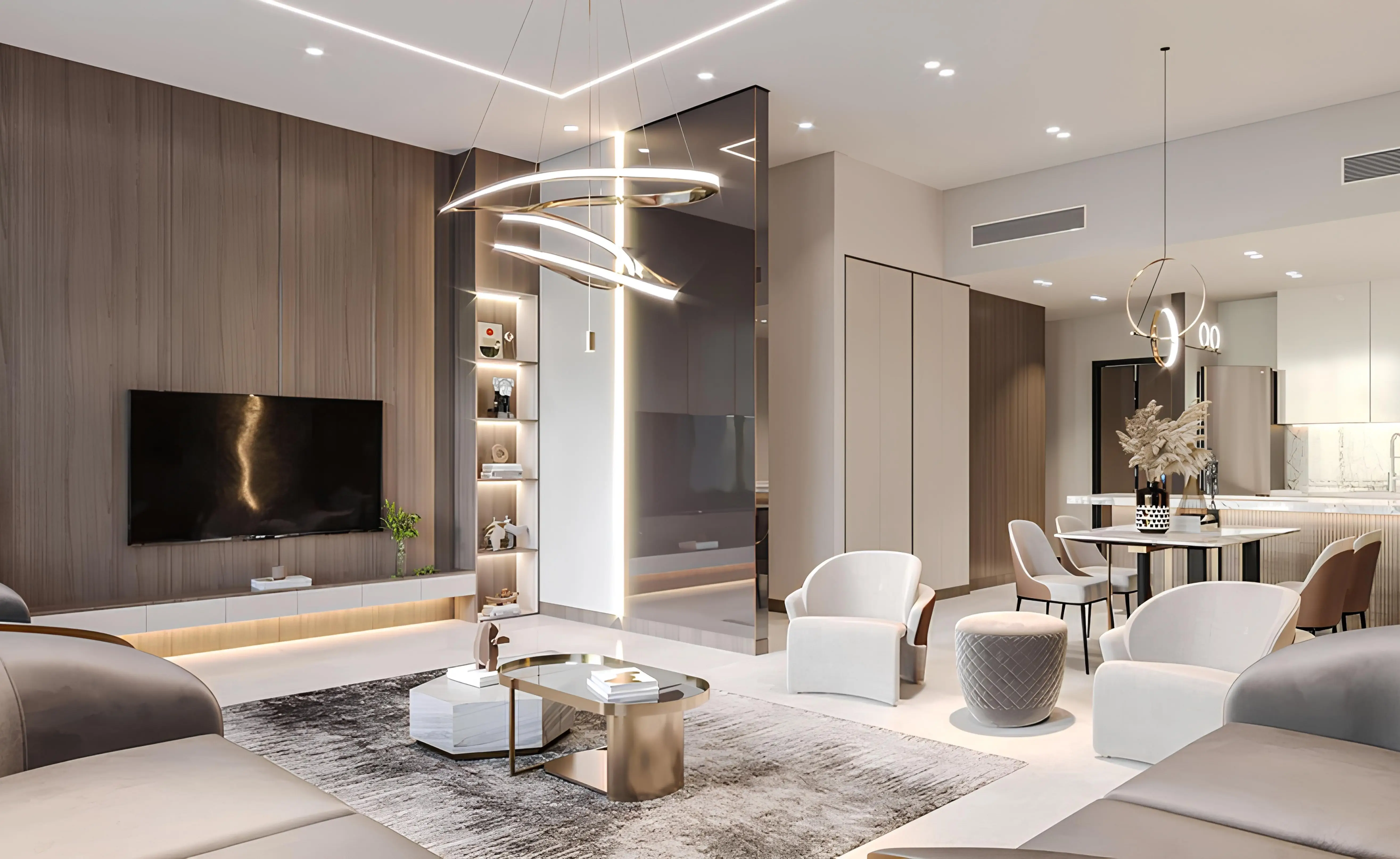 Walking paths 555 Park Views is a 5-storey apartment complex with 1-3 bedroom flats by developer Serene Developments in the JVT neighbourhood. All apartments have quality turnkey finishes, fully equipped bathrooms and kitchens with appliances and furniture, as well as modern elegant design. The stylish interiors of the complex use the best materials, finishes and furniture in warm shades, which creates an elegant yet cosy atmosphere. Each unit is presented with a balcony or terrace and is also connected to the Smart Home system.