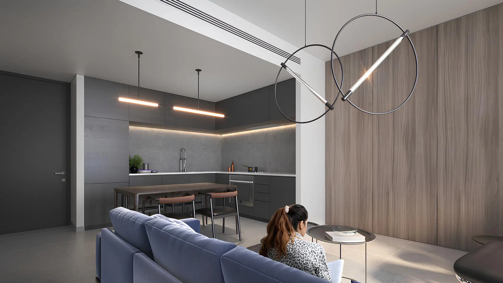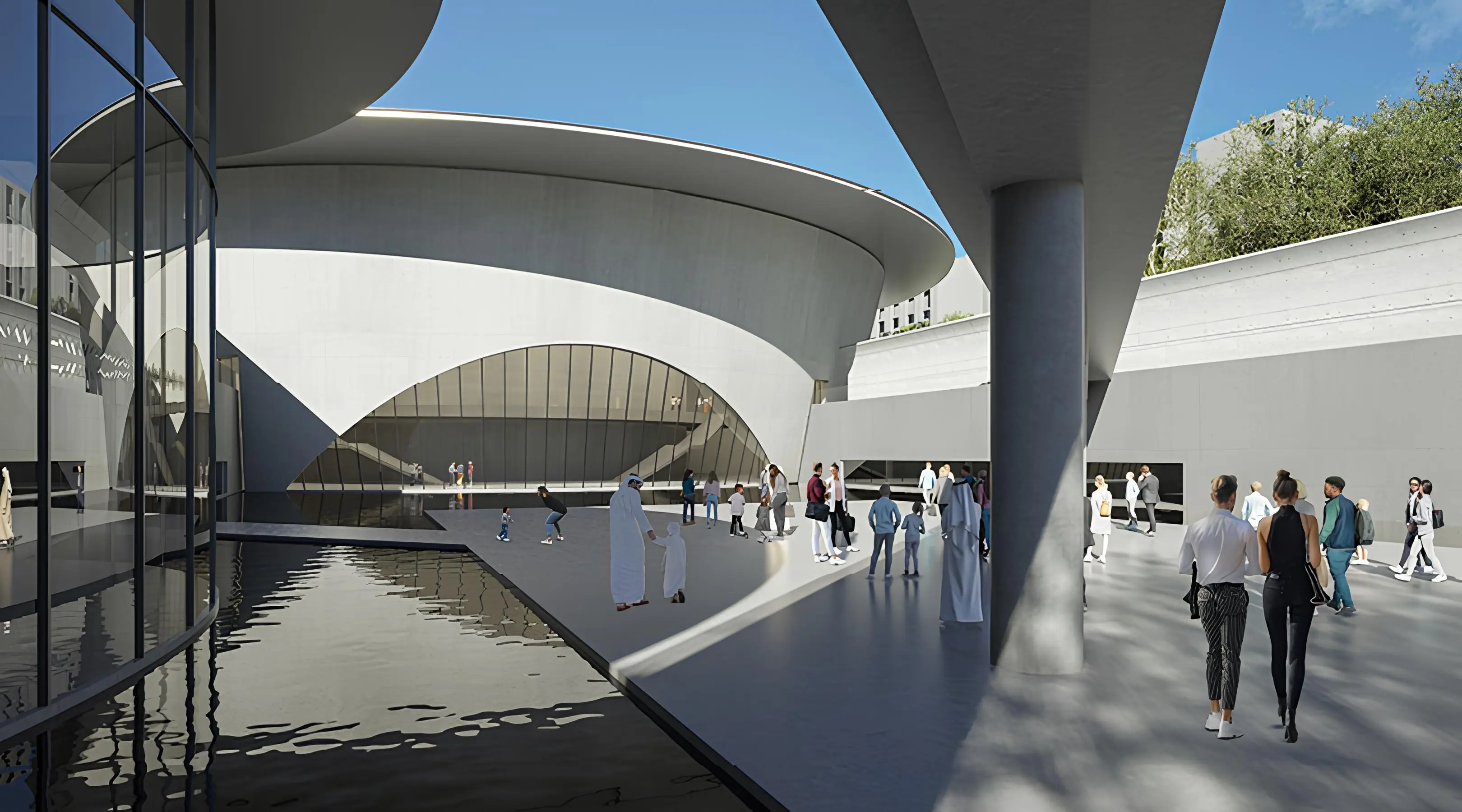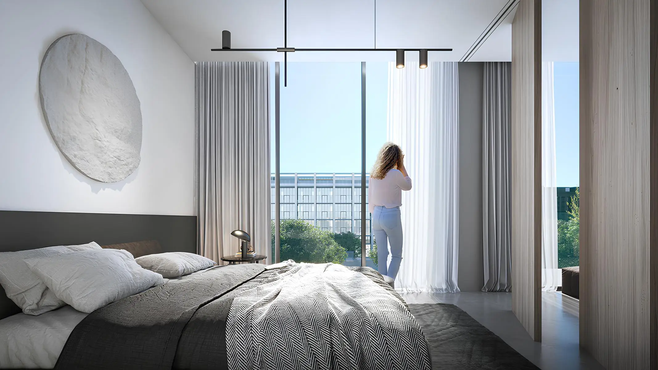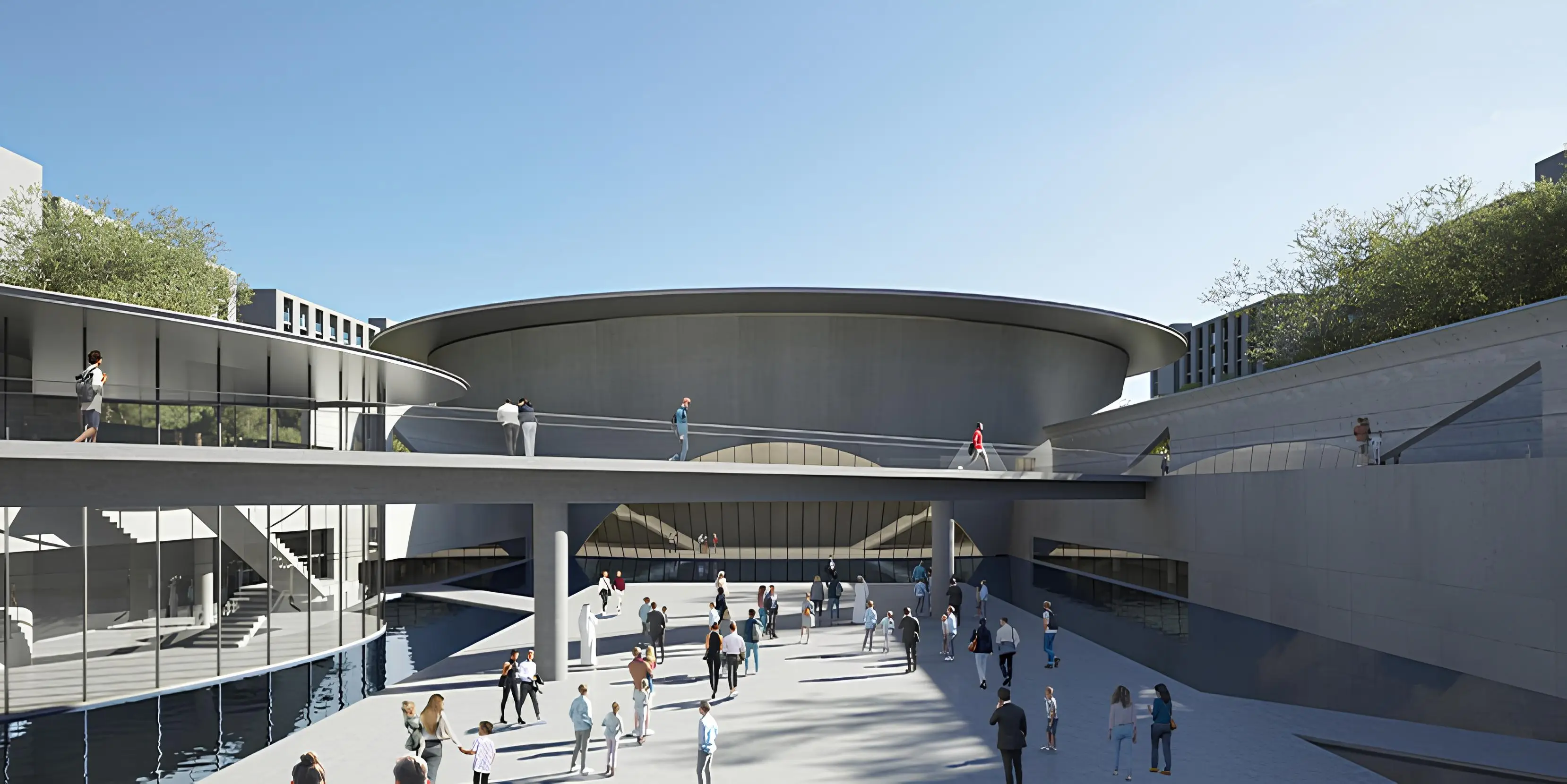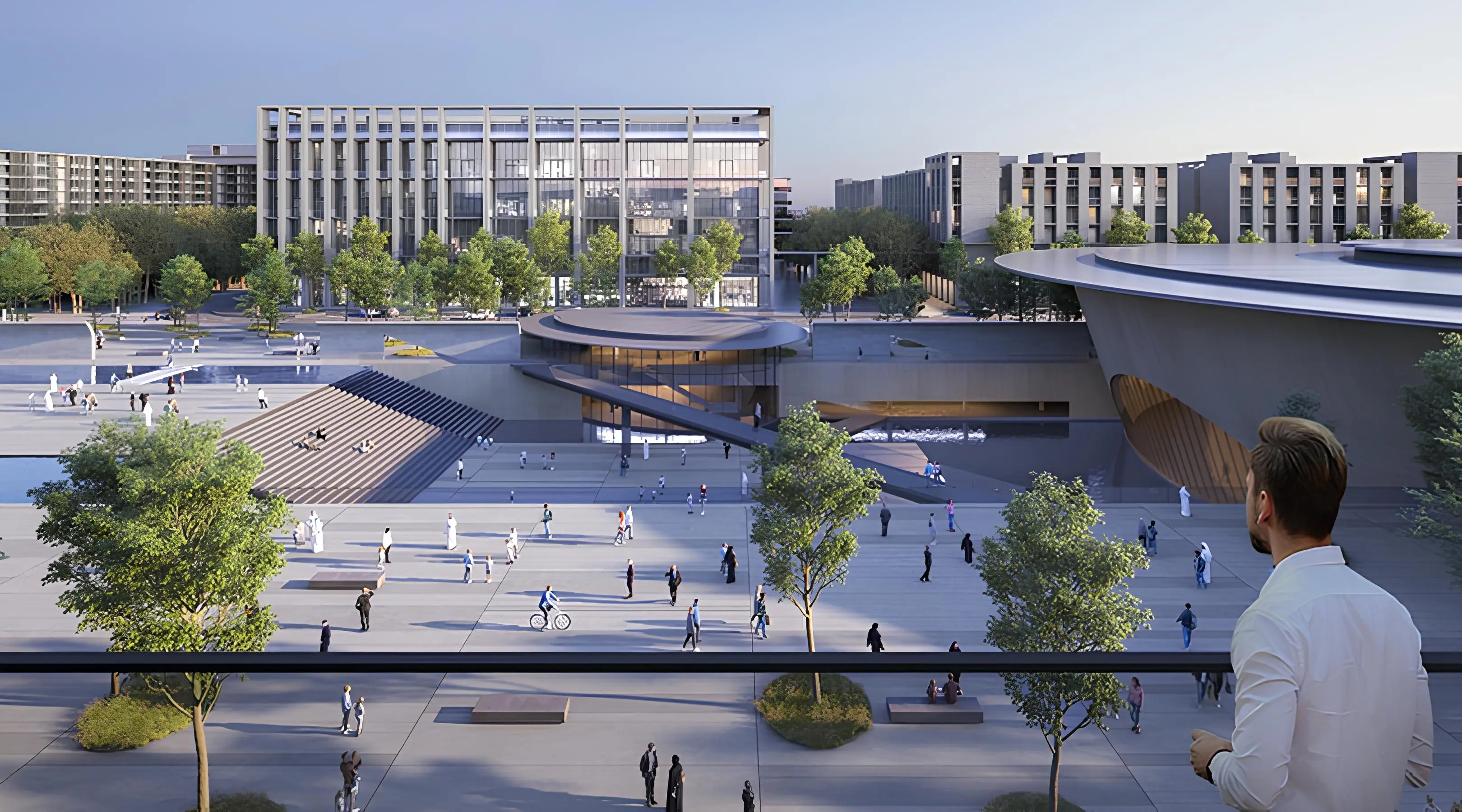 Yoga studio Aljada Il Teatro Residences 1, 2 is a stylish residential project from the developer Arada Properties, which is part of the Aljada community in Sharjah. Each residence has a view on the one of the main area attractions - the theater, designed by the famous Japanese architect Tadao Ando, and a multi-level pedestrian area. The complex consists of two identical mid-rise buildings. Each building has an basement level with parking spaces, a ground floor, seven residential floors, a roof with a infinity pool and a relaxation area.