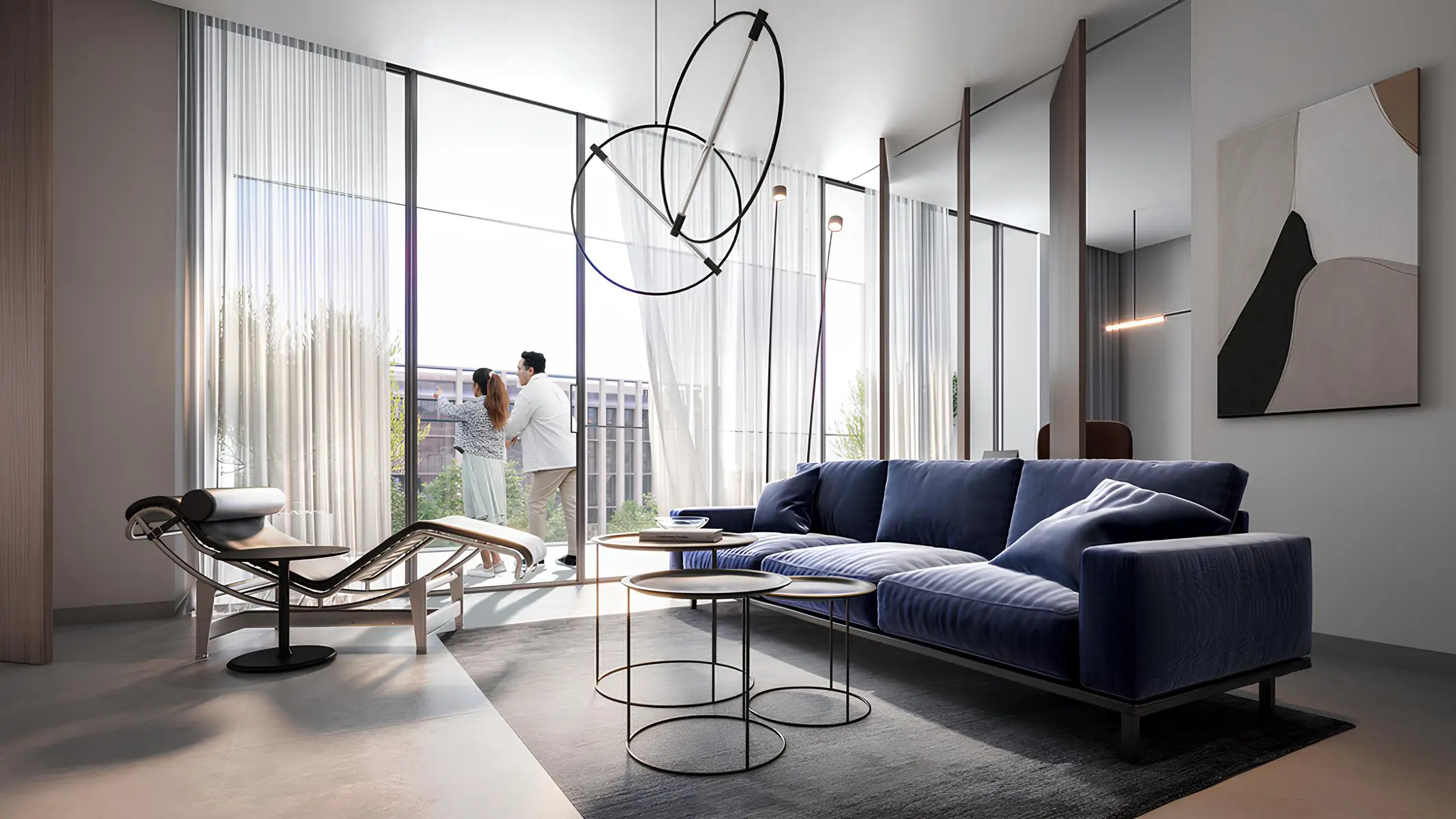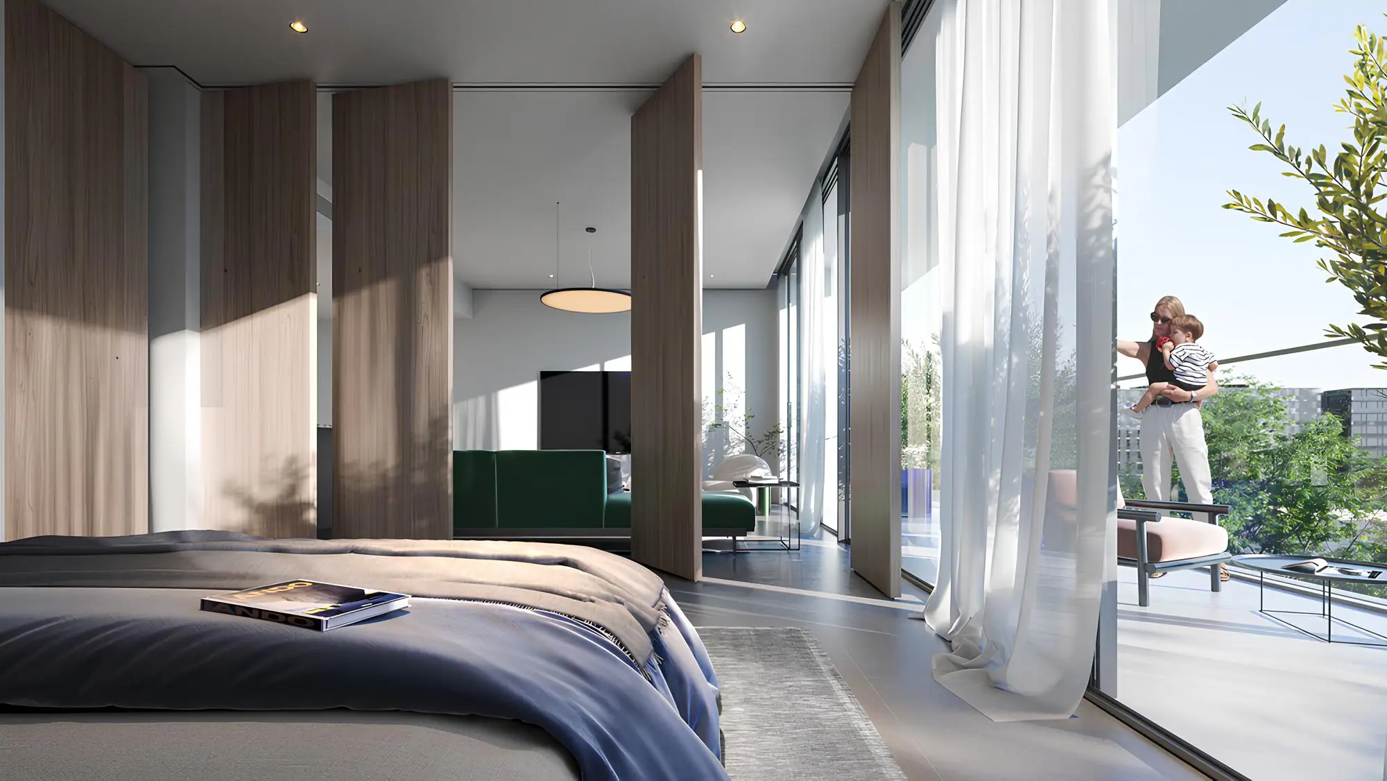 Apartments with 2 to 3 bedrooms and lofts with 2 or 3 bedrooms are available for purchase. The interior design uses bright colors and high-quality finishes.