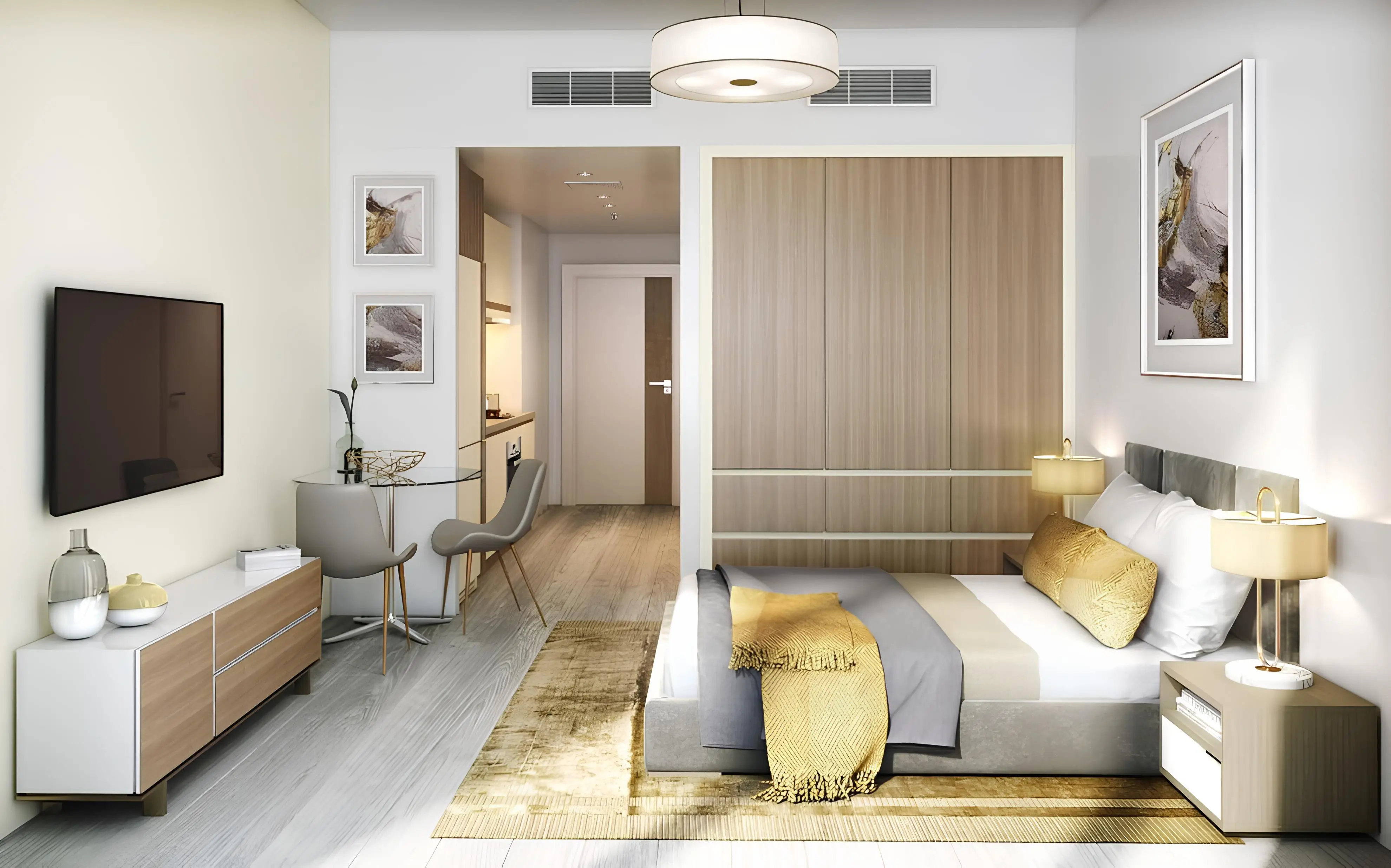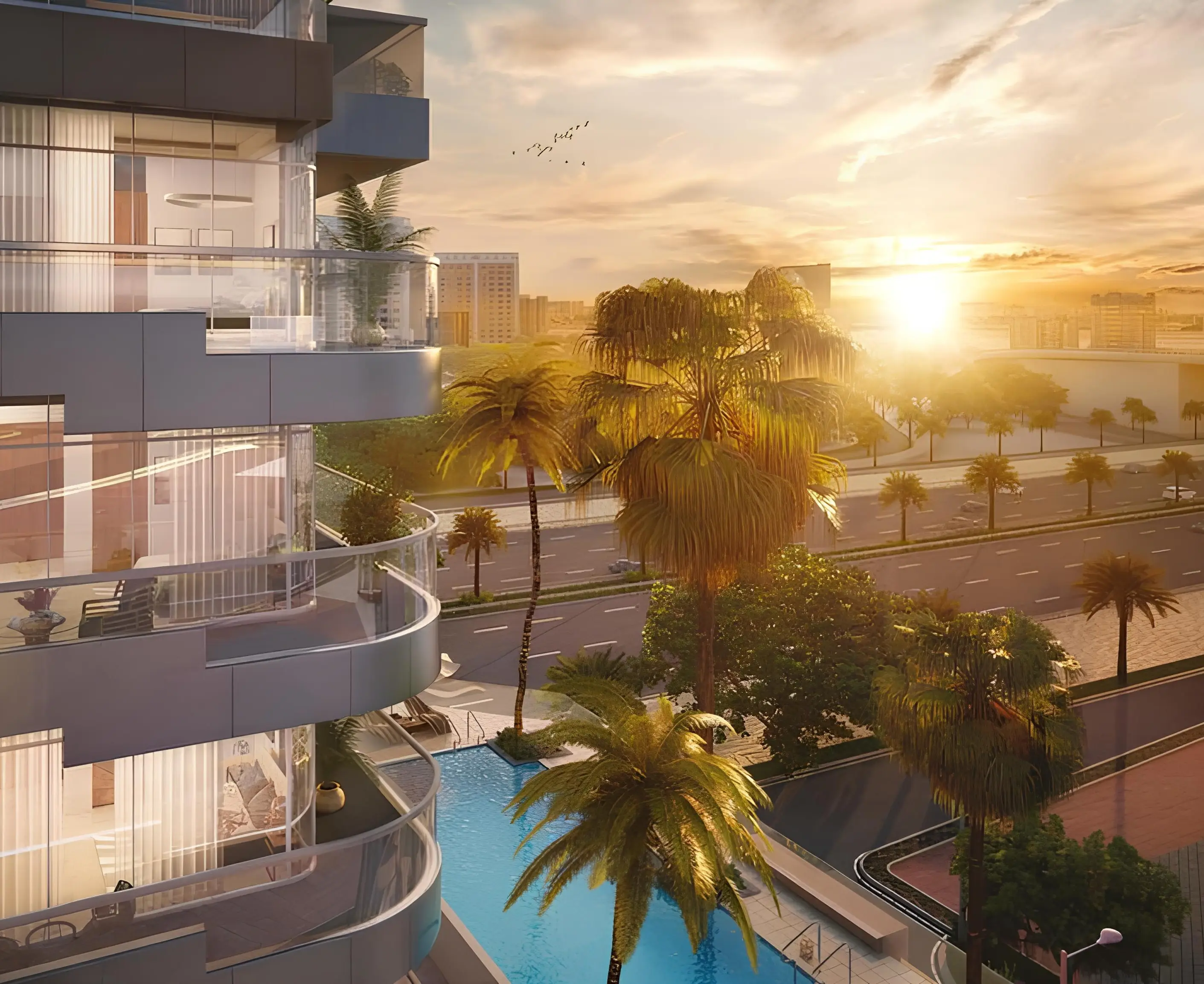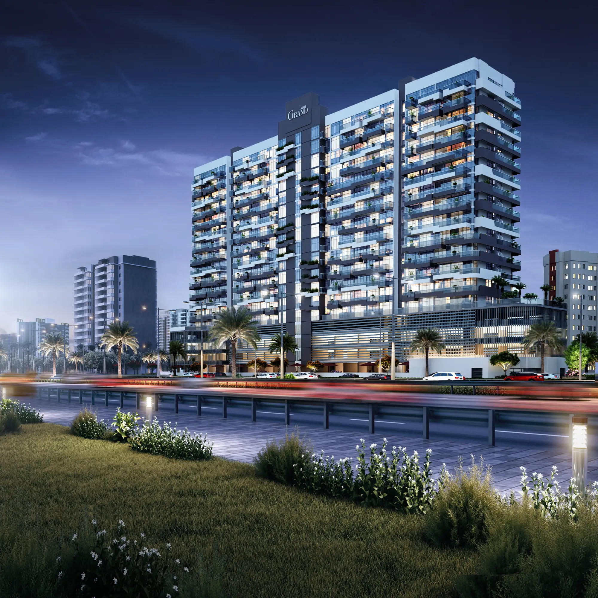 The development boasts excellent connectivity to key destinations: Mohammed Bin Zayed Road — 3 minutes, Motor City and Dubai Autodrome — 3 minutes, Dubai Sports City — 5 minutes, Al Khail Road — 8 minutes, City Centre Me’aisem — 10 minutes, Expo City Dubai — 18 minutes, Dubai Marina and Bluewaters Island — 18 minutes, Jumeirah Beach — 20 minutes, Al Maktoum International Airport — 25 minutes.
