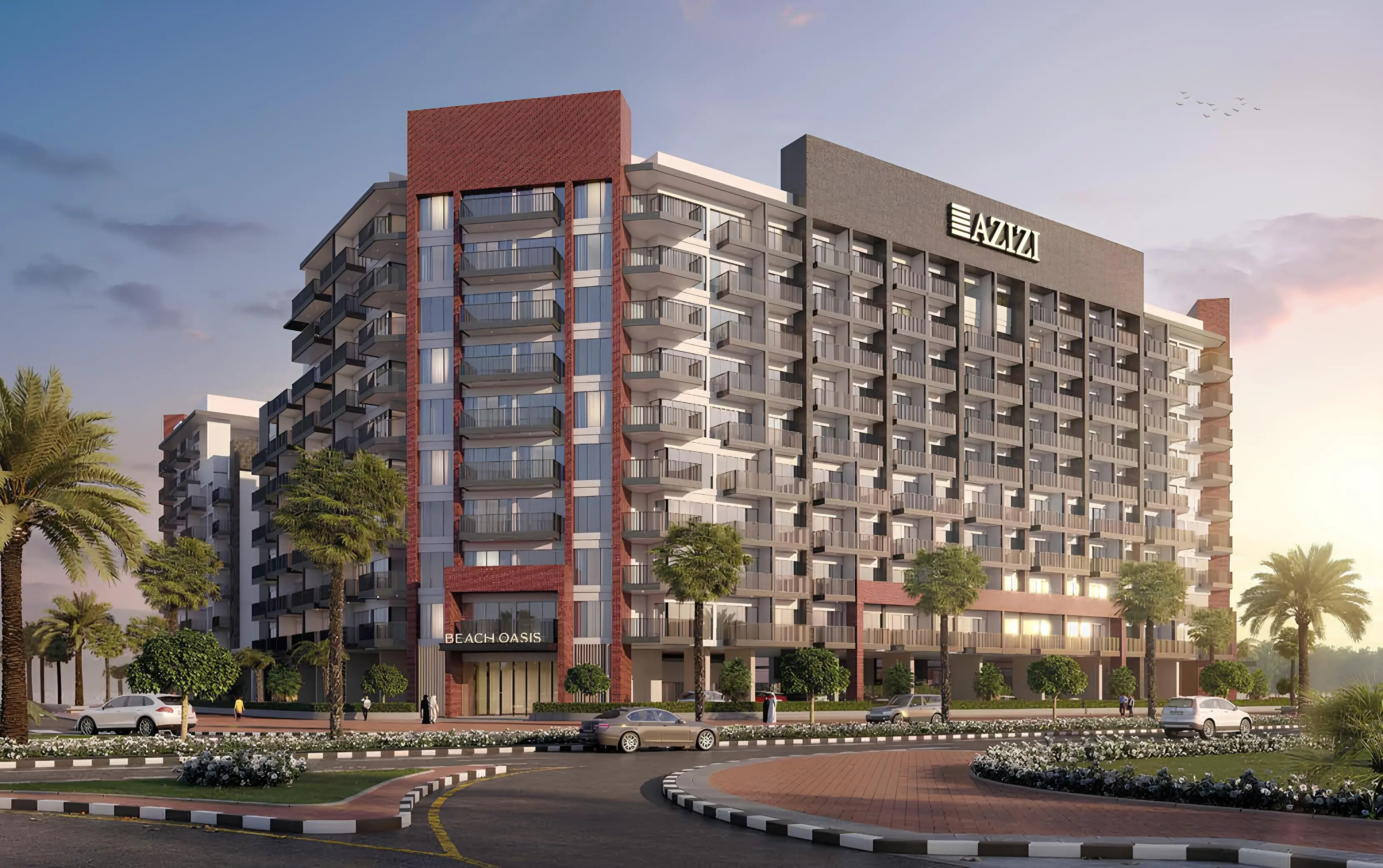 Zen Garden Beach Oasis is a residential development by Azizi Developments, located in the vibrant community of Dubai Studio City. The project consists of two towers — Tower 1 and Tower 2 — connected by a shared ground floor and showcases a contemporary architectural style with flowing facades and extensive use of glass elements.