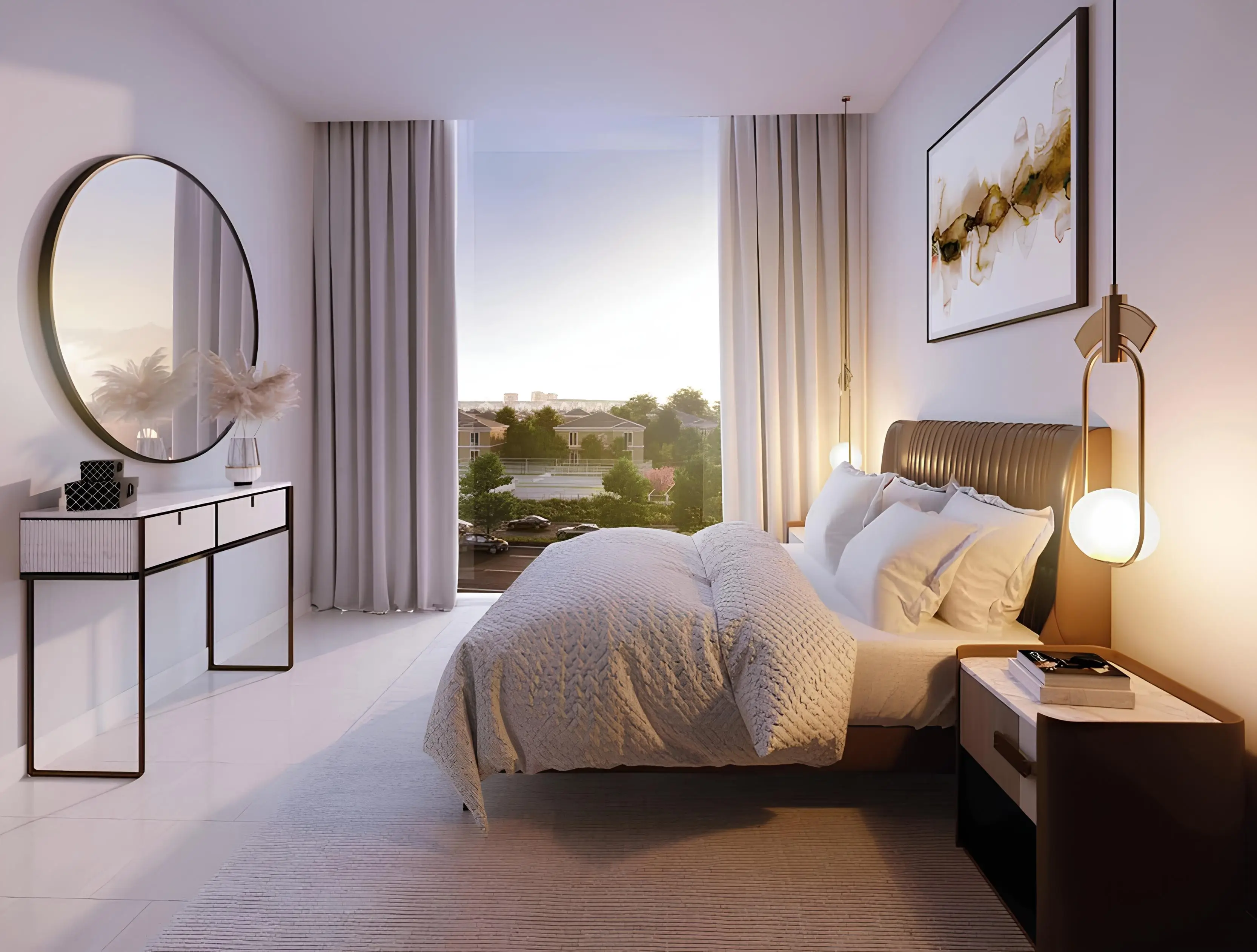 The project enjoys a prime location with excellent connectivity to major destinations: Equestrian Club – 2 minutes, Mohammed Bin Zayed Road – 3 minutes, Motor City and Dubai Autodrome – 3 minutes, Dubai Sports City – 5 minutes, Al Khail Road – 8 minutes, City Centre Me’aisem – 10 minutes, Expo City Dubai – 18 minutes, Dubai Marina and Bluewaters Island – 18 minutes, Jumeirah Beach – 20 minutes, Al Maktoum International Airport – 25 minutes.