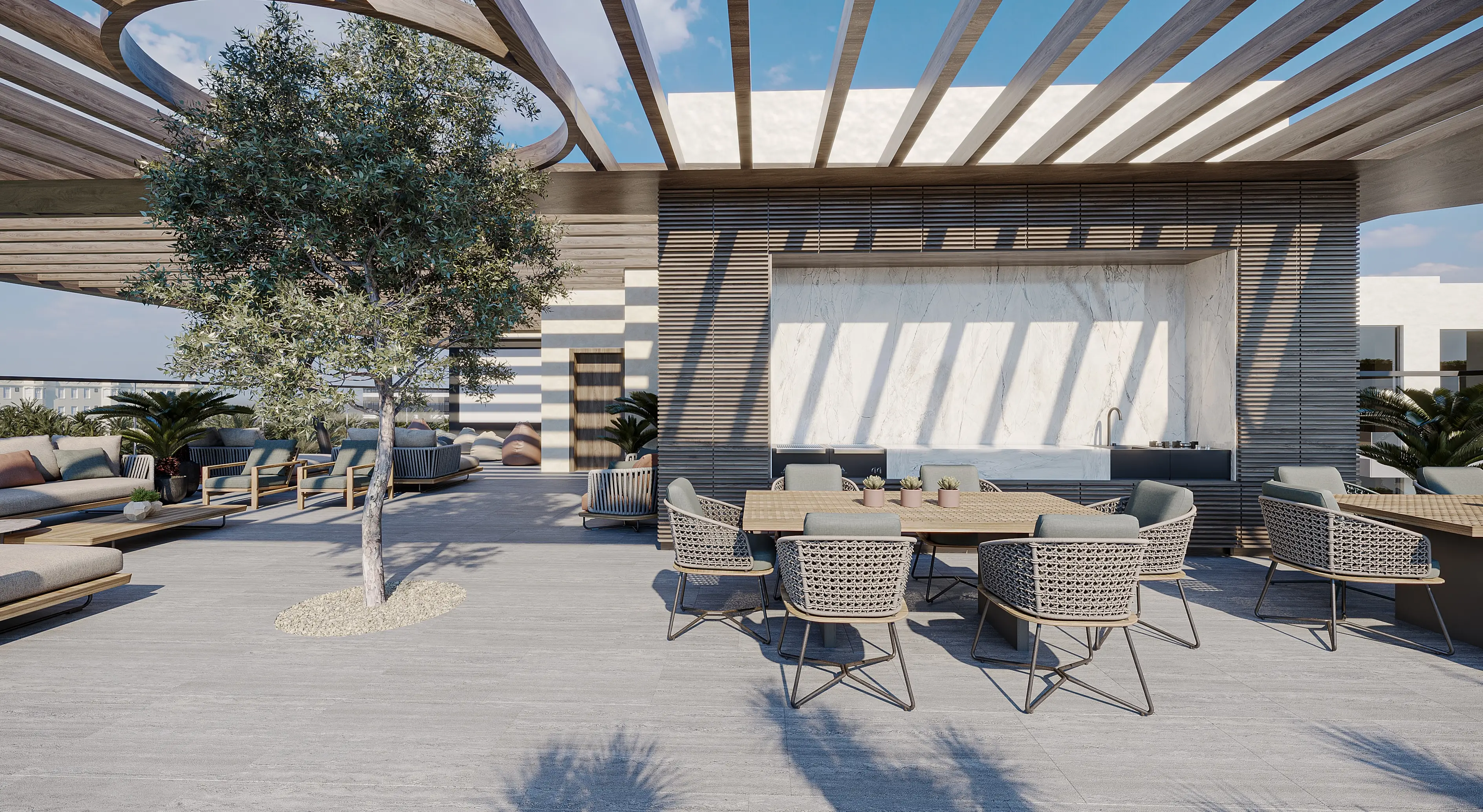 Yoga studio Beverly Residence 2 is a residential development by HMB Homes, located in the dynamic and sought-after Jumeirah Village Circle. The project’s architecture reflects a perfect balance between form and functionality, creating bright and inviting spaces filled with harmony and comfort. The complex consists of a ground floor and five residential floors with elegantly designed apartments.
