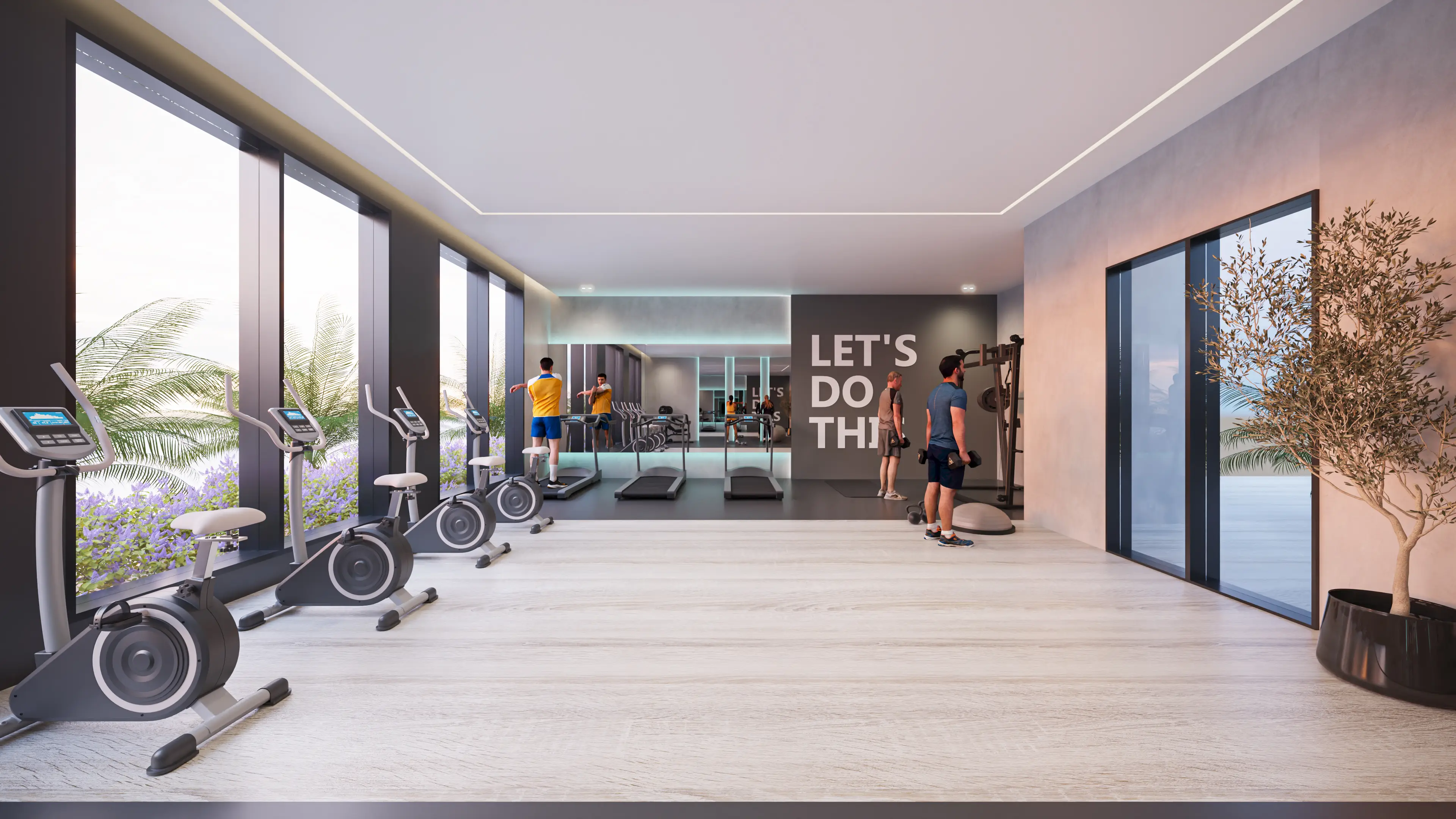 Shared gym & fitness California 2 is the second phase of a luxury project by Samana Developers in the Discovery Gardens neighbourhood, featuring unique contemporary architecture reminiscent of a cruise ship.