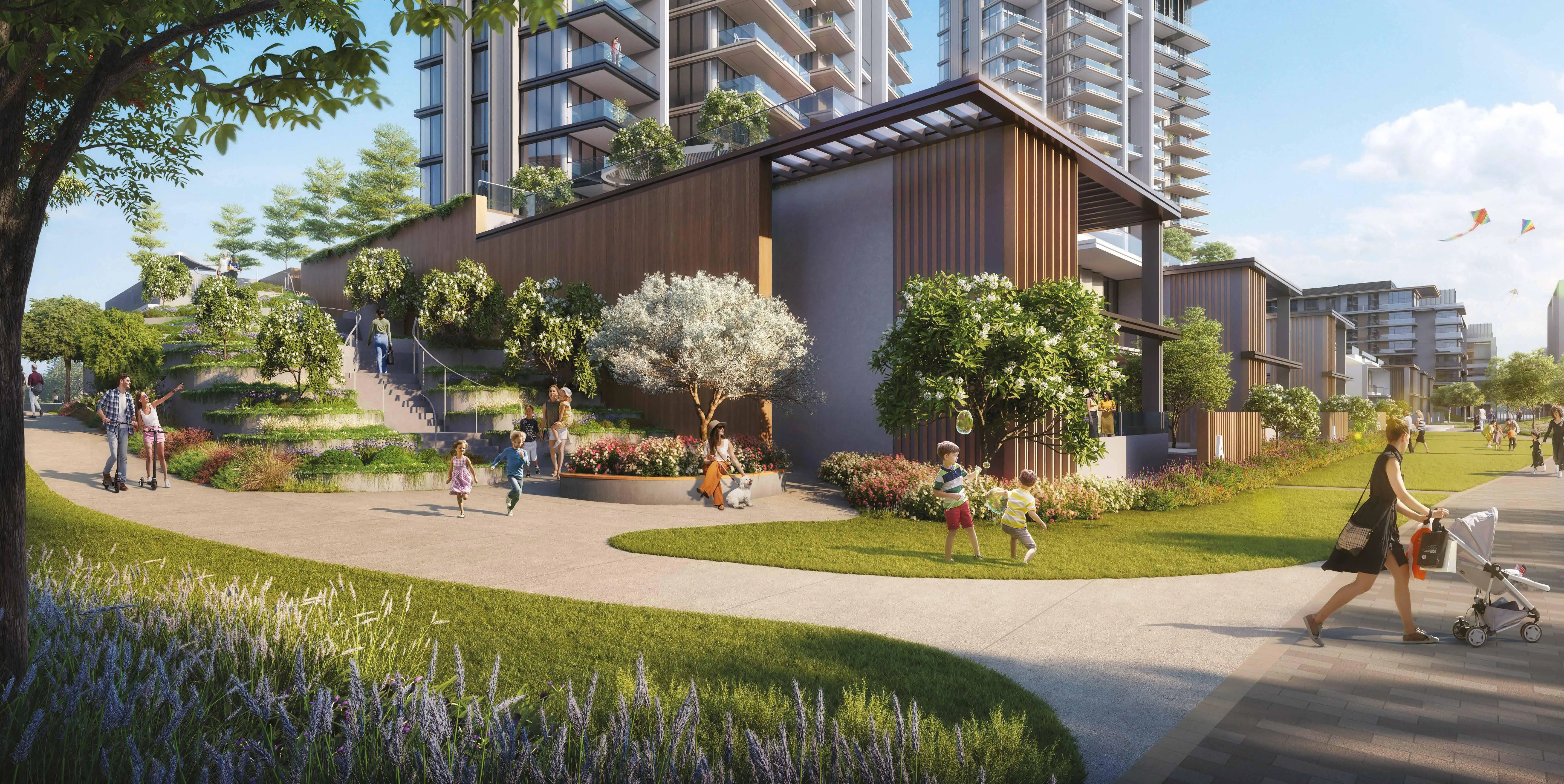 On the first floor there is a recreation area, and in the very center of the complex there is a large park with children's playgrounds, walking and jogging paths and recreation areas with barbecues. There is also a gym, infinity pool, spa, co-working spaces, meeting and event halls and 24-hour security with video surveillance.