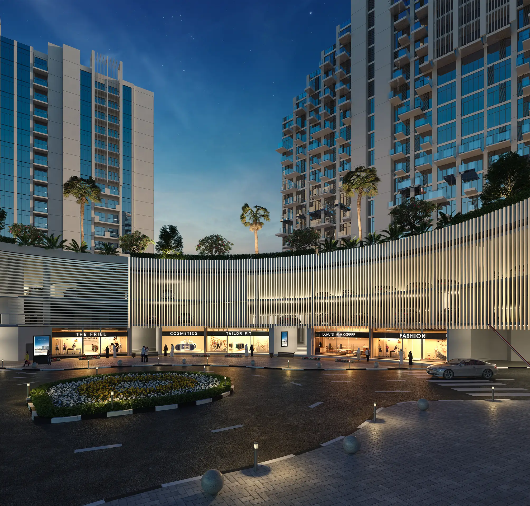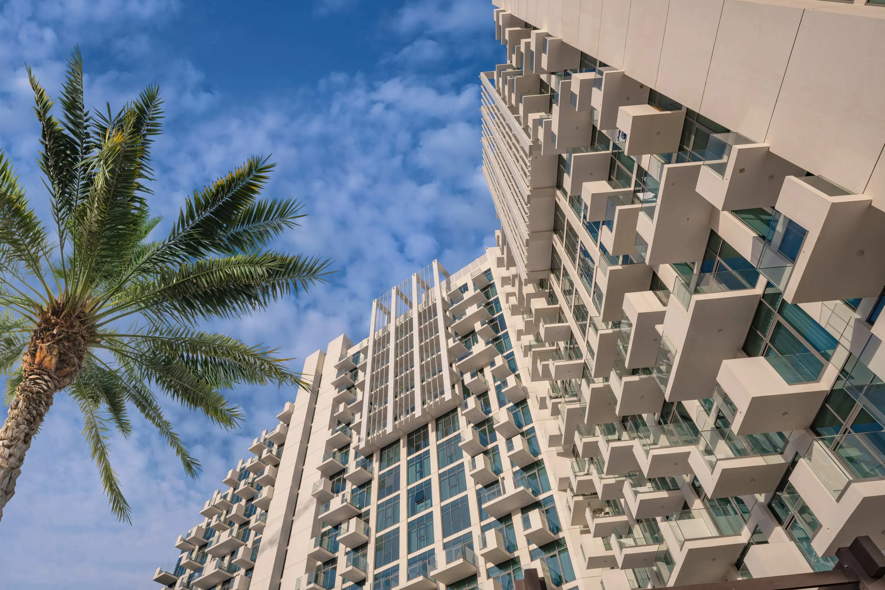 The complex benefits from excellent transport connectivity: Dubai Creek and Al Khail Road are just 1 minute away, Dubai Healthcare City metro station — 3 minutes, Sheikh Zayed Road is 5 minutes away, Palazzo Versace Hotel is reachable in 7 minutes, Al Jaddaf Waterfront — 8 minutes, Dubai International Airport — 9 minutes, Downtown Dubai and Business Bay — 10 minutes.