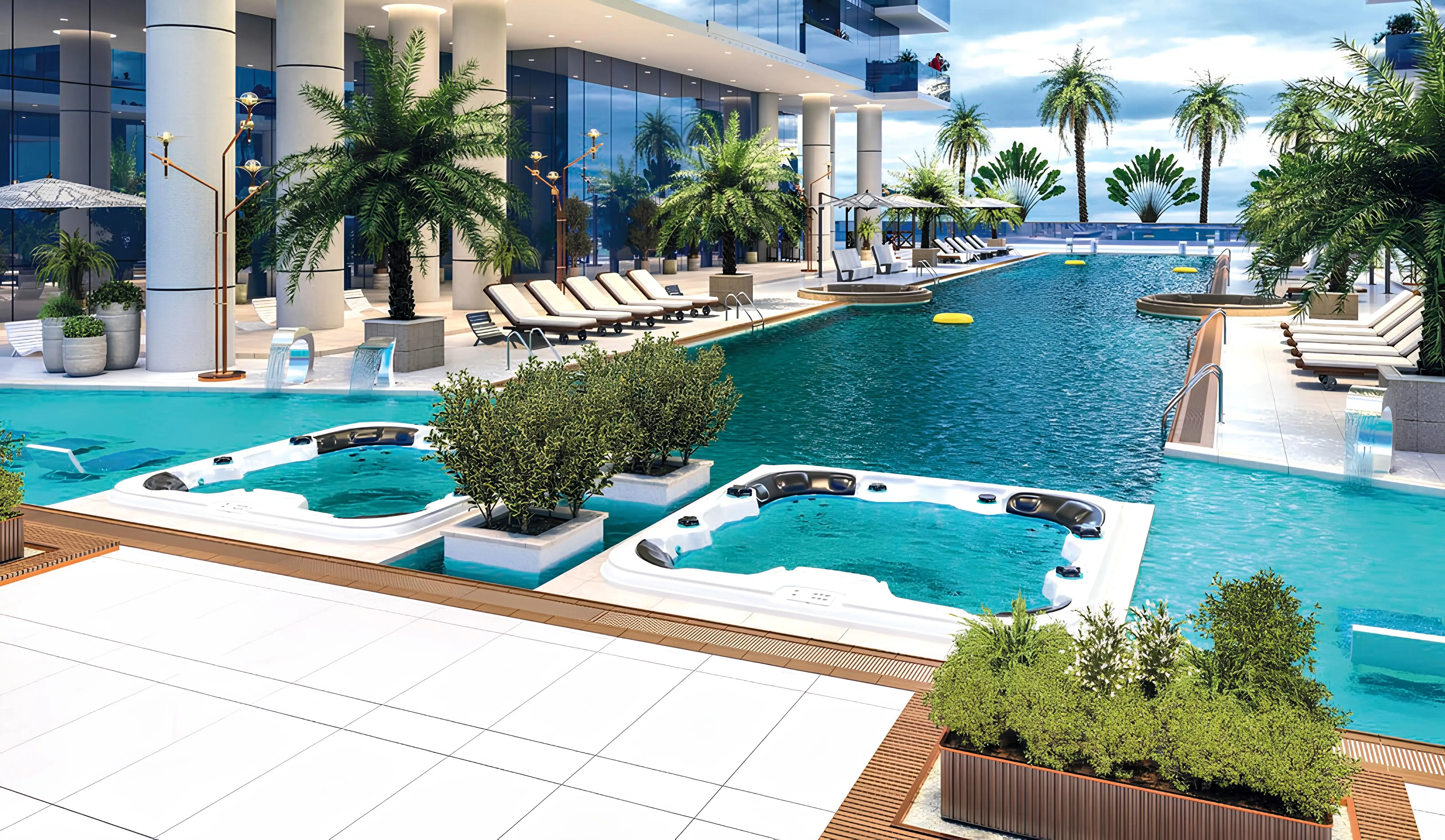Residents are provided with many amenities to improve their quality of life. They include outdoor gazebos with a barbecue area, mini golf, a children's playground and a swimming pool, an infinity pool for adults, a water gym and a fitness center, a prayer room, and jogging trails. Other facilities include schools, kindergartens, and doctor's services.
