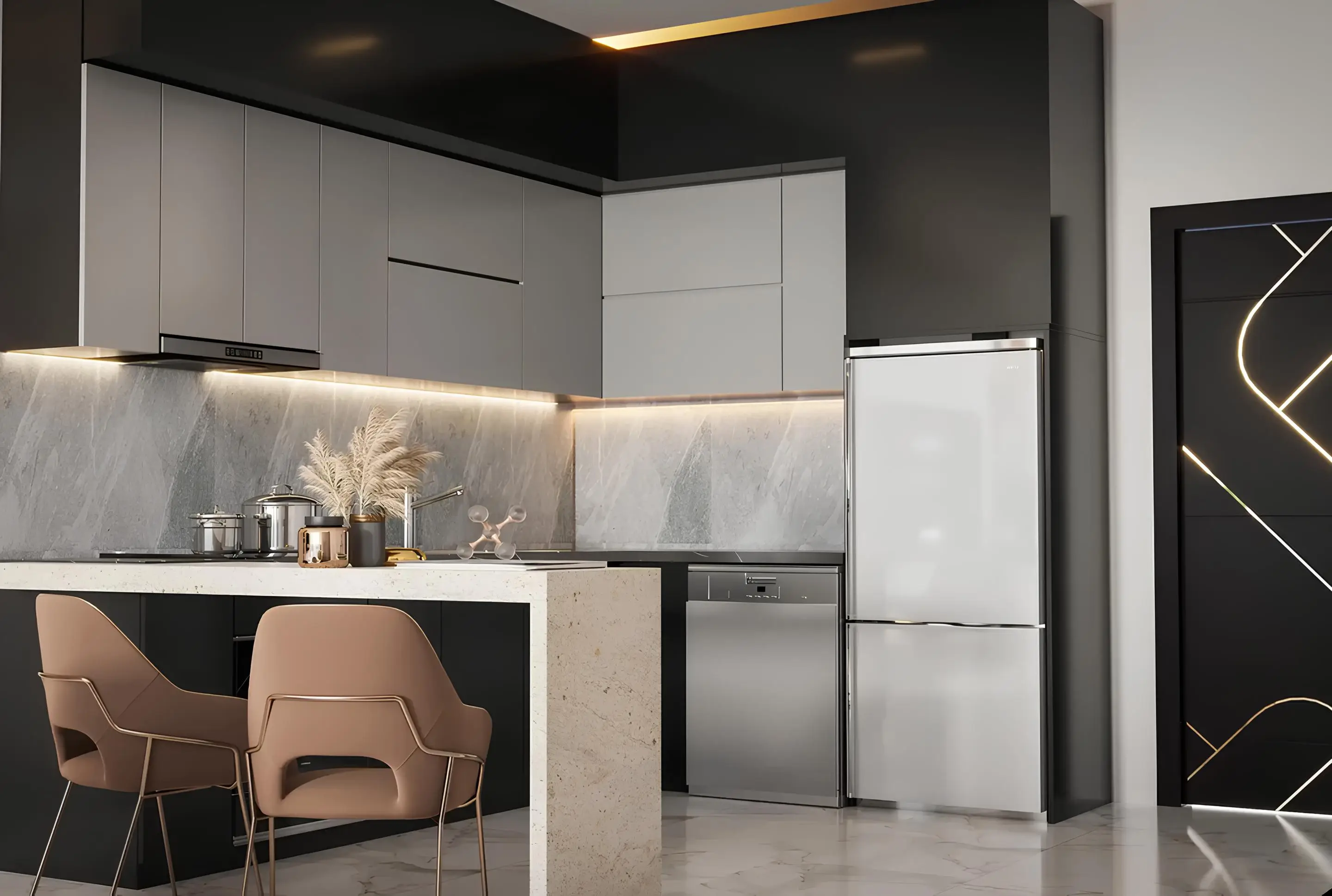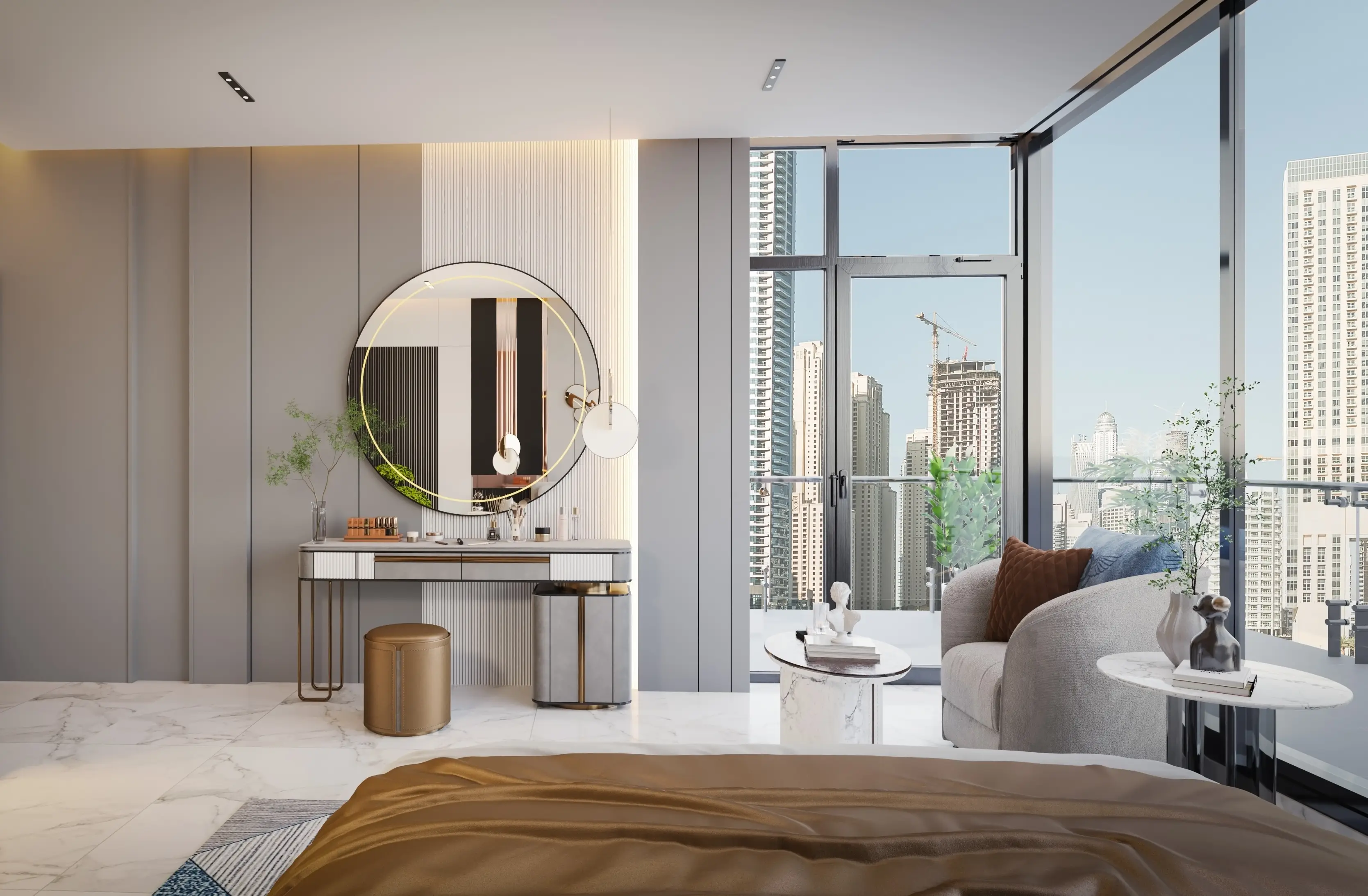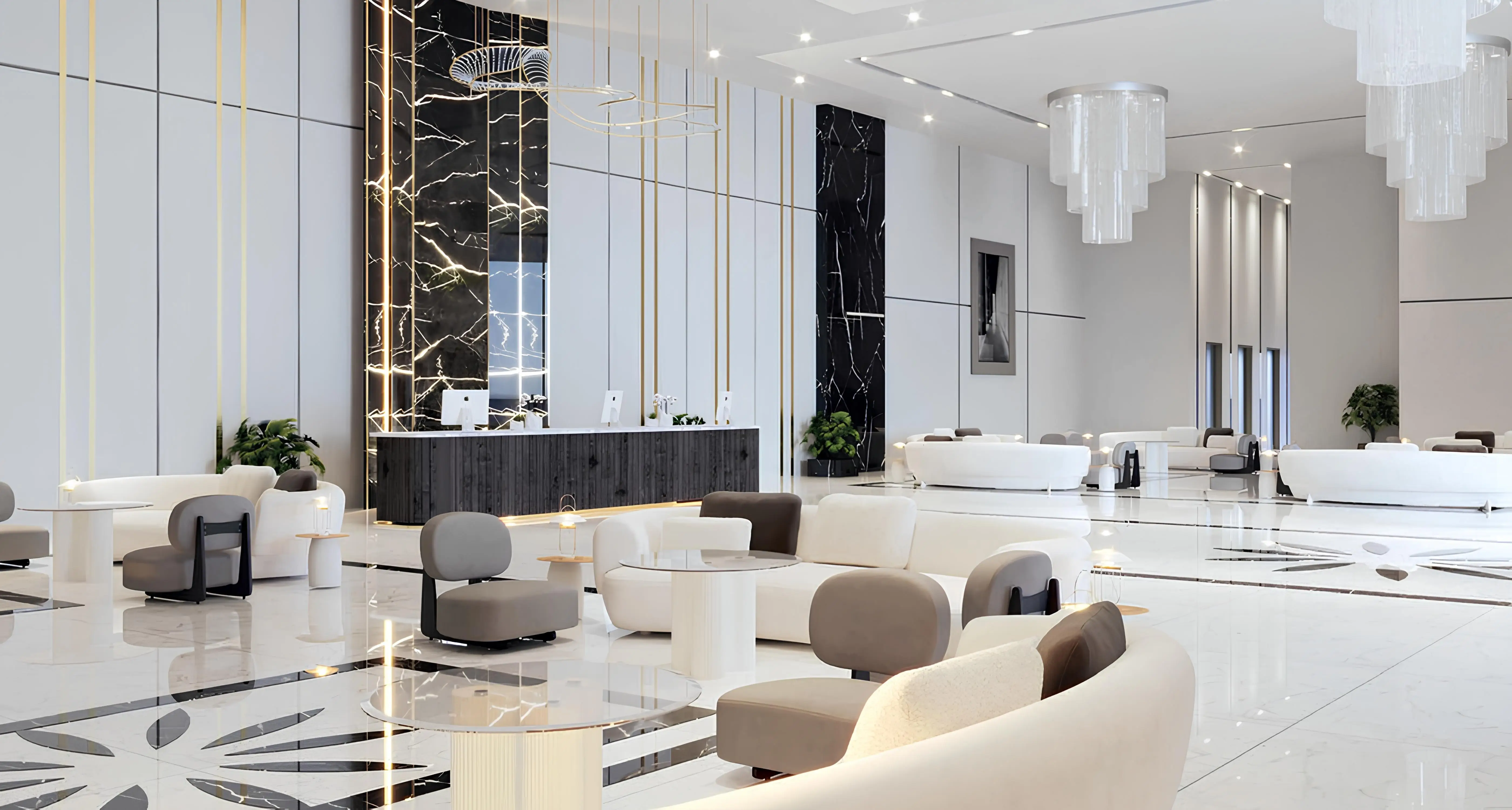 Yoga Area Elitz 2 is an apartment complex by Danube Properties, consisting of two towers. Each tower features three basement levels, a ground floor, four podium levels, and respectively forty-one residential floors in Tower A and thirty-five in Tower B. The complex is located in the heart of the vibrant Jumeirah Village Circle area. The complex includes studios and apartments with 1-3 bedrooms. The project has a unique design with a glass facade and curved roofs. And the apartments are designed in a modern style with a touch of luxury.