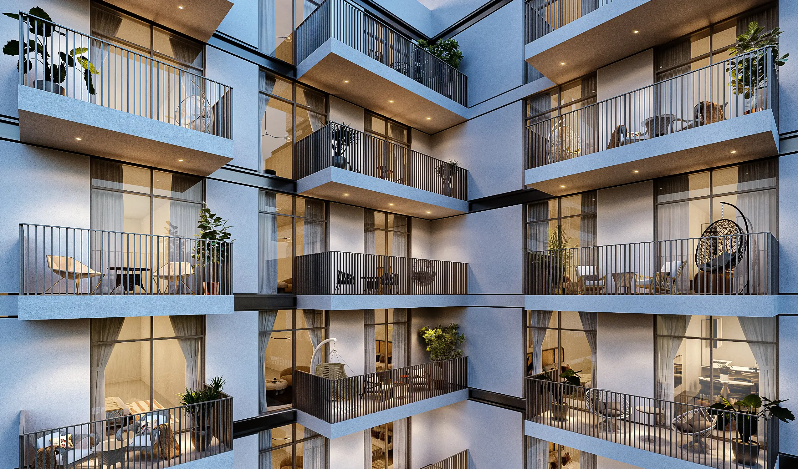 Shared gym & fitness Hadley Heights is a modern residential complex by LEOS Developments, located in the heart of Jumeirah Village Circle in Dubai. This building consists of a ground floor, four parking floors and twenty-two residential floors, distinguished by clean architectural lines and panoramic windows. The complex offers studios and 1-2 bedroom apartments, embodying a lifestyle where luxury, elegance, and design harmoniously coexist. Each apartment is designed with attractive layouts and spacious rooms, complemented by sunlit terraces that allow natural light and offer stunning views.