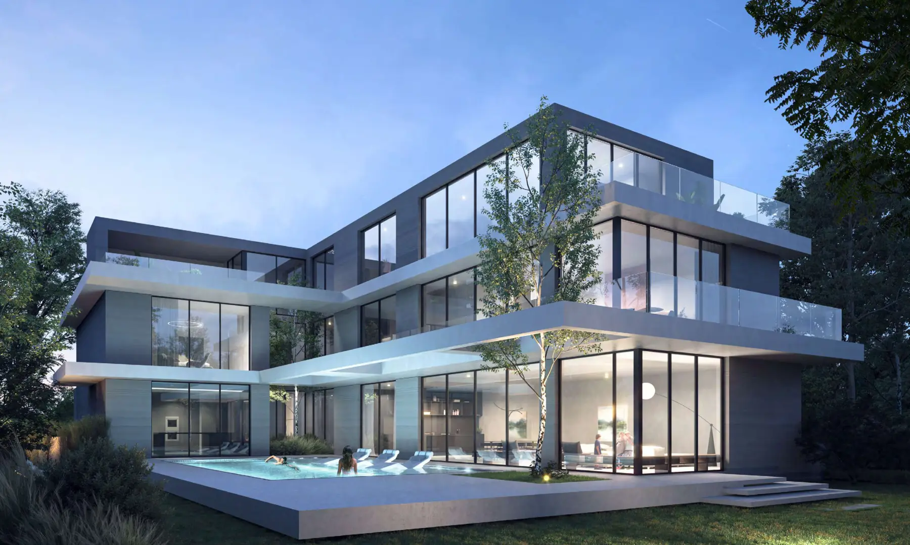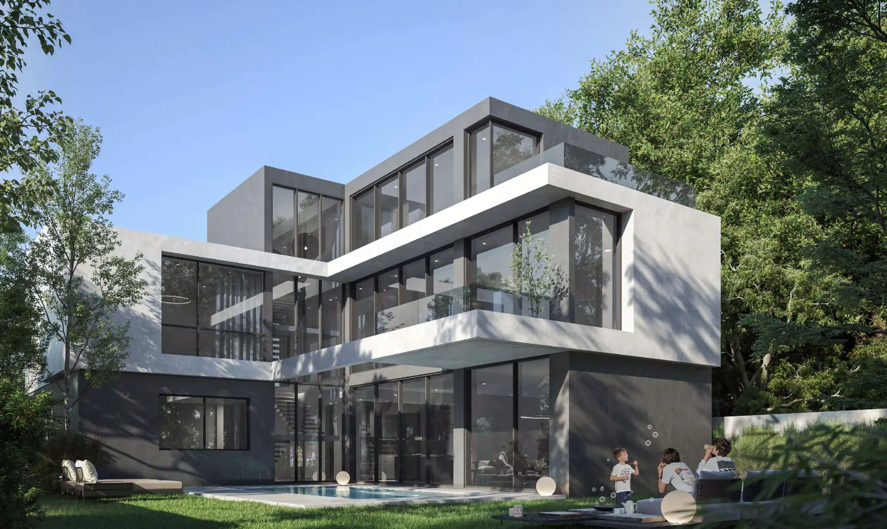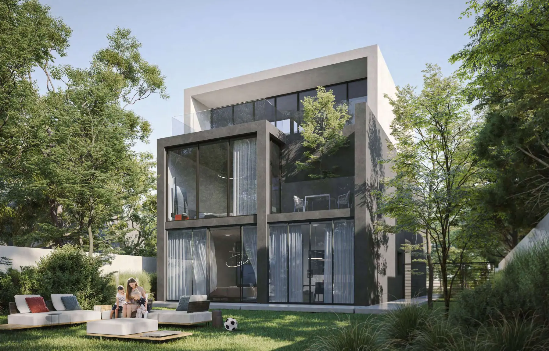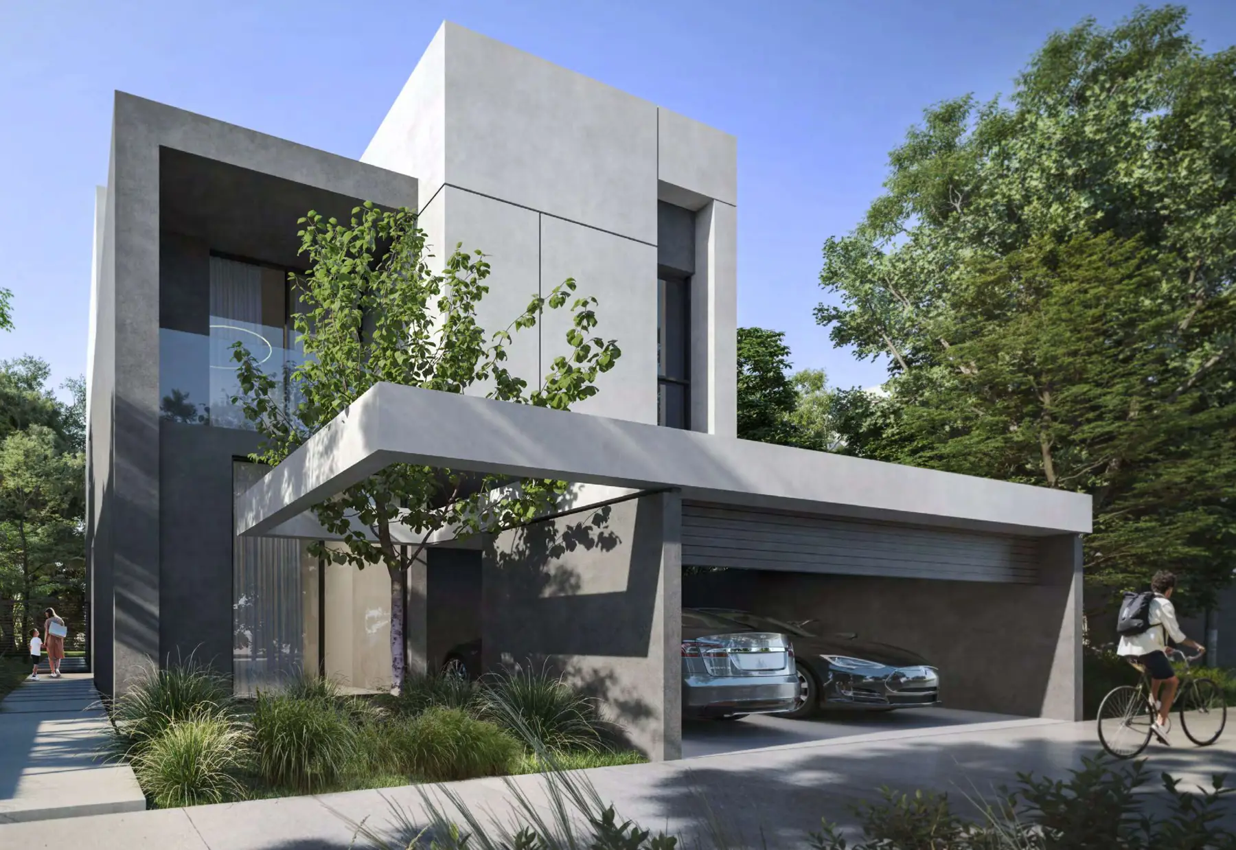 The community offers 3-4 bedroom townhouses, five-bedroom villas, and six-bedroom mansions. The design features a clean, contemporary style. The homes boast spacious layouts. Each residence includes a private garden, terrace, and a garage for two cars. Floor-to-ceiling windows flood the homes with natural light, creating an atmosphere of comfort and harmony. The complex adheres to an eco-friendly concept, including the materials and landscaping.