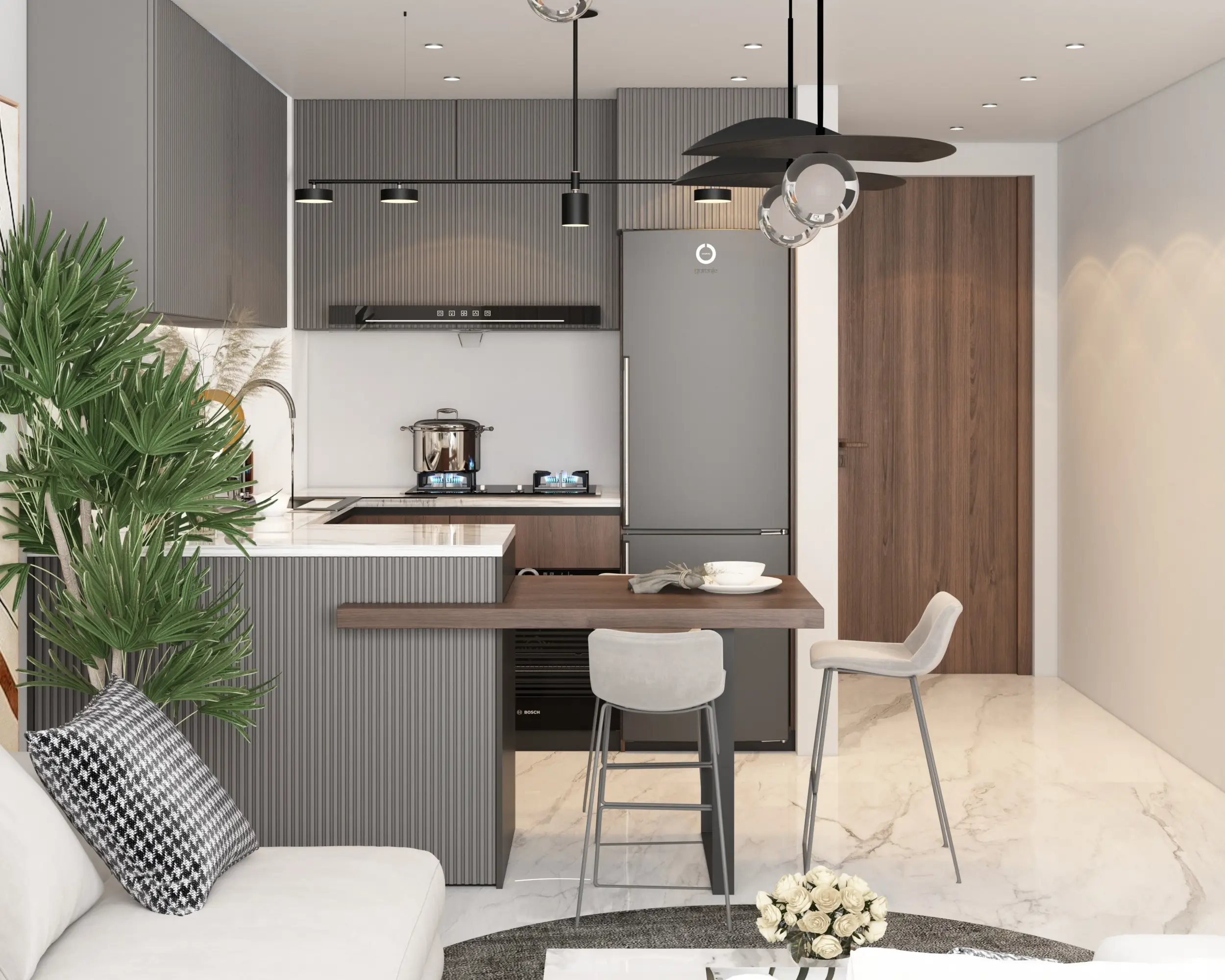 Lilium Tower stands out with its unique architecture, seamlessly blending into the urban landscape. The building offers a variety of residential layouts, including studios, one-bedroom, and two-bedroom apartments. Large windows provide excellent natural lighting and panoramic city views.