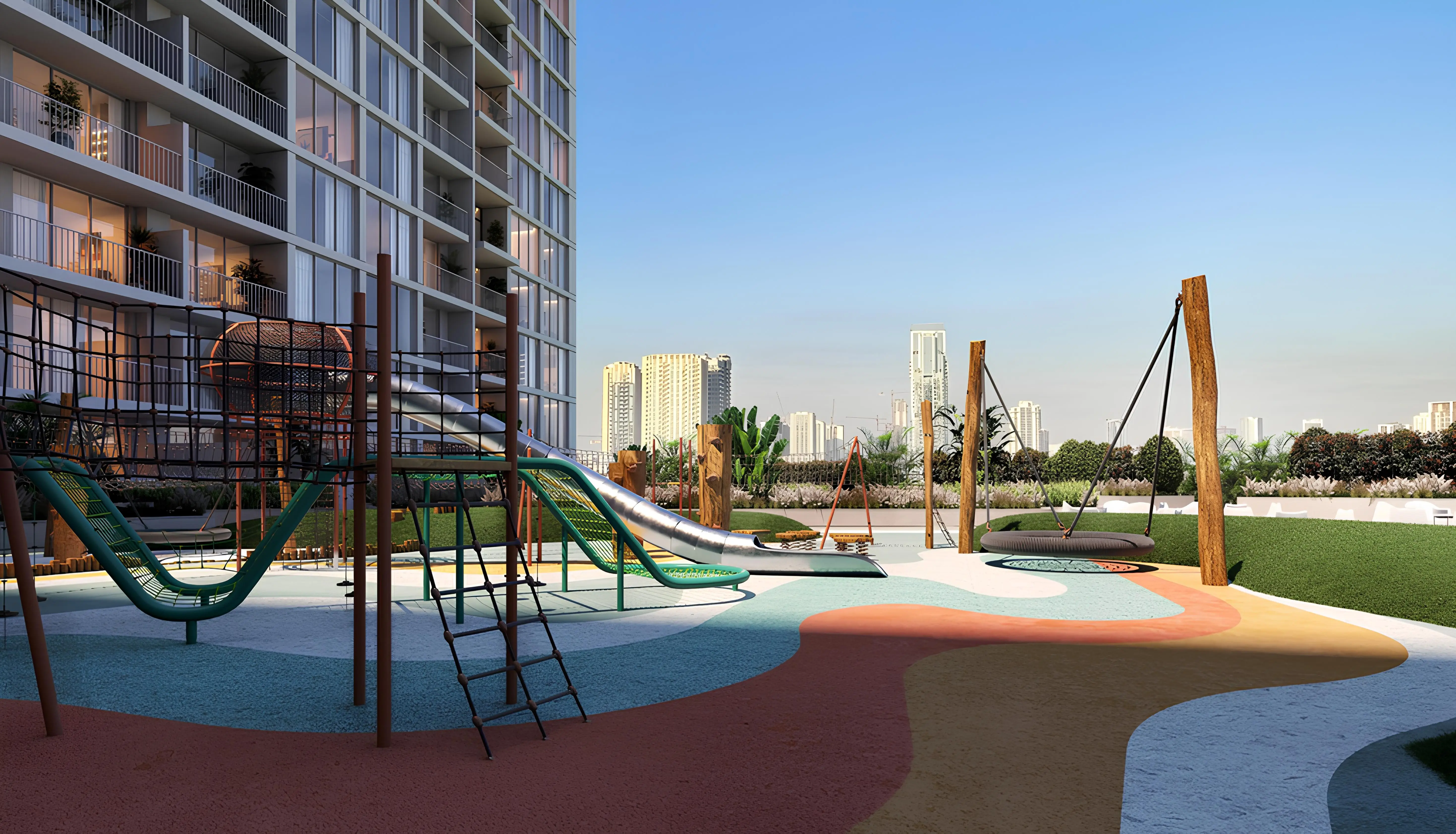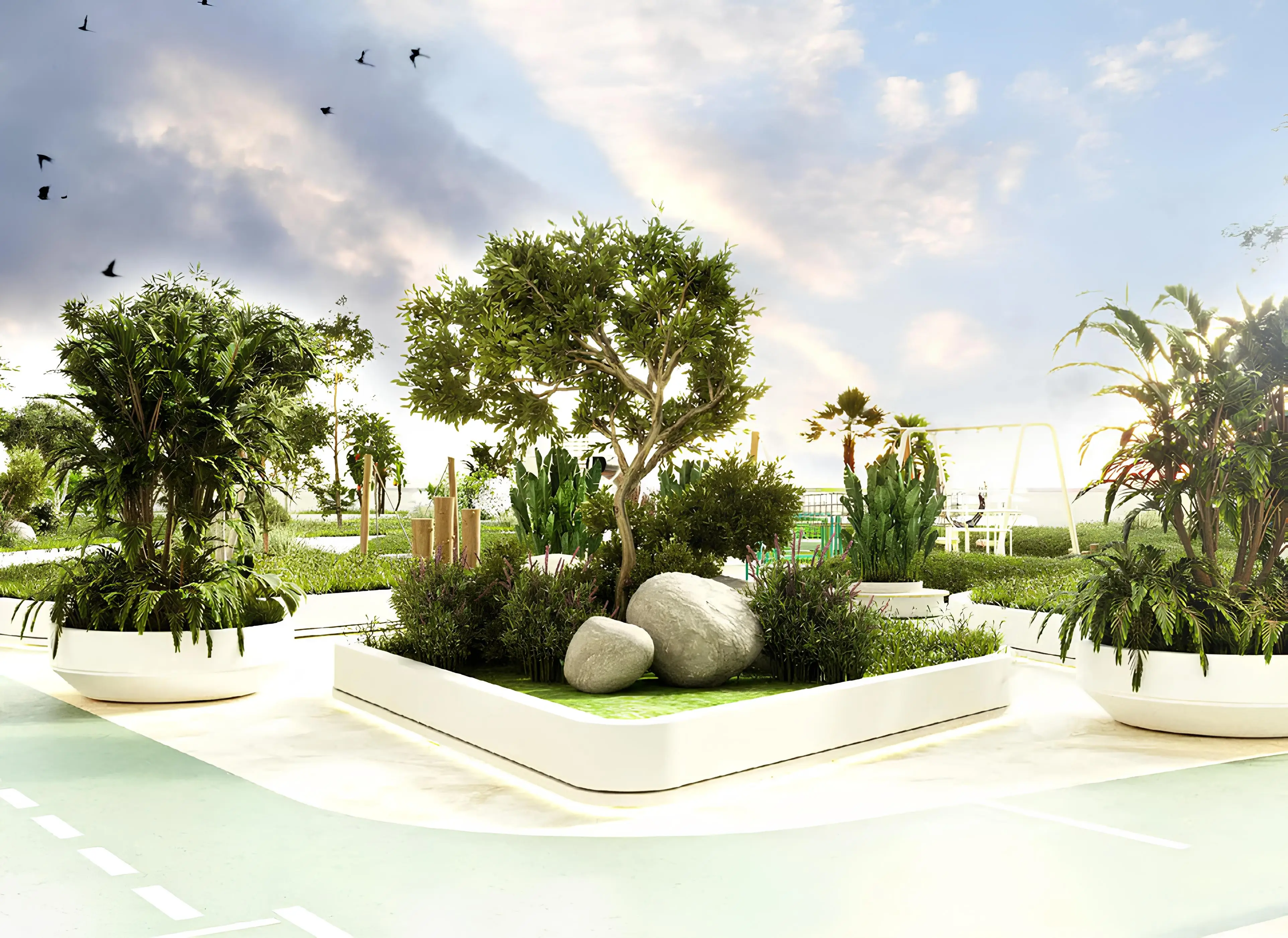 Residents of Luma Park Views enjoy a number of exceptional amenities. The complex has two spacious swimming pools, two modern gyms and an internal garden where you can relax. There is also a jogging track and a play area for children. Beautiful landscaped gardens and various recreational areas add charm and tranquility.