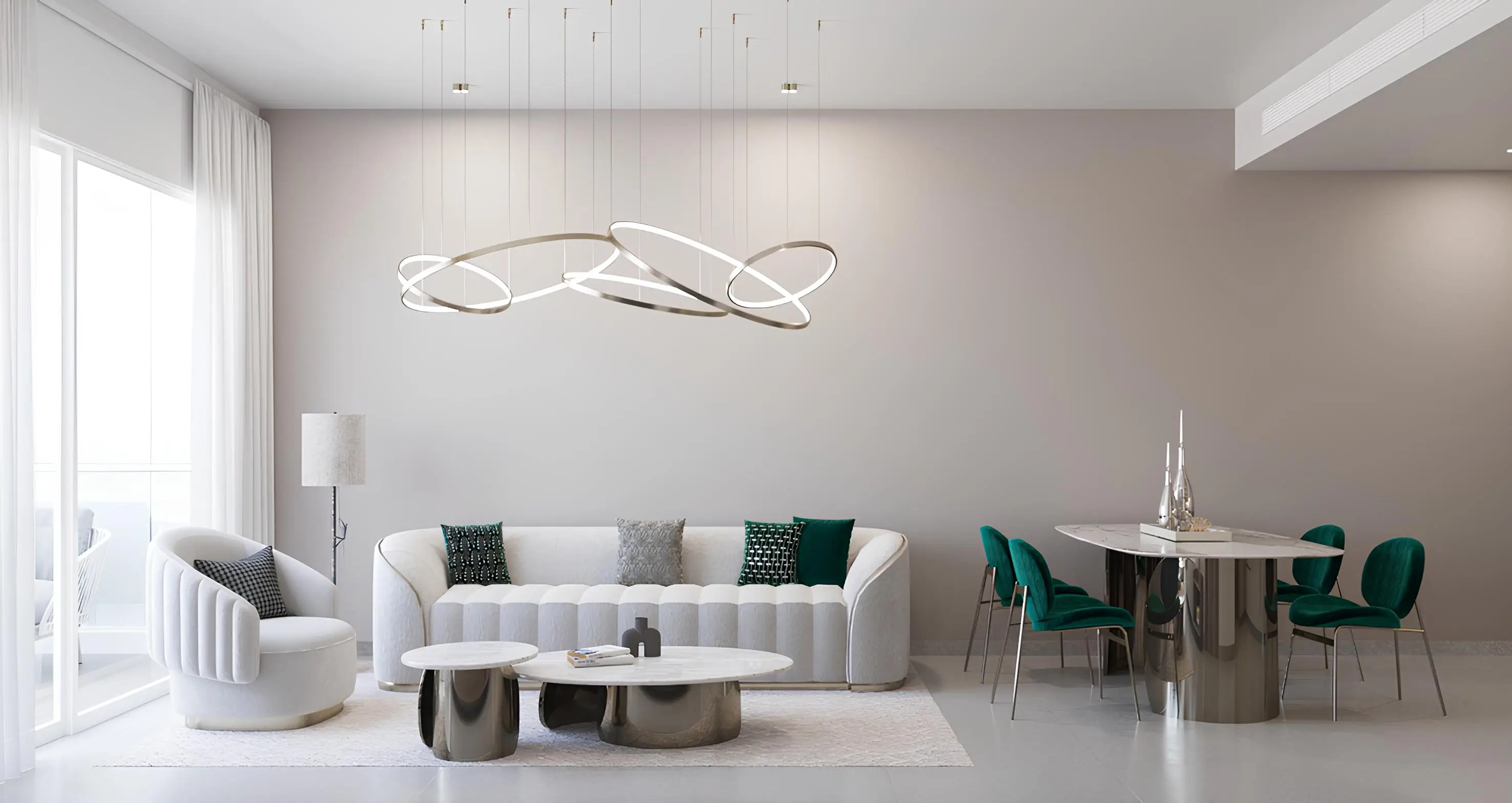 The complex's location in Jumeirah Village Circle provides convenient access to shopping malls, restaurants, cafes, educational institutions, and other amenities. The Mall of the Emirates, Expo City, Burj Al Arab, and Dubai Marina are all within 15-20 minutes. Downtown Dubai and Jumeirah Beach are no more than 25 minutes away, and Al Maktoum International Airport is approximately 30 minutes away.