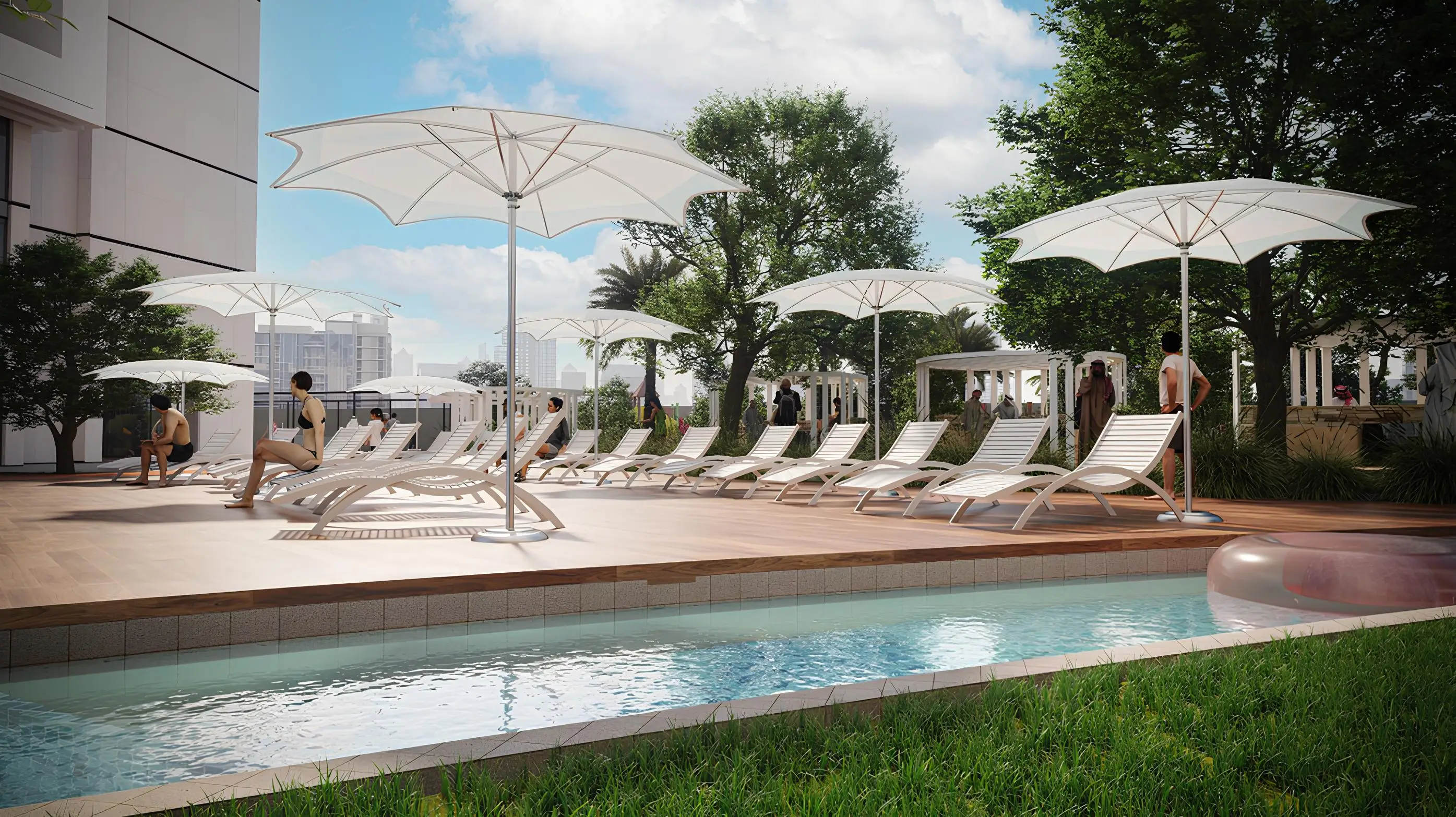 Maimoon Gardens offers a variety of apartment types, from studios to spacious one- to three-bedroom apartments, all designed in a contemporary style with elegant interiors, creating a cozy and stylish atmosphere for comfortable living. Residents can also enjoy a wide range of amenities and services, including swimming pools, sports courts, fitness centers, children's playgrounds, parking, and landscaped recreational areas.