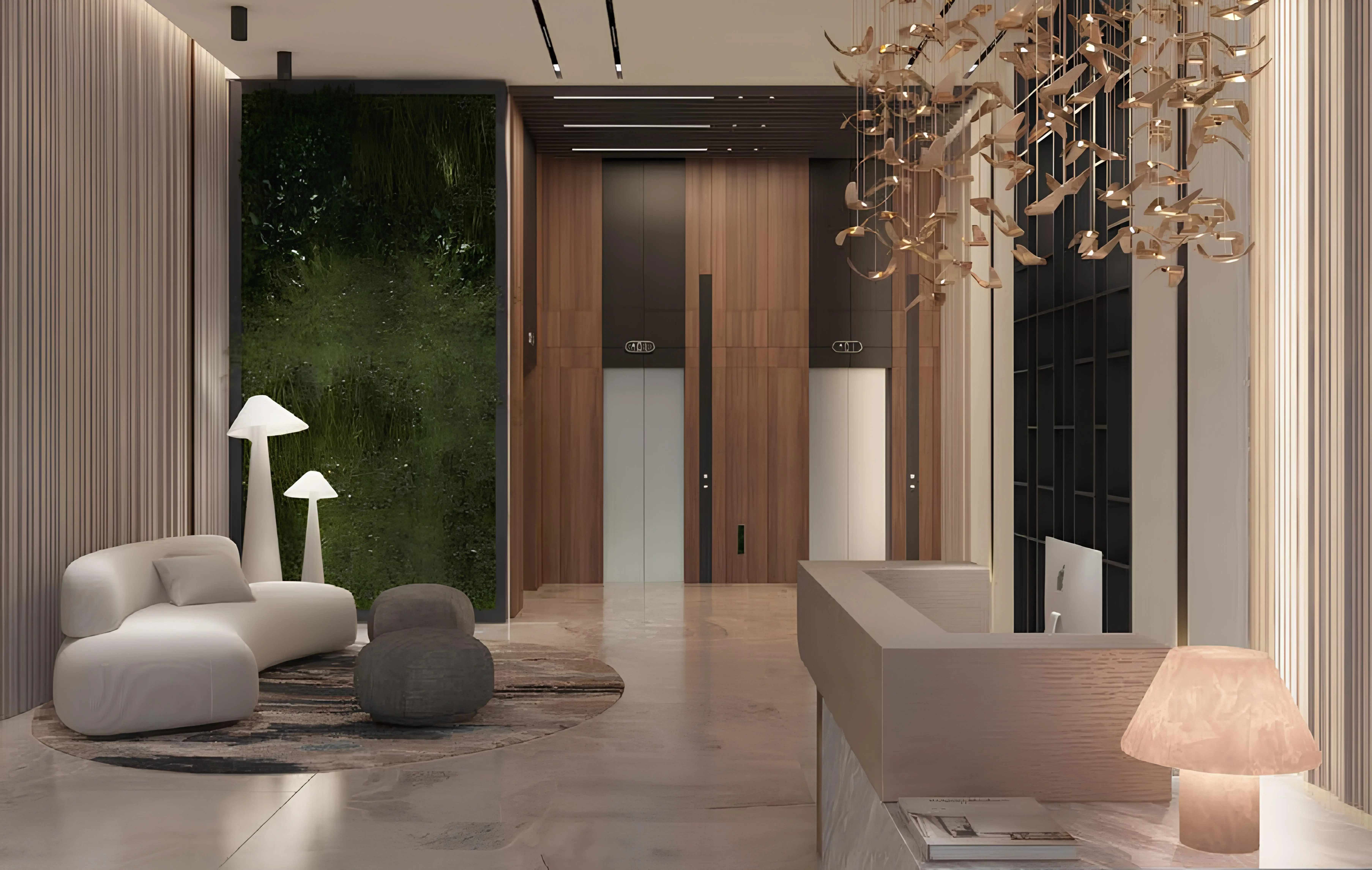 The project offers both commercial spaces and residential spaces—studios and one- to two-bedroom apartments. The interiors are designed in a modern style and finished with high-quality materials. The spaces are bright, spacious, and thoughtfully laid out.
