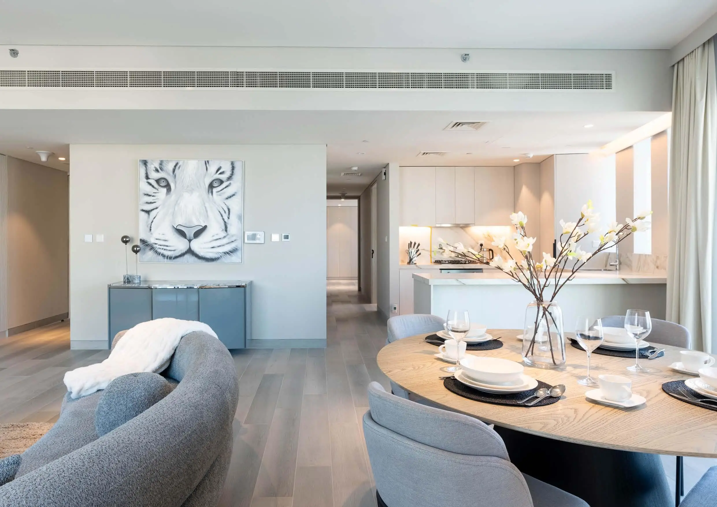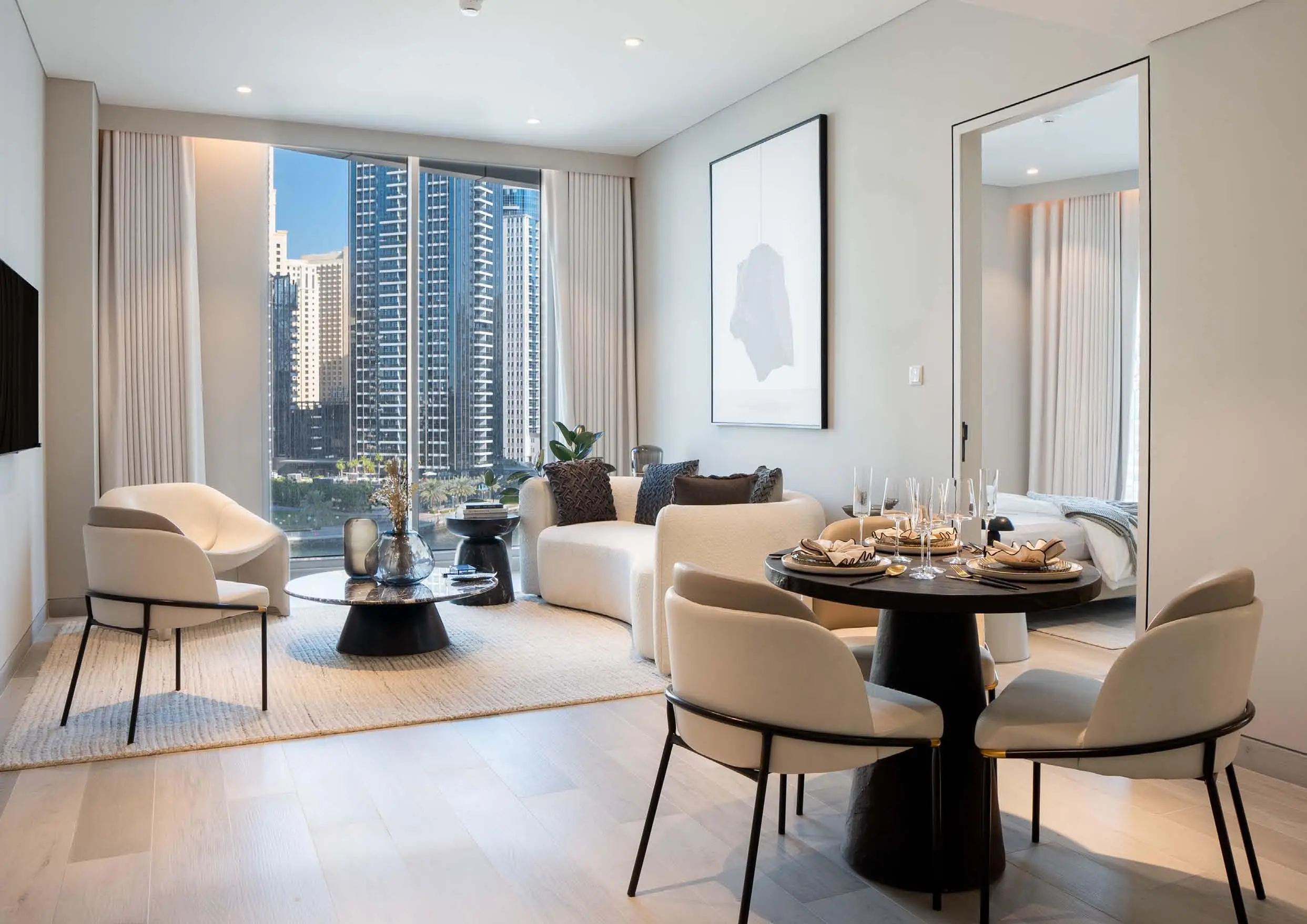 The project offers a wide selection of furnished residences, including studios, one- and two-bedroom apartments, penthouses, and duplex villas. Each residence is bright and spacious, boasting high-end finishes, lofty ceilings, and panoramic windows. All apartments are equipped with a Smart Home system.