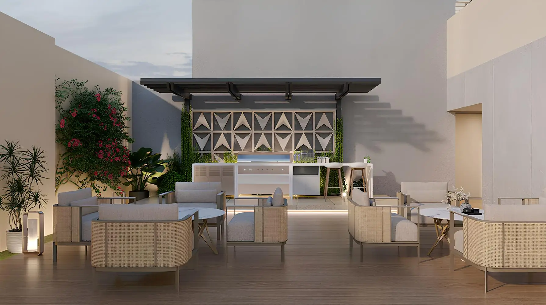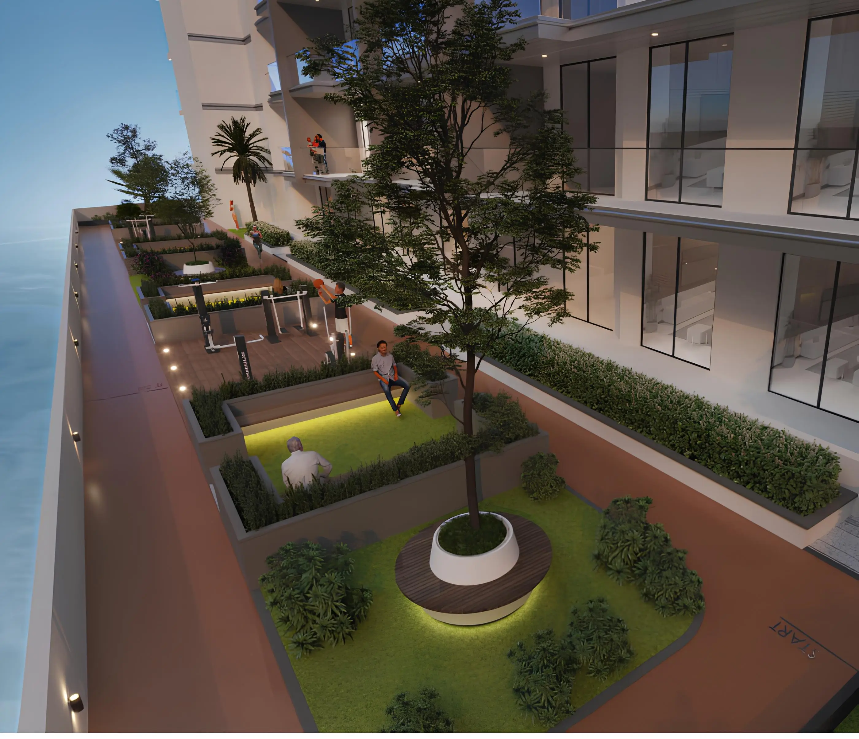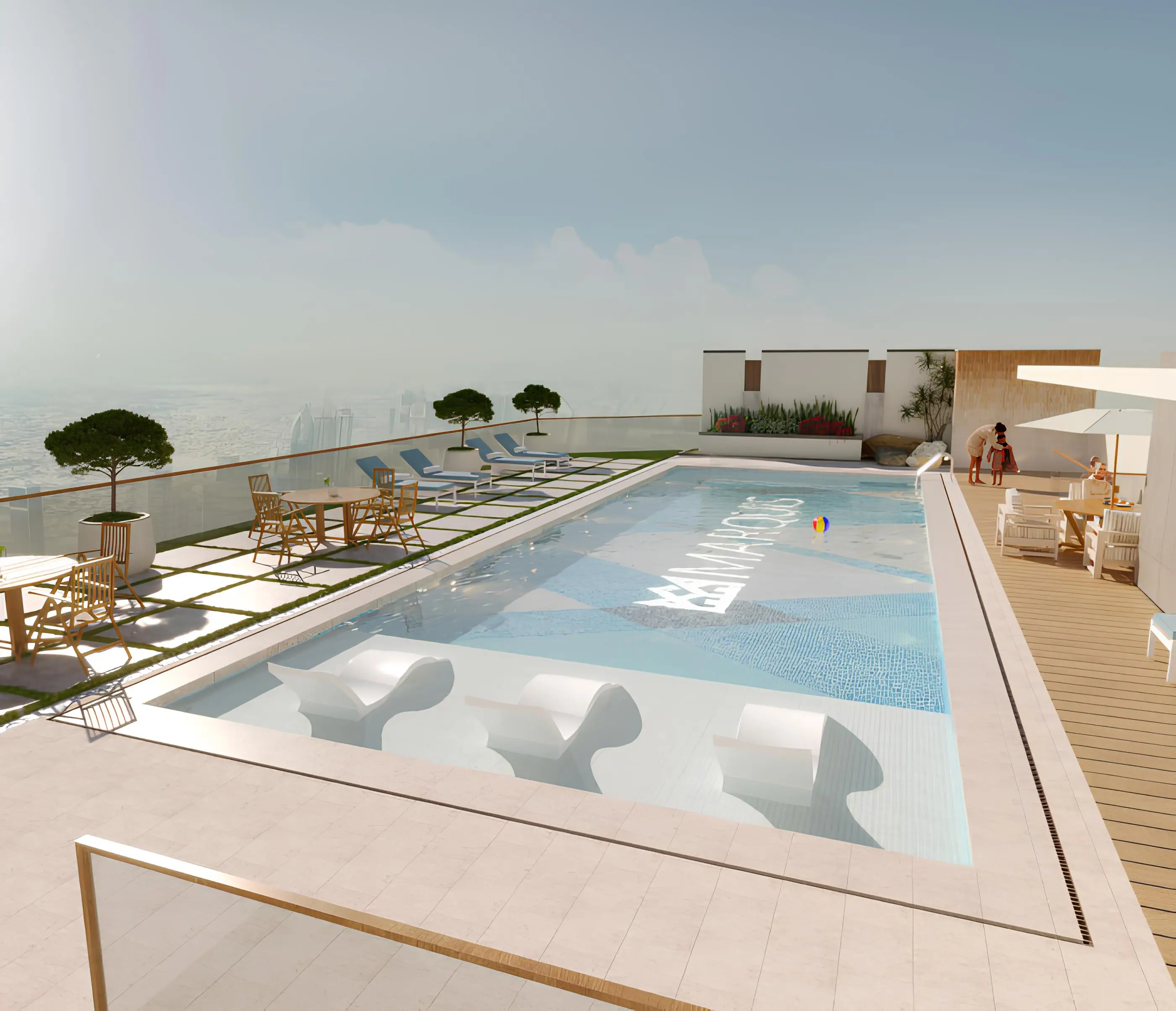 Residents of the complex can play billiards, relax in the barbecue area, watch a movie in the open-air amphitheater, enjoy the coolness of the pool on the roof of the house. There is also a children's pool and a playroom.