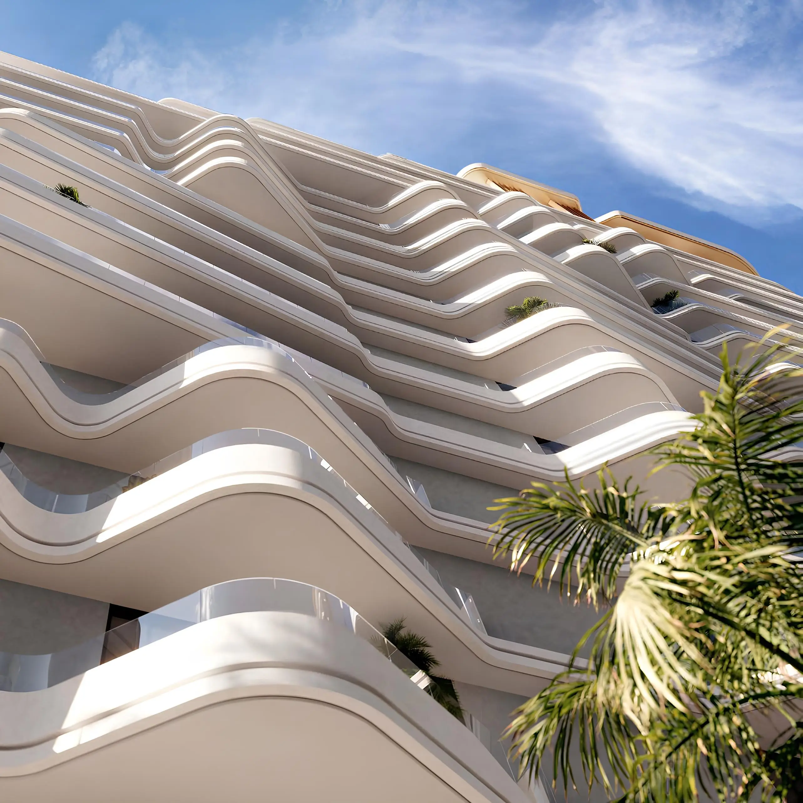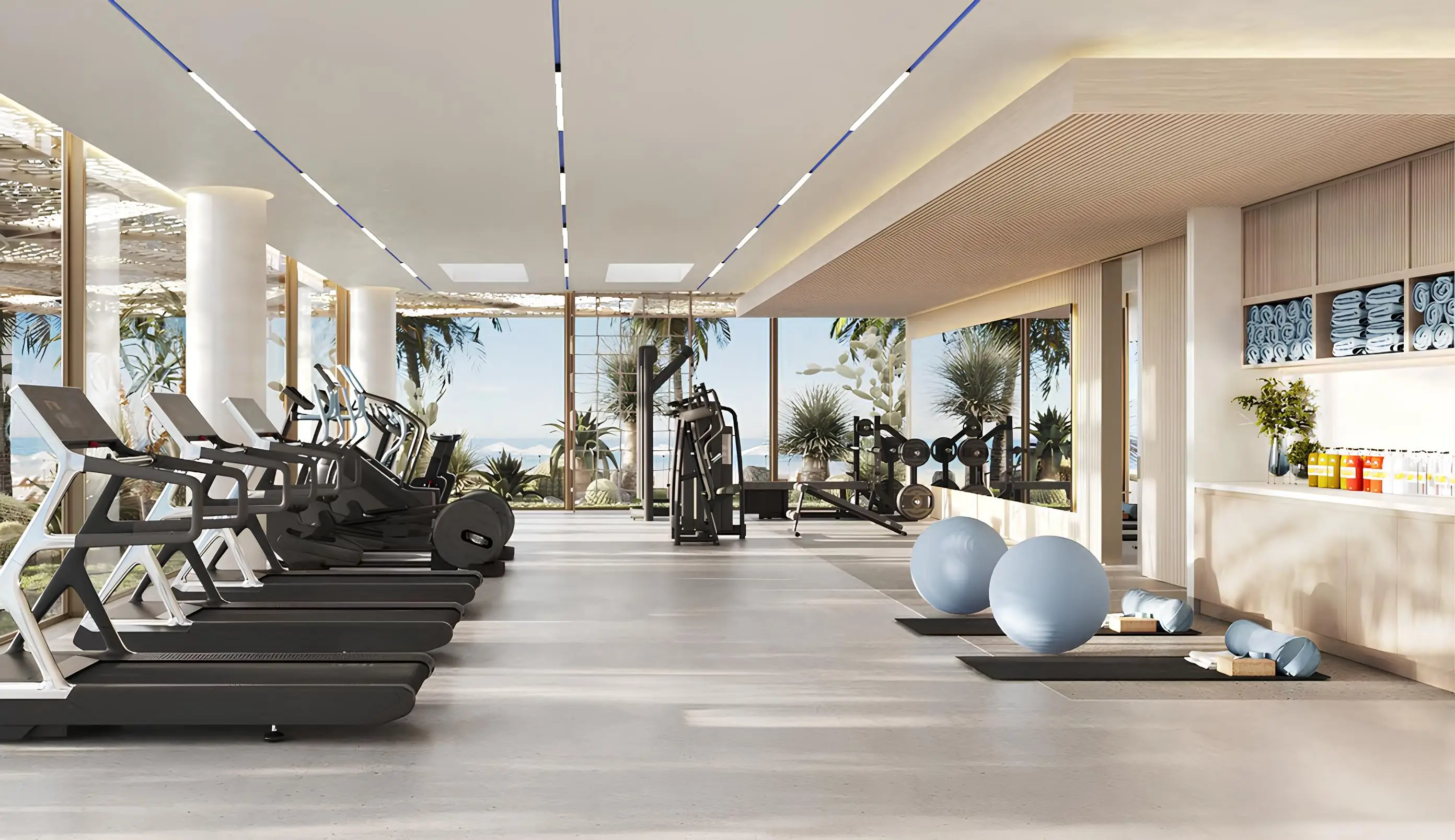 Yoga studio Nikki Beach Residences is a premium residential complex in Ras Al Khaimah from the famous developer Aldar Properties, consisting of three towers. One of them consists of 2 buildings connected by a common bridge (18 and 19 residential floors), the other two are separate (21 and 17 floors). A total of 803 residences are presented: apartments with 1–4 bedrooms, sky villas and sky terraces with five bedrooms. The design of buildings and interiors is made in beige, wooden, gray and metallic shades using wood, marble, as well as ceramic and porcelain tiles.