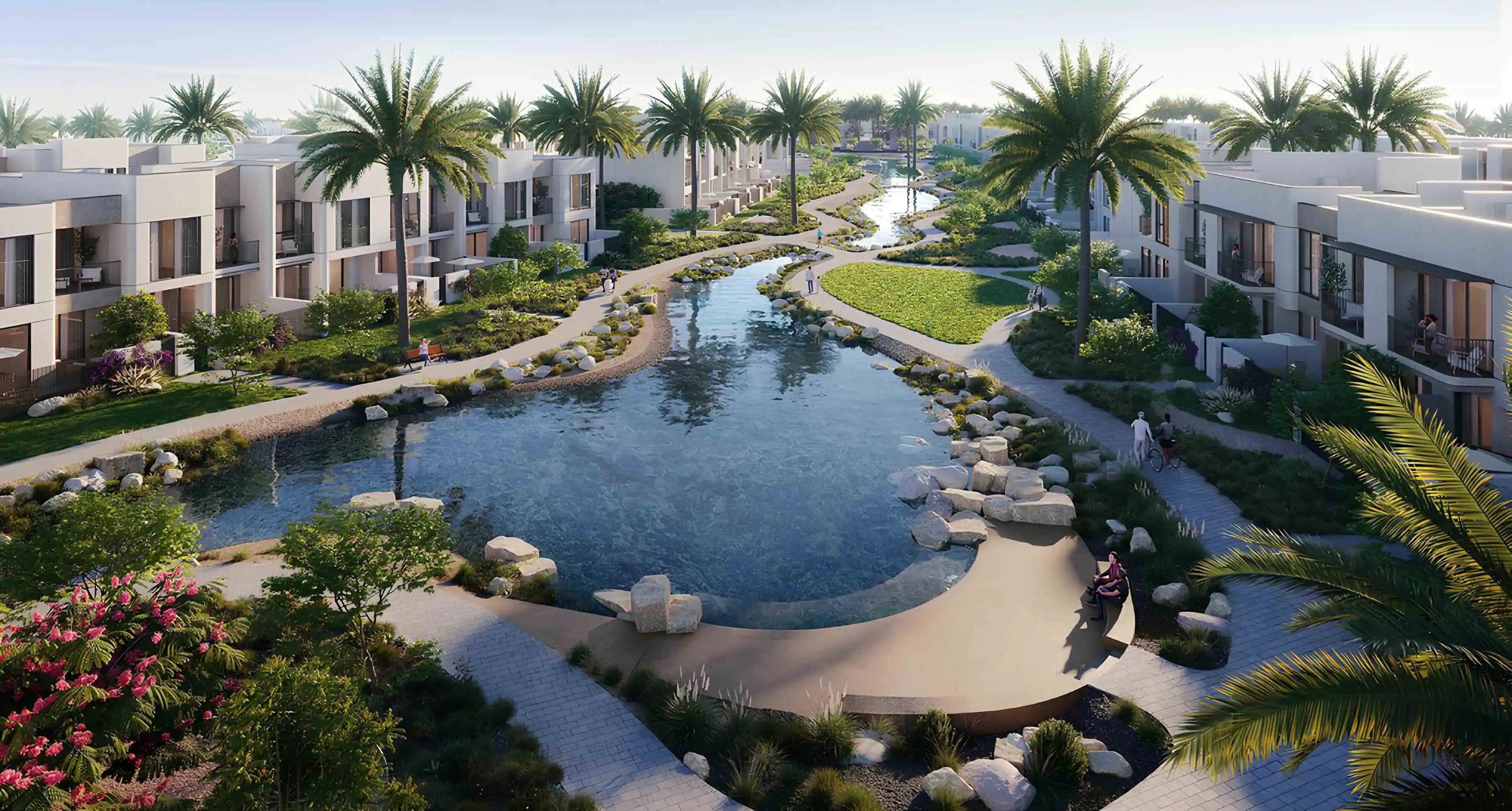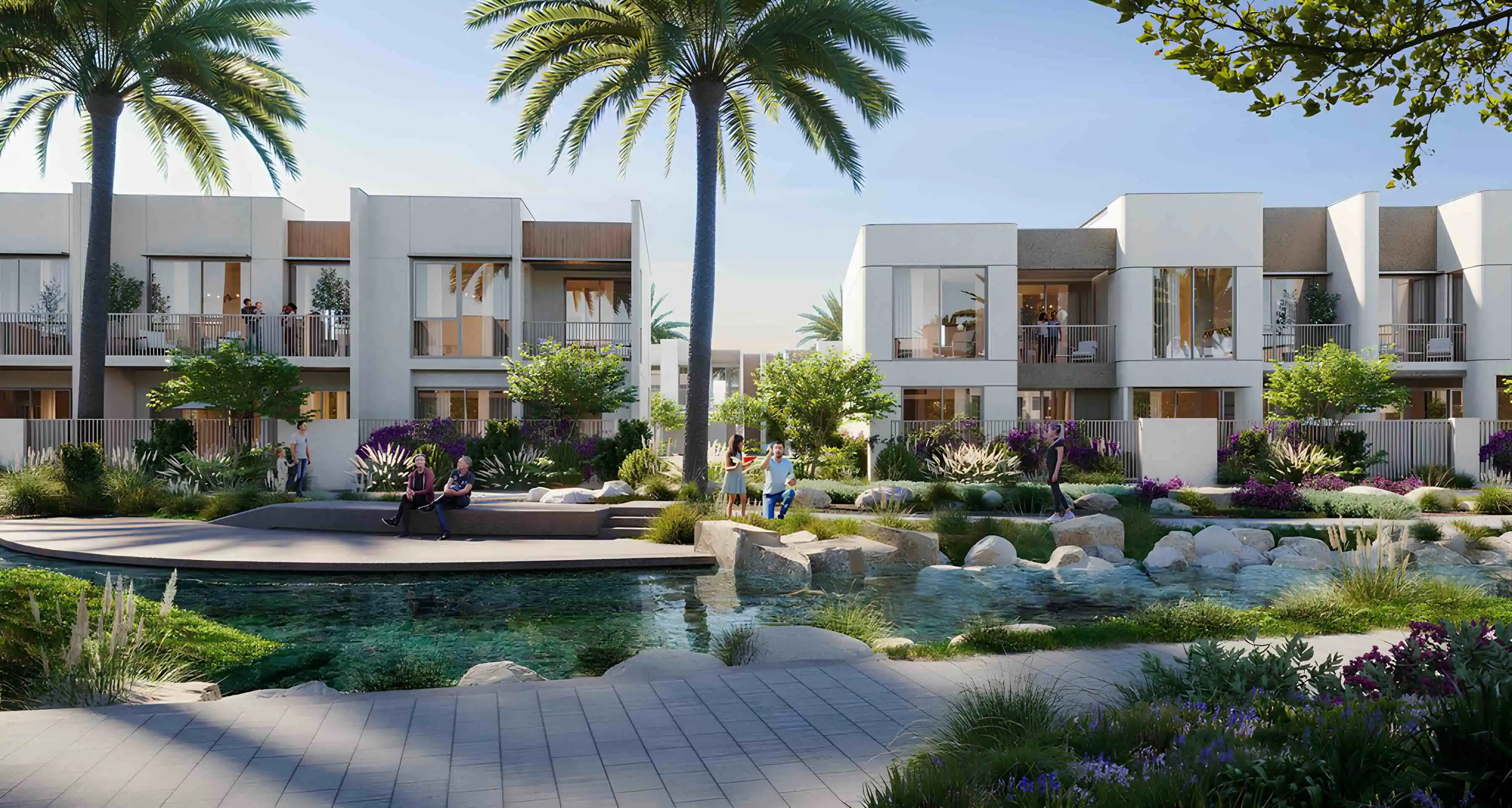 The philosophy behind the Nima project is based on respect for the environment. With an emphasis on locally sourced materials, the townhouses are an ode to the surrounding landscape. What's more, our unique waterways enhance connectivity between residents and provide scenic views, seamlessly blending with the breathtaking Valley Park, home to a variety of recreational facilities.