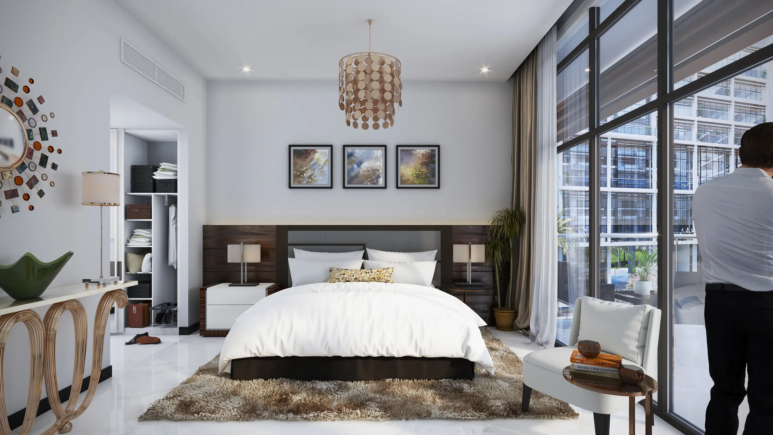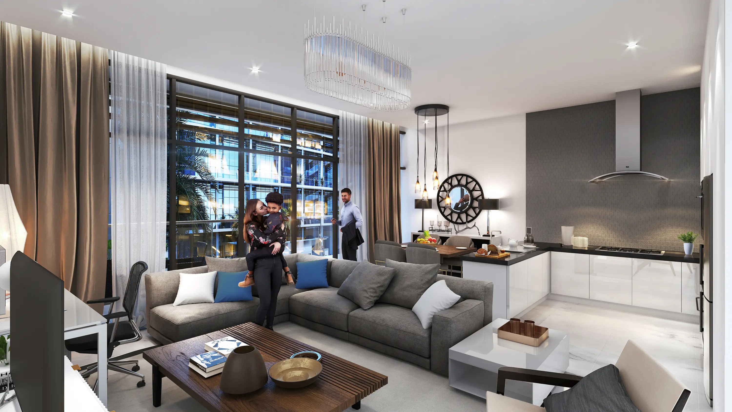 All residential units are equipped with kitchenettes, built-in wardrobes and walk-in wardrobes in the bedrooms. Bathrooms are fitted with sanitary fittings including walk-in showers. Each residence has a spacious balcony or private terrace, high ceilings and marble floors in the rooms.