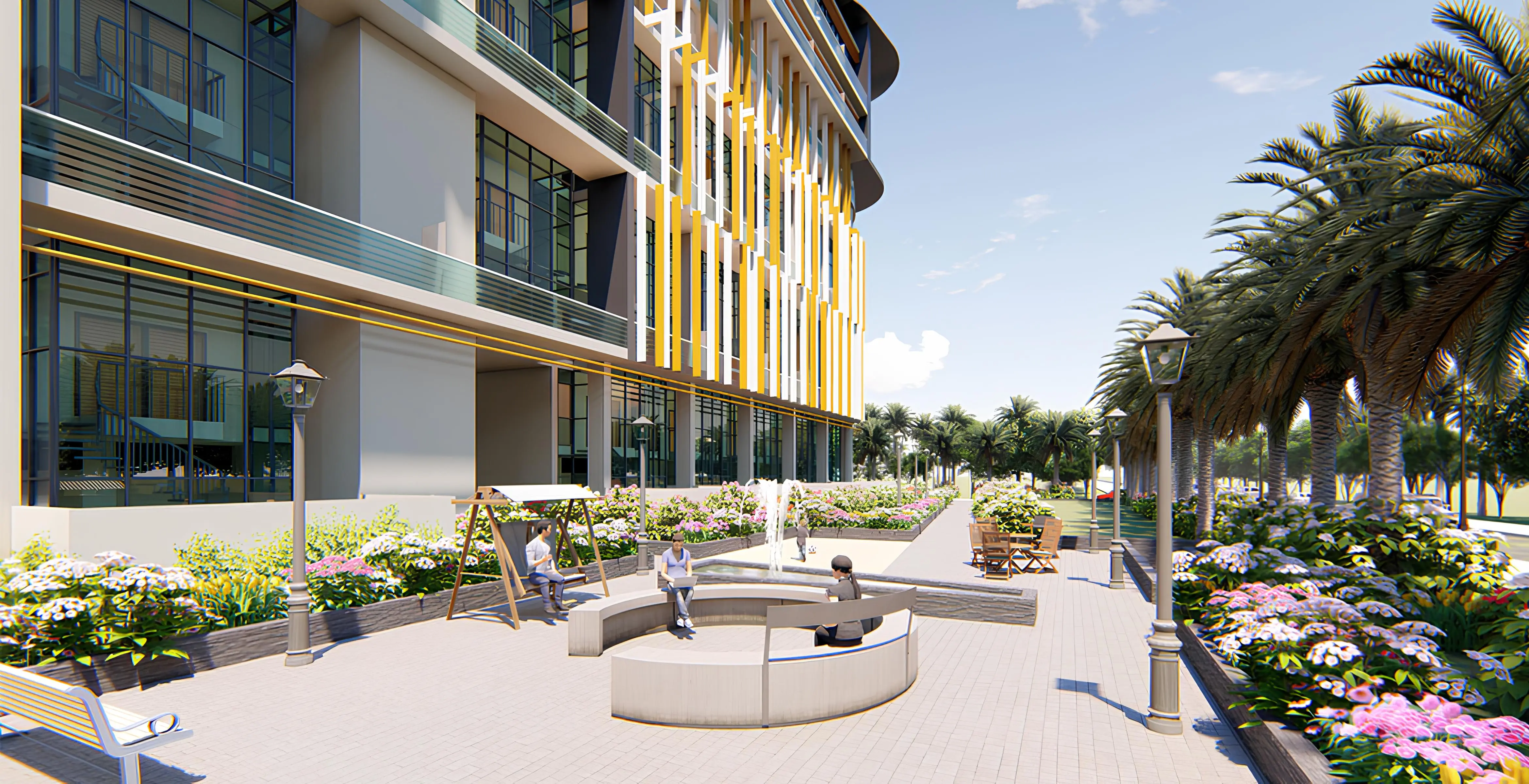 Energy-saving environmentally friendly technologies have been implemented in the project. Healthy microclimate is created thanks to ventilation and air conditioning systems, garden with plants and elements of vertical landscaping.