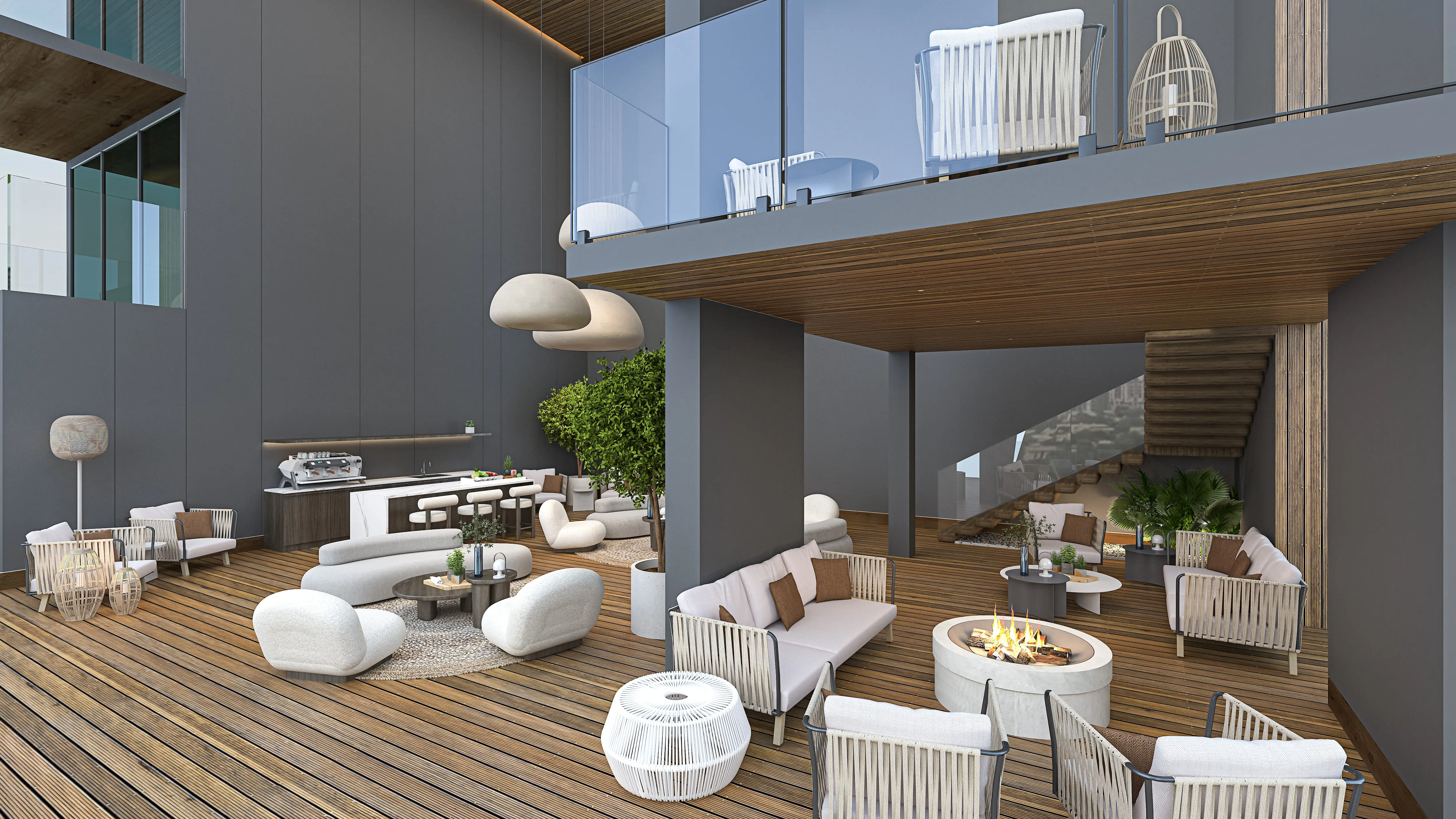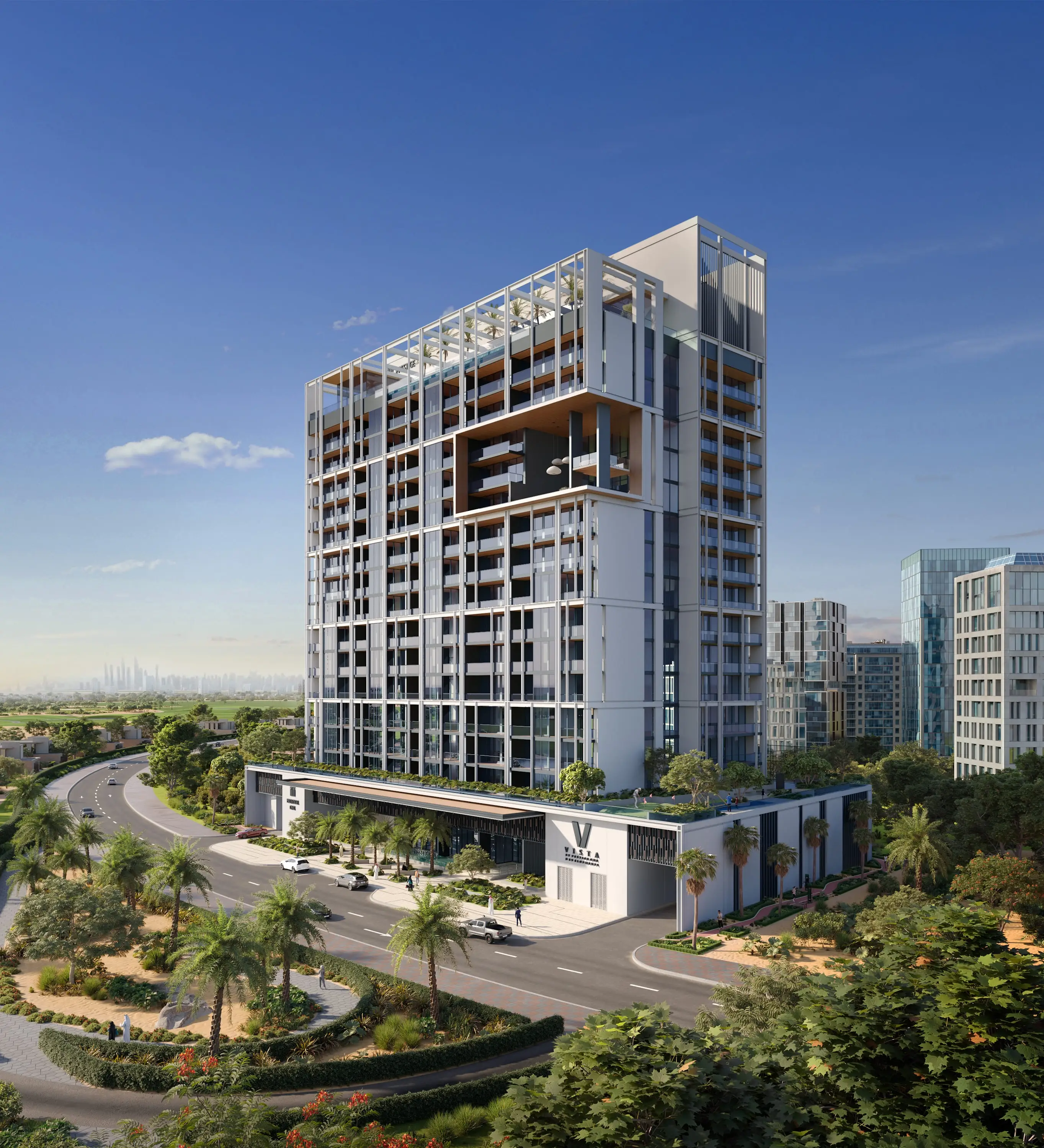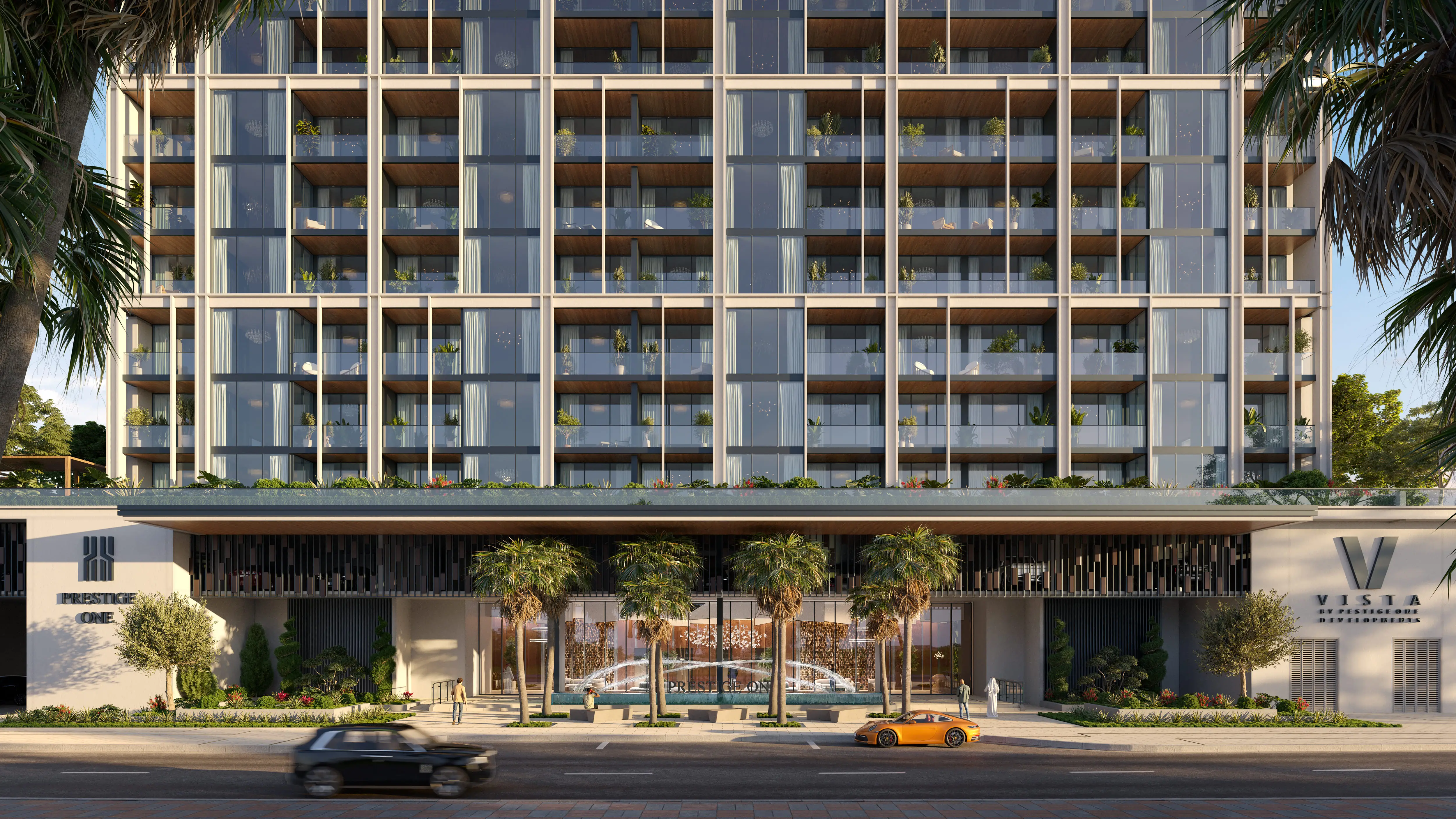 Sunken Seating Vista is a residential complex by Prestige One, located in Dubai Sports City. The project is designed in a contemporary architectural style, with refined façades and panoramic glazing that emphasize the concept of view-oriented residences filled with natural light. The residential complex consists of a basement level, ground-floor level, podium level, fourteen residential floors, and a rooftop.
