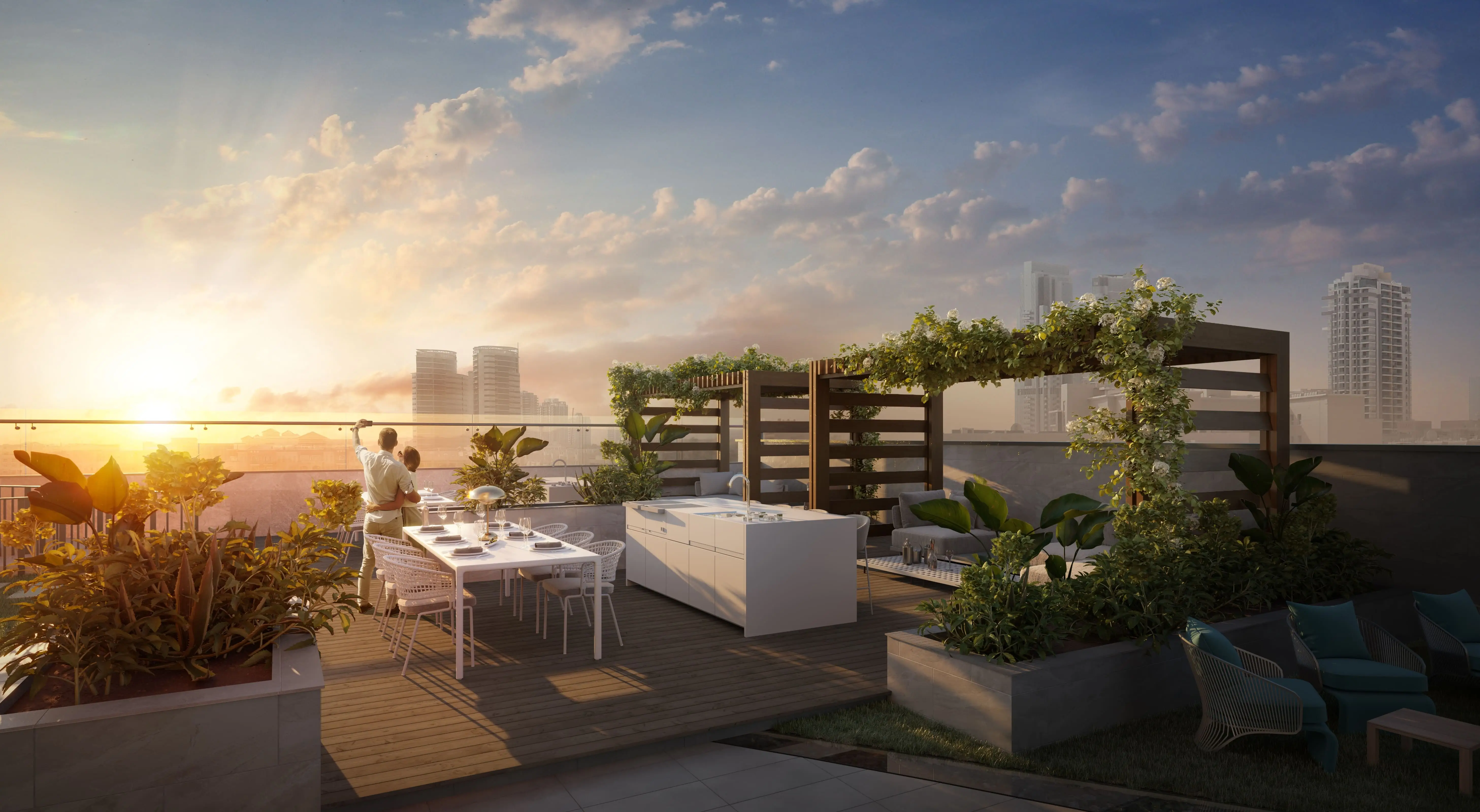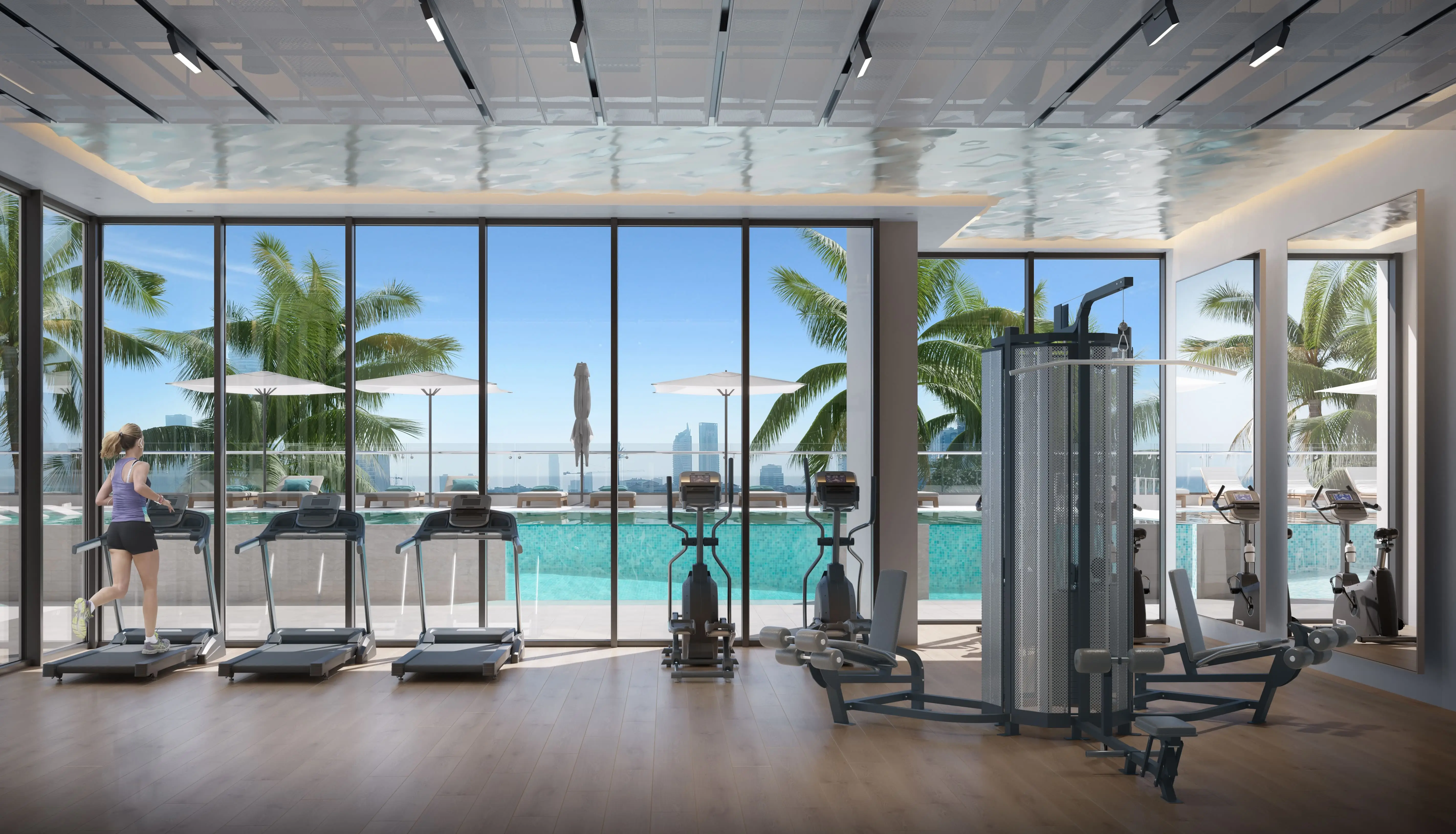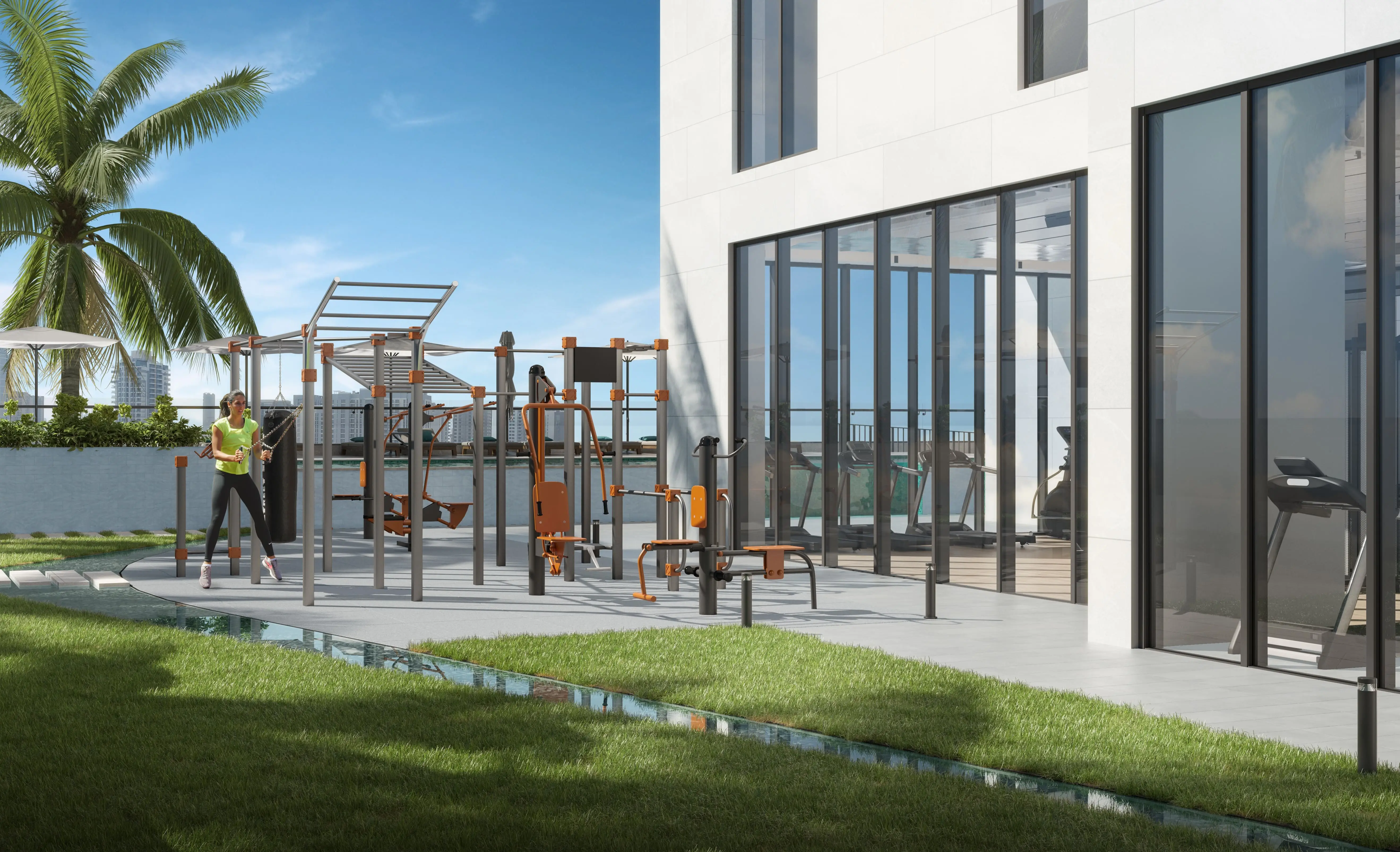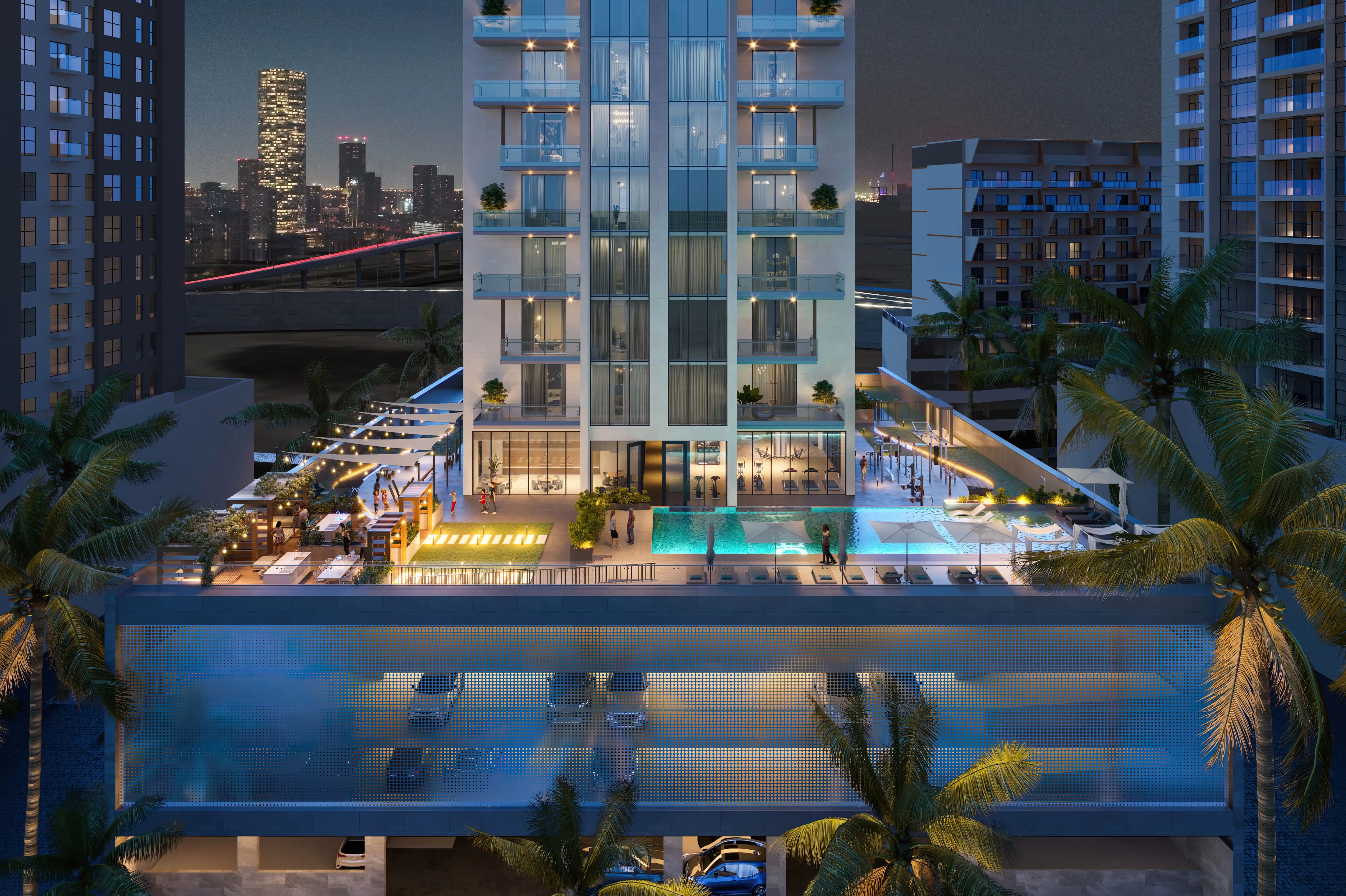RA1N features an extensive range of amenities, including a swimming pool with a terrace and sun loungers, a children’s pool, a gym, a clubhouse, a library, a coworking area, a cinema, a game room, yoga and fitness zones, as well as a barbecue area and open-air kitchen. The podium level features landscaped gardens, walking paths, and lounge spaces. Families can enjoy children’s play areas, while the rooftop includes private terraces and pools in select exclusive residences.
