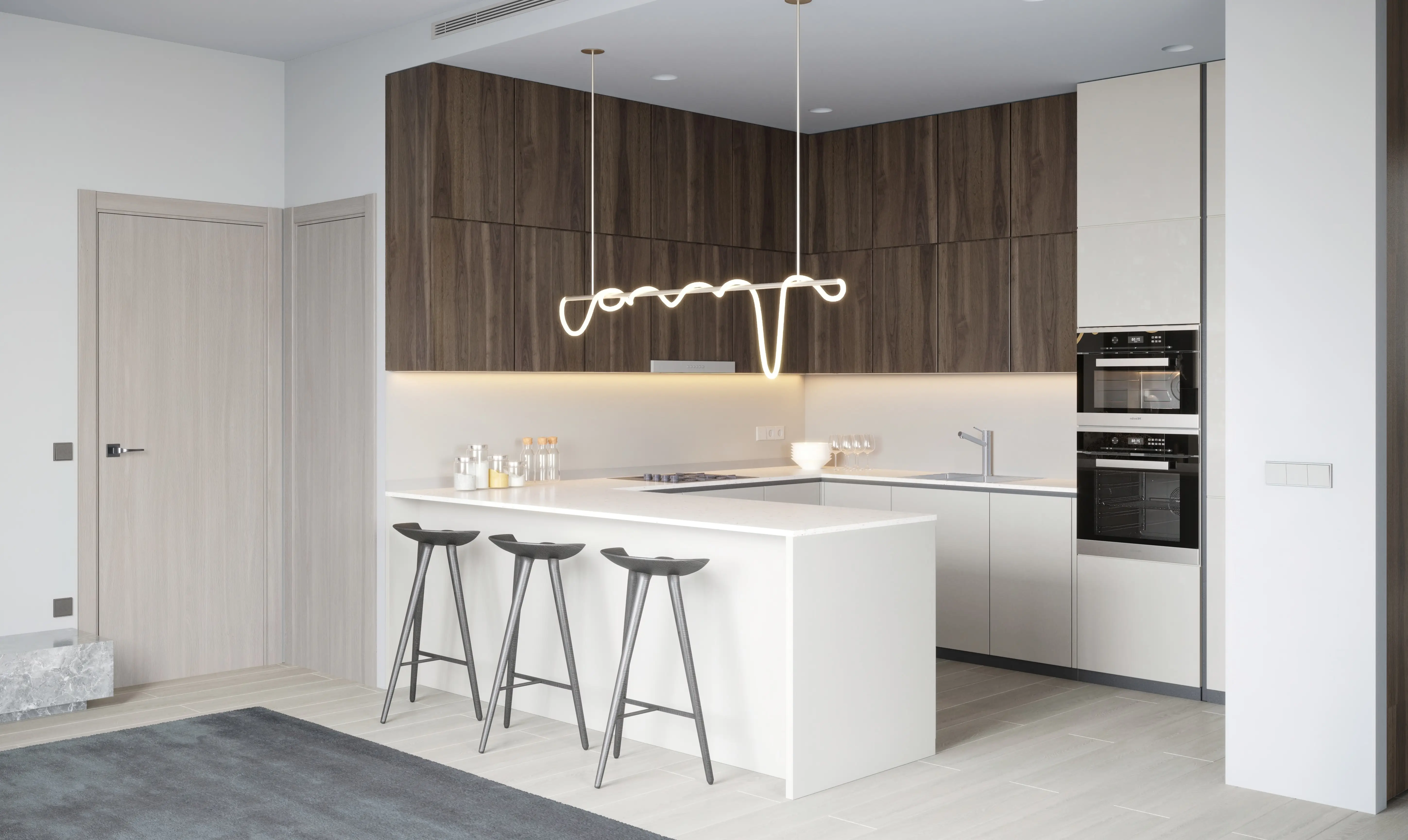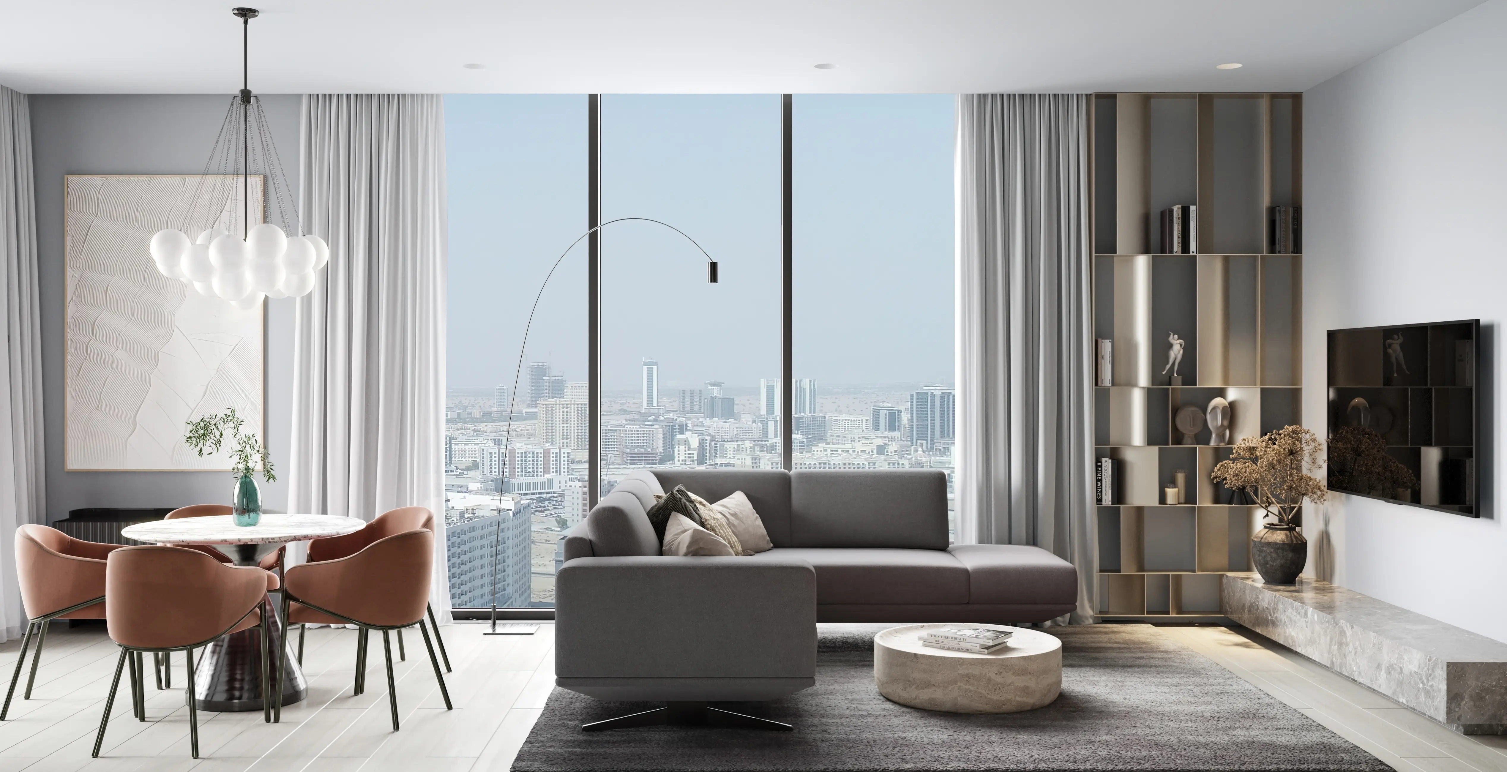 The development offers 1- and 2-bedroom apartments. Spacious layouts, panoramic windows, and bright interiors create an atmosphere of lightness and comfort. Italian furniture and finishes from renowned European brands highlight the project’s elegance and premium quality.
