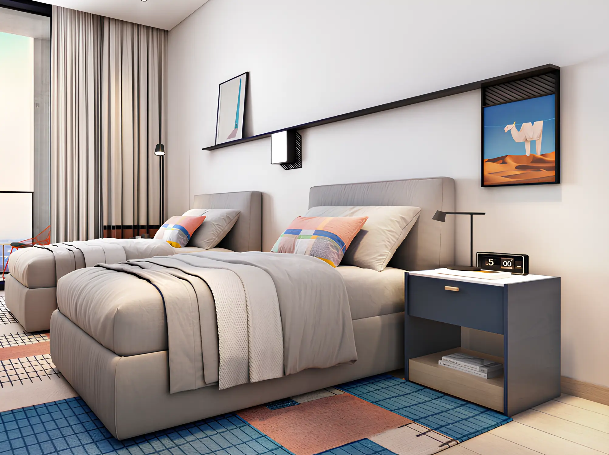 Rove Home 2 Aljada enjoys a strategic location with easy access to essential attractions. It is just a 5-minute walk away to family center Madar and SABIS International School. Sharjah International Airport is just a 5 minutes away by car, while the University City of Sharjah and the Sharjah Cricket Stadium are 3 minutes away. It is just 20 minutes to DXB by car to Dubai International Airport.