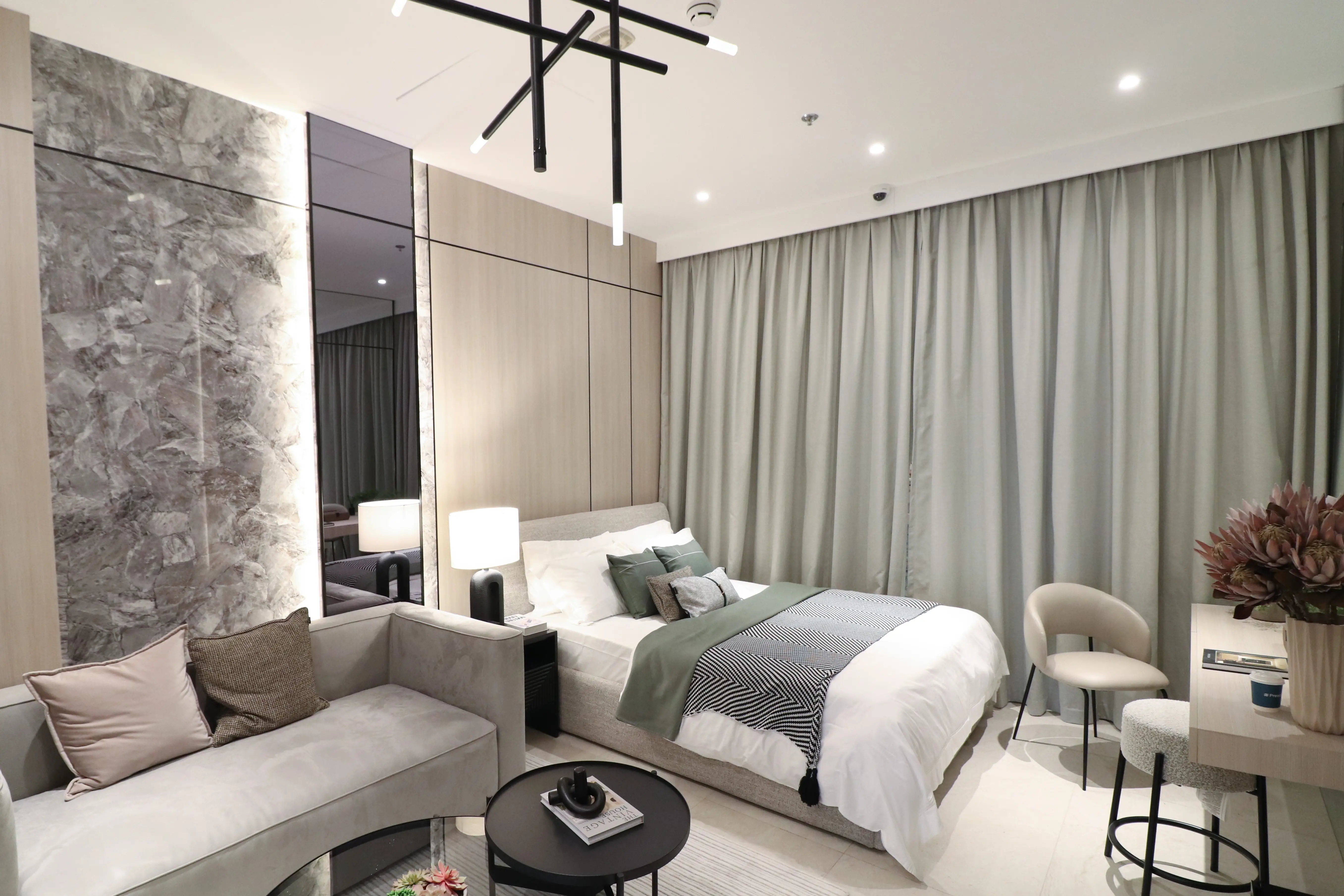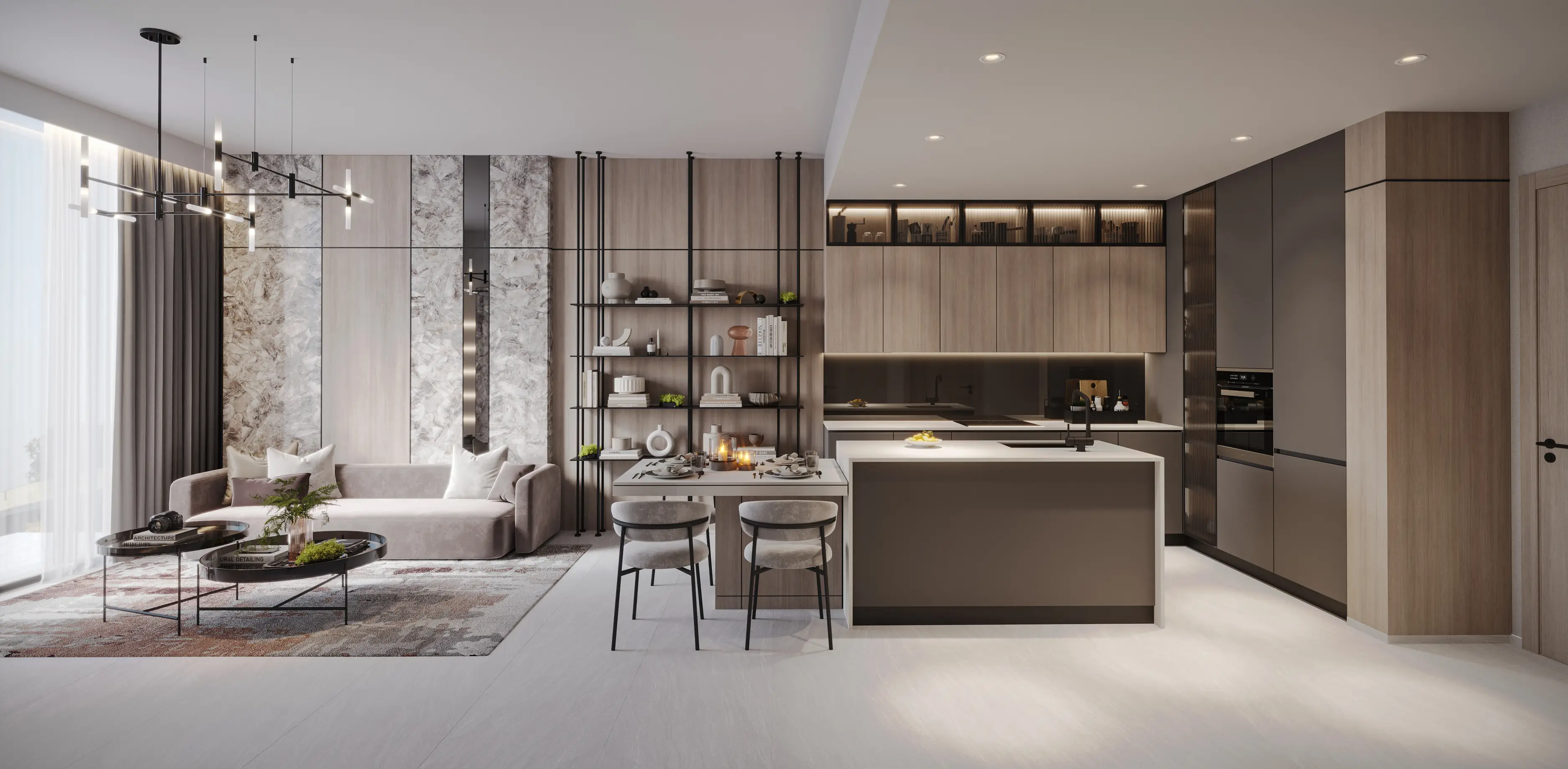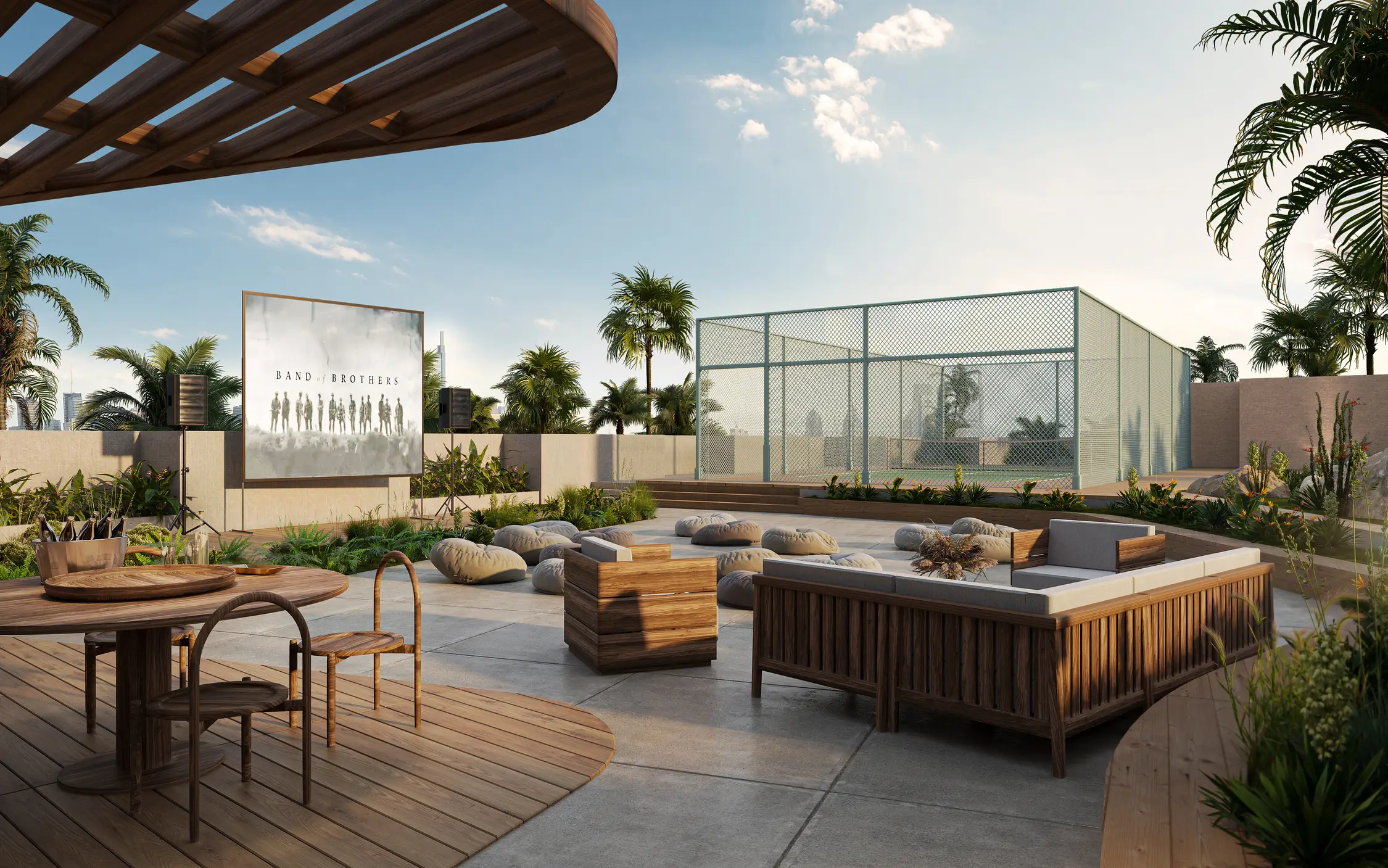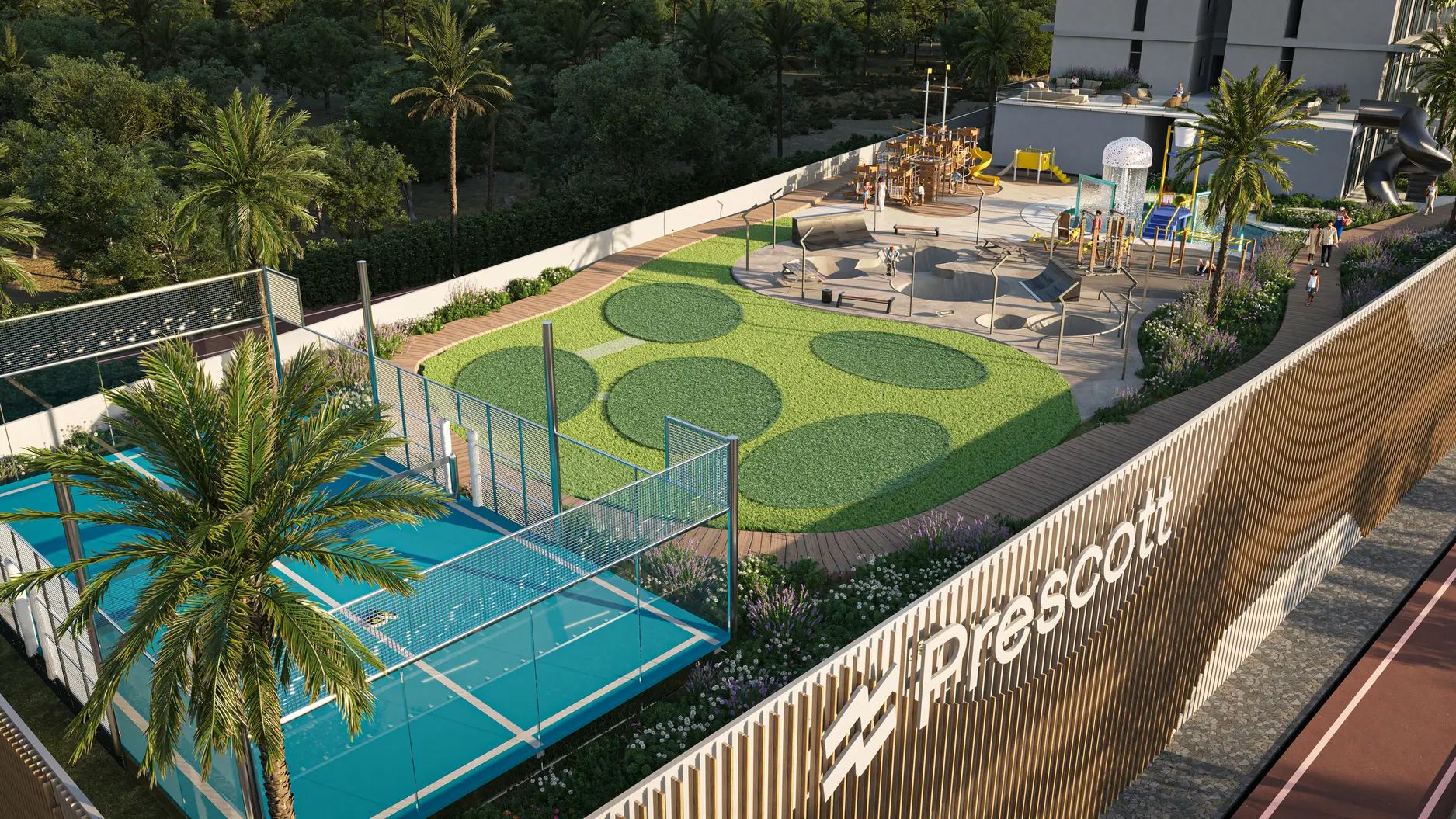 Shared gym & fitness Serene Gardens 2 is the second phase of a premium project by the developer Prescott, presented by the agency Golden Bridge, located in Al Furjan, near Discovery Gardens Metro Station. The complex consists of a ground floor, a podium level, and ten residential floors with a roof, featuring a design that perfectly blends aesthetics with functionality, while its contemporary style highlights the project’s elegance. It stands out among other developments with its distinctive interiors. The complex offers 1- and 2-bedroom apartments, with interiors designed in a modern style in soft tones and floors finished with glossy marble. Each residence provides a sense of comfort and tranquility.