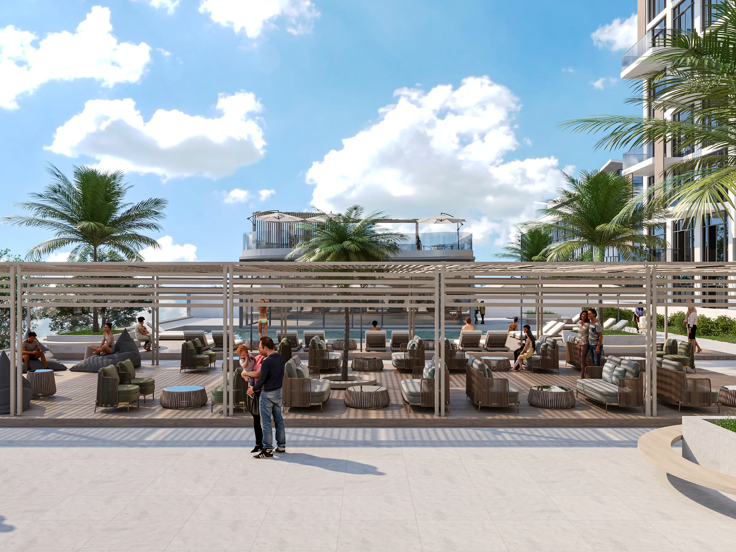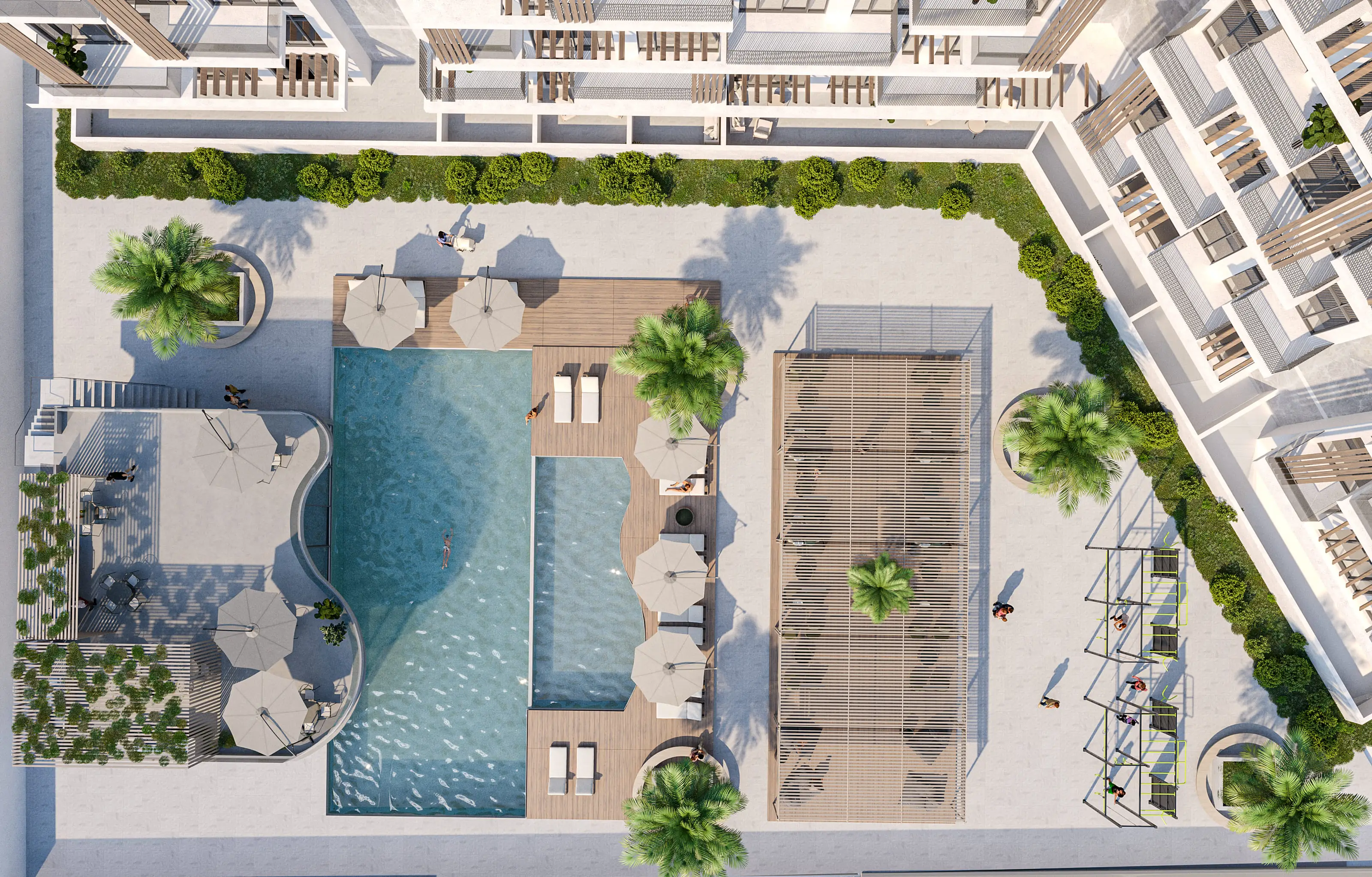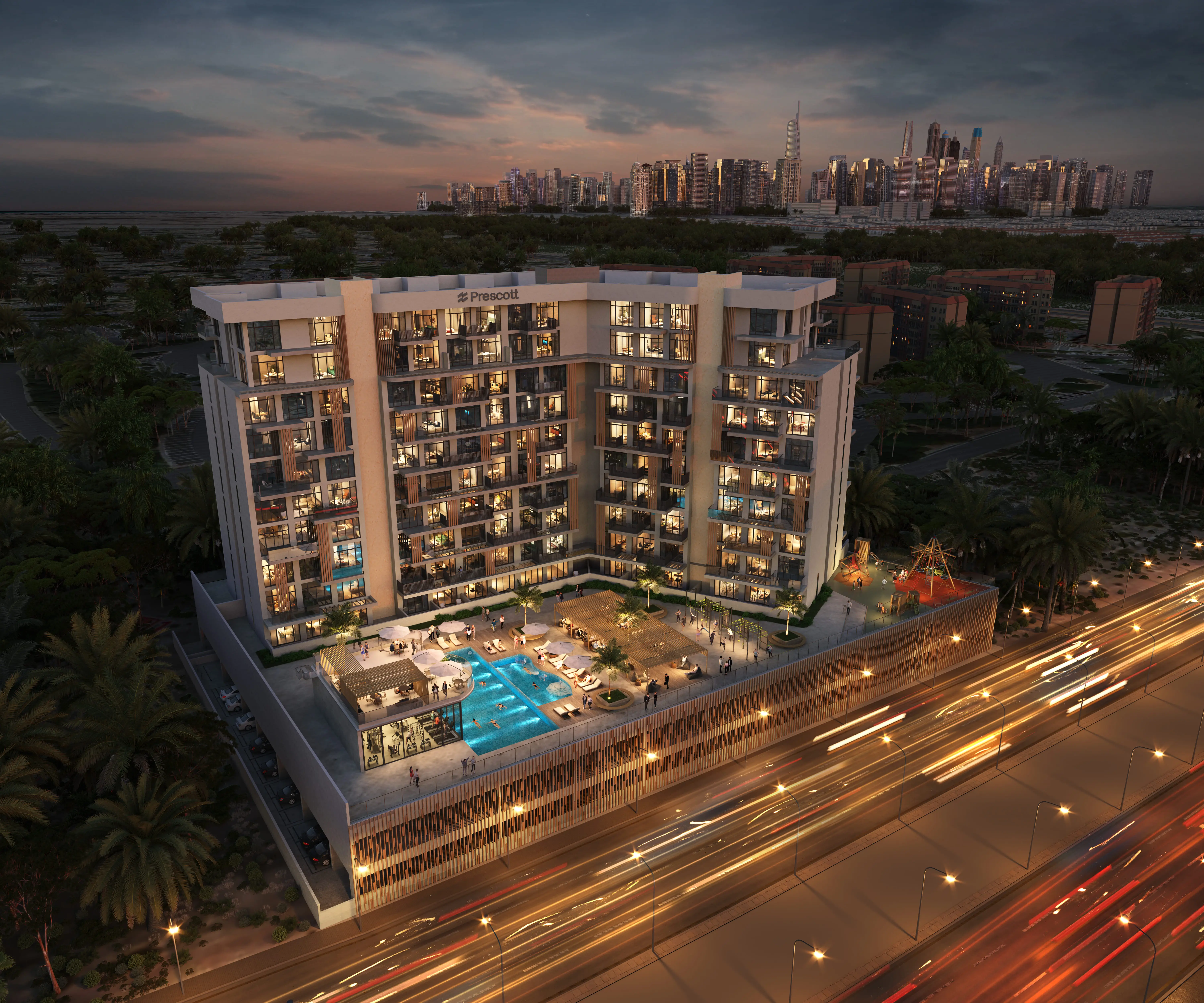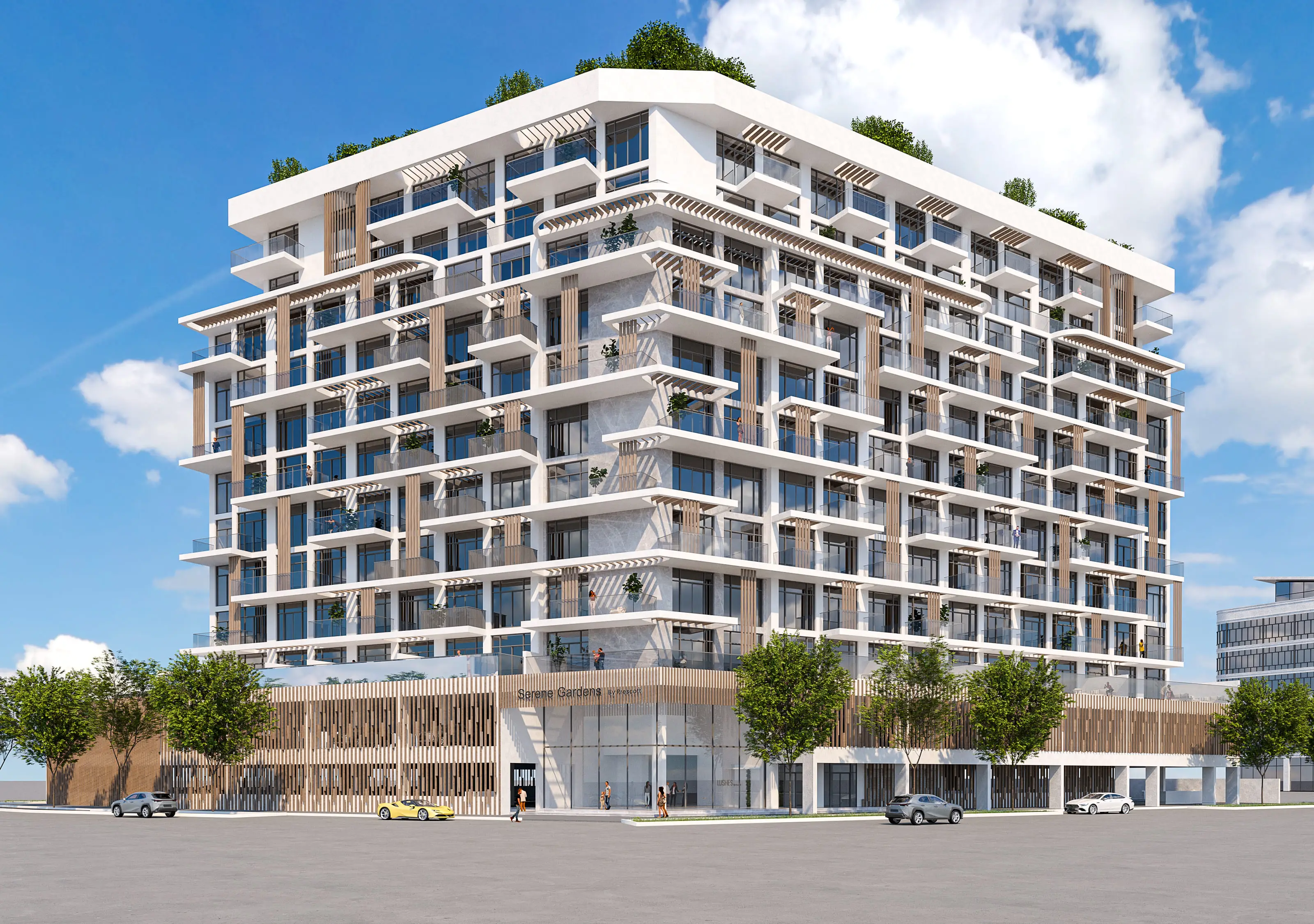 Residents of Serene Gardens can enjoy a wide range of world-class amenities. There is a fully equipped gym and a large infinity pool on the podium with uninterrupted city views. For children, there are playgrounds and a small pool. The complex also features landscaped gardens with seating areas, walking and jogging paths, and barbecue spaces.