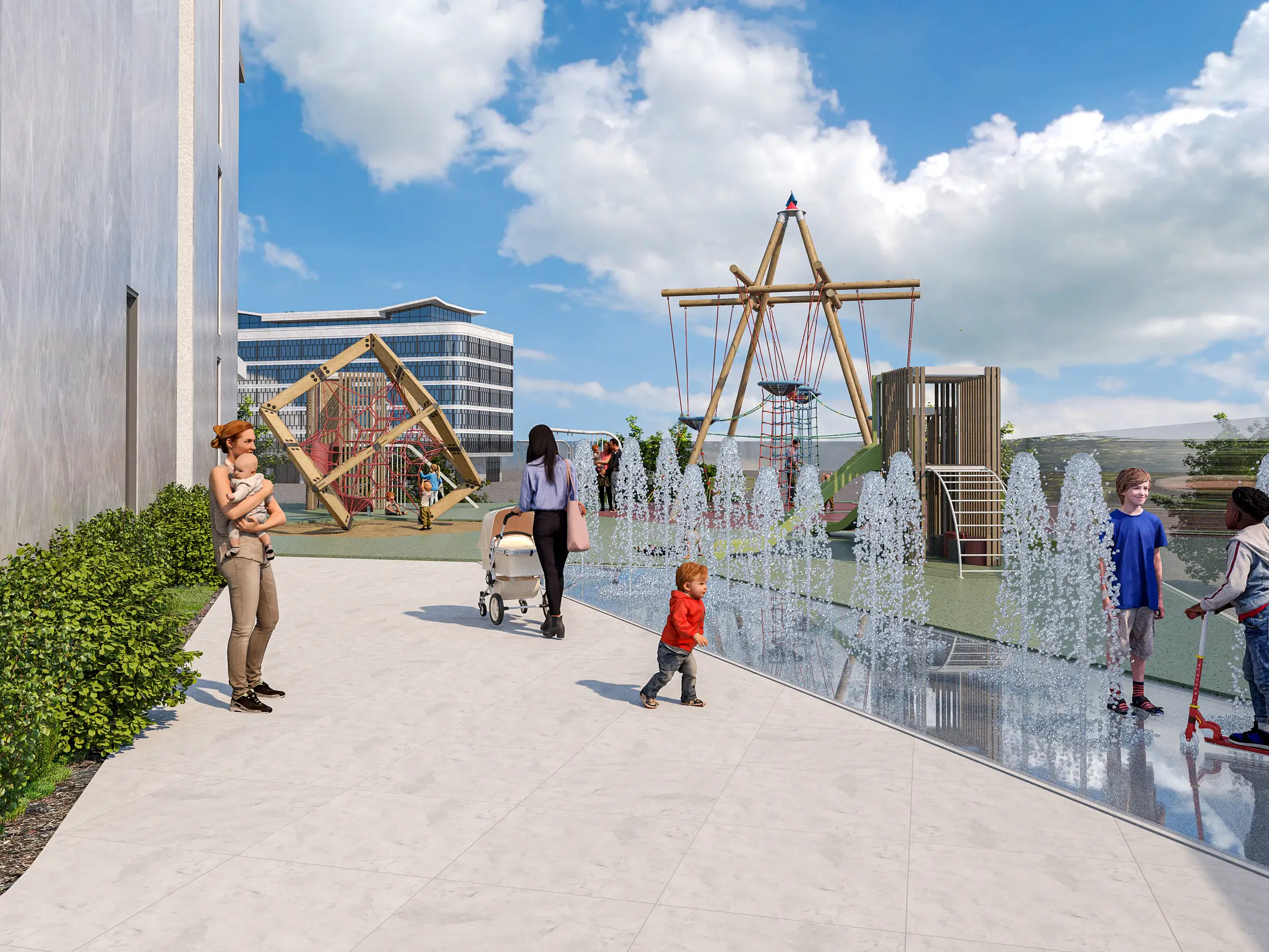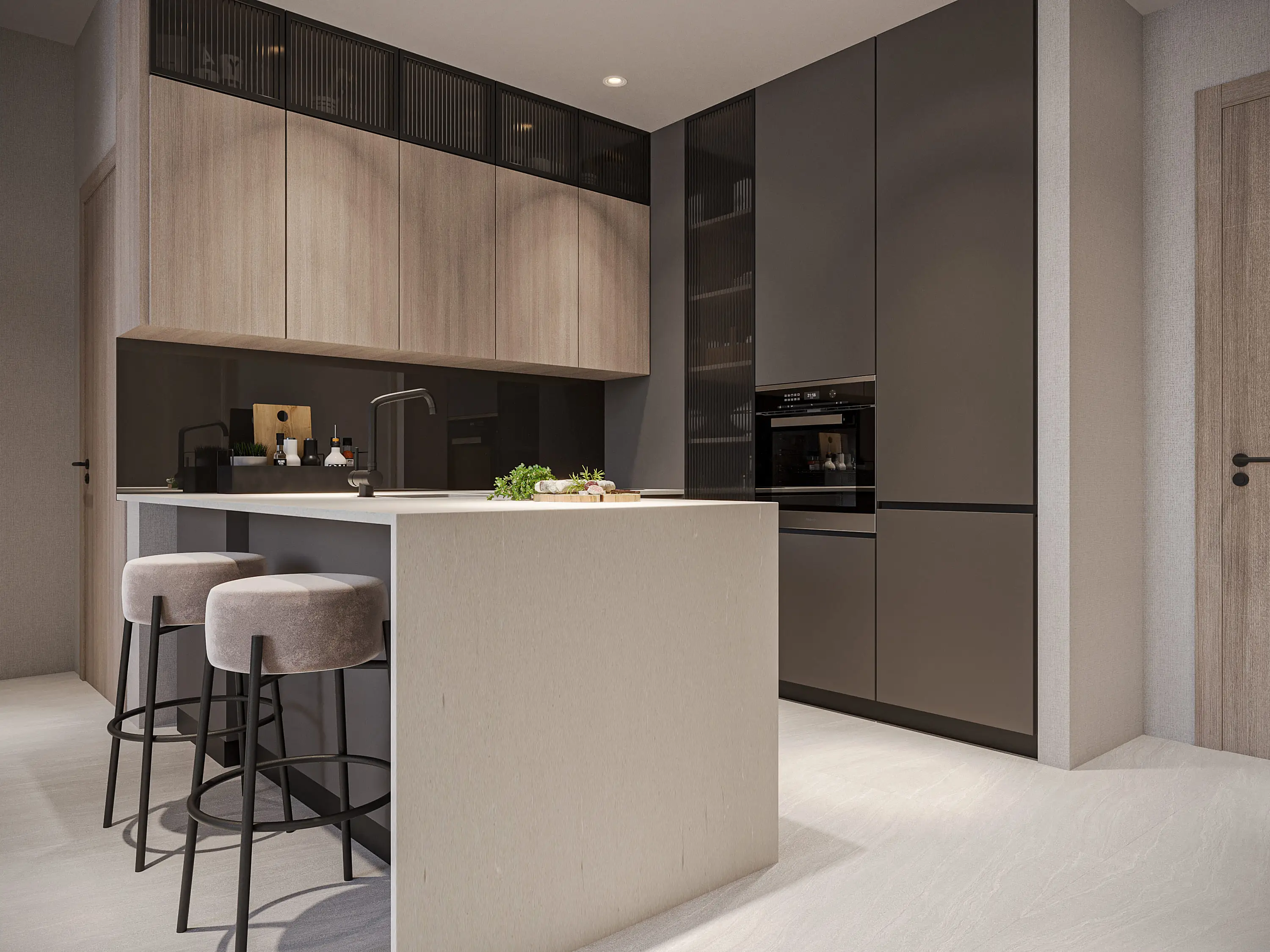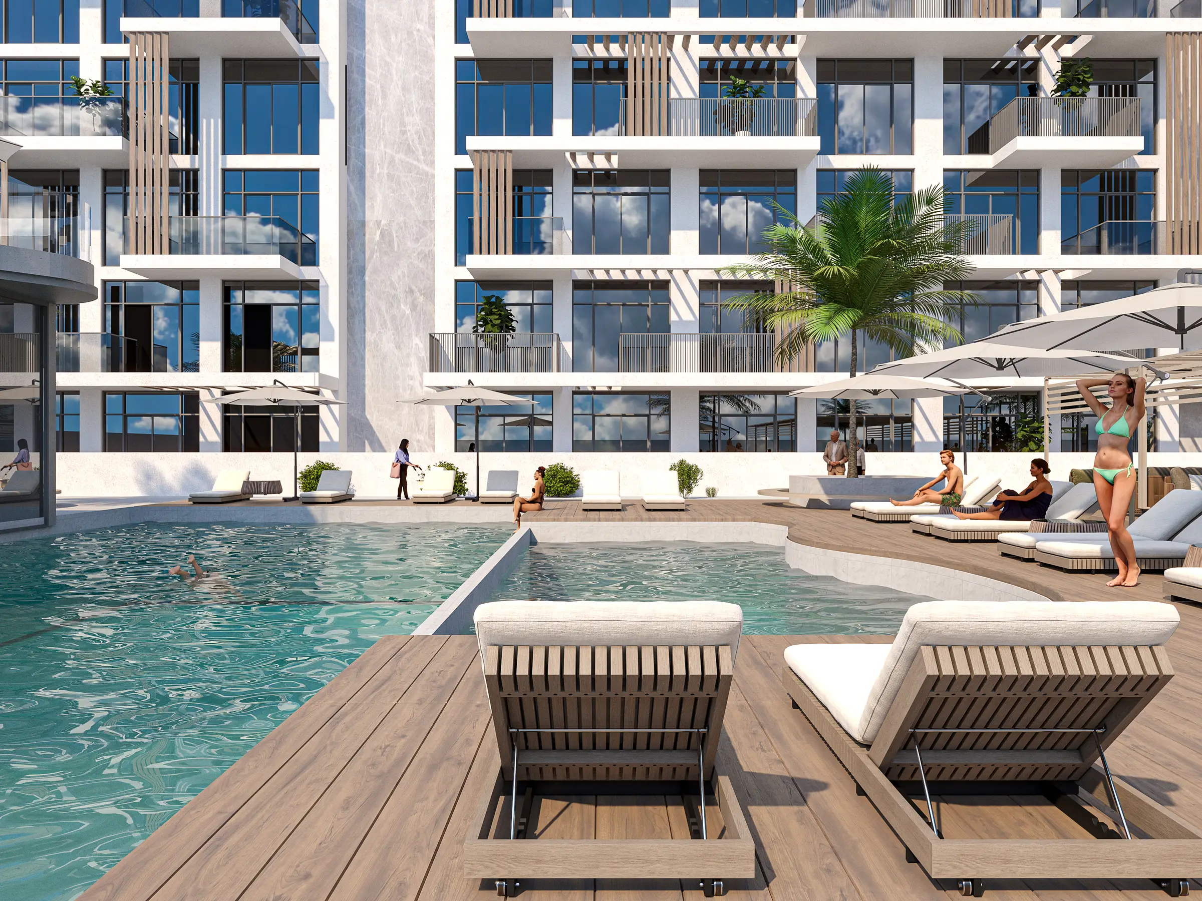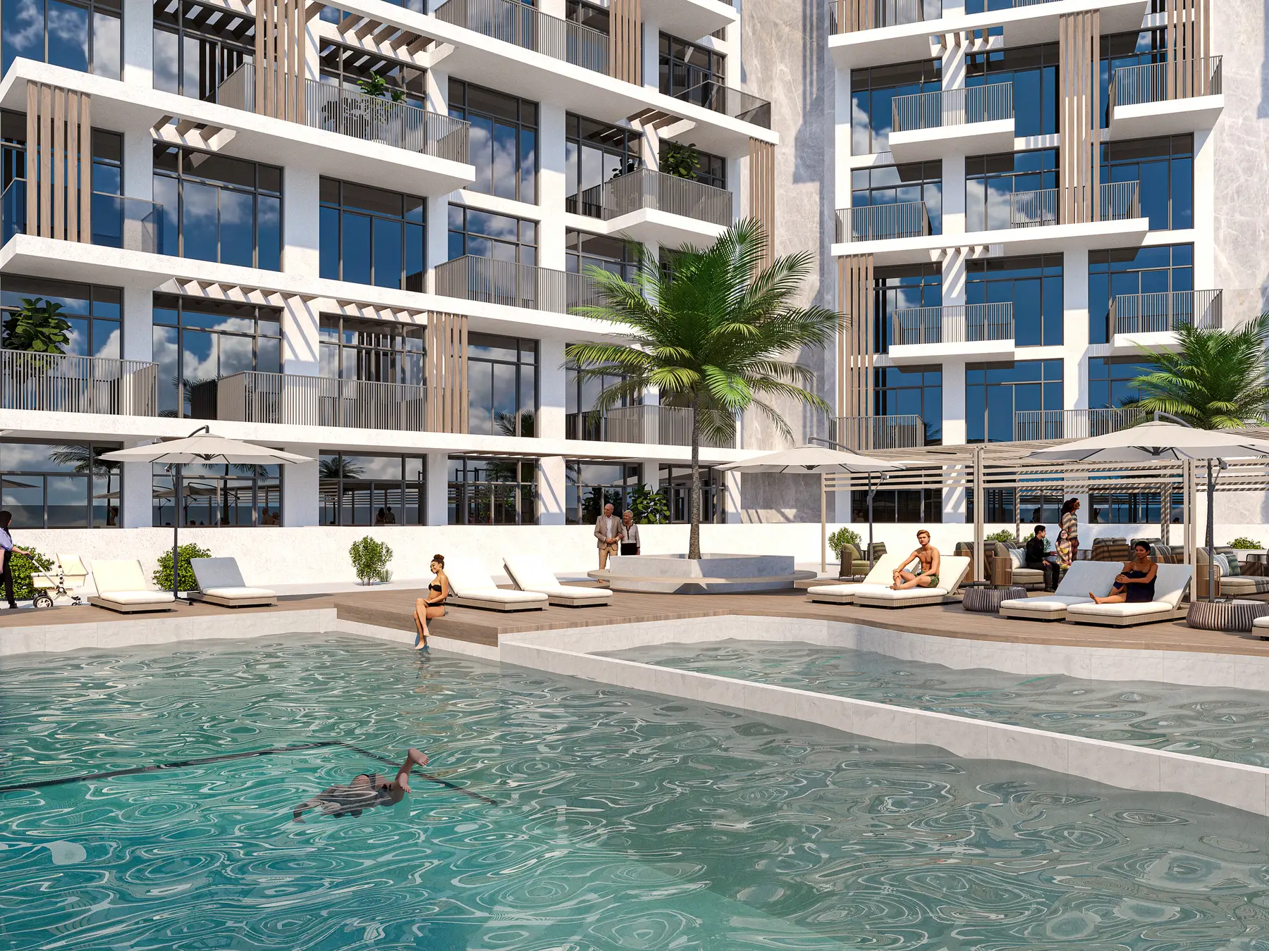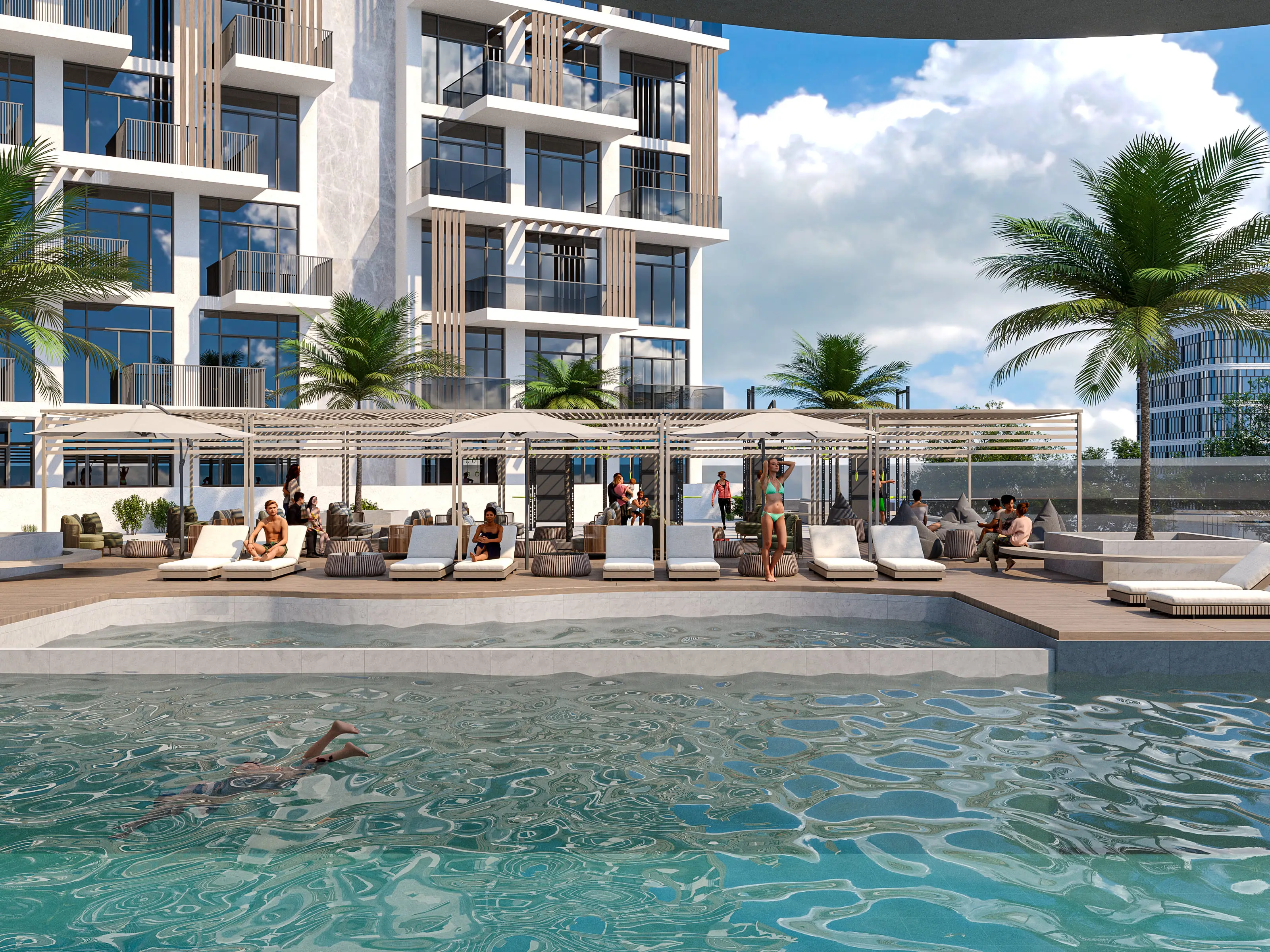 Residents of Serene Gardens can enjoy a wide range of world-class amenities. There is a fully equipped gym and a large infinity pool on the podium with uninterrupted city views. For children, there are playgrounds and a small pool. The complex also features landscaped gardens with seating areas, walking and jogging paths, and barbecue spaces.