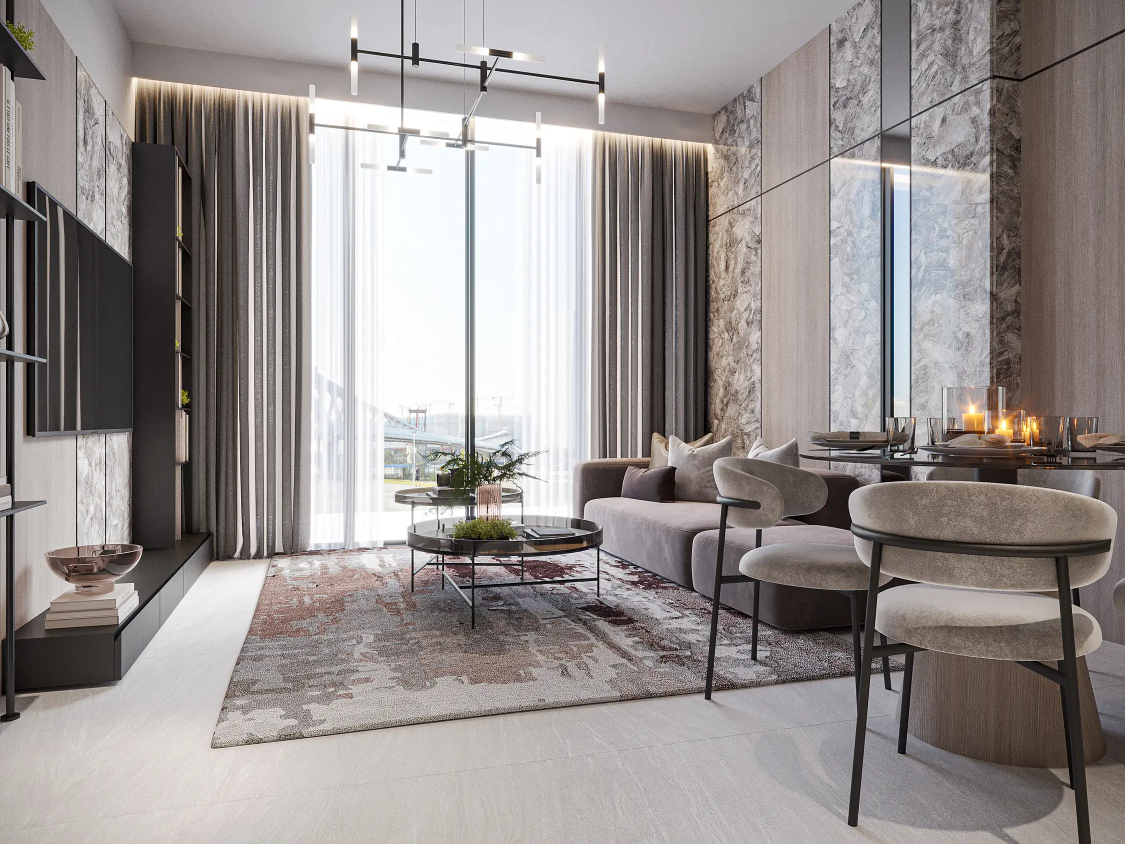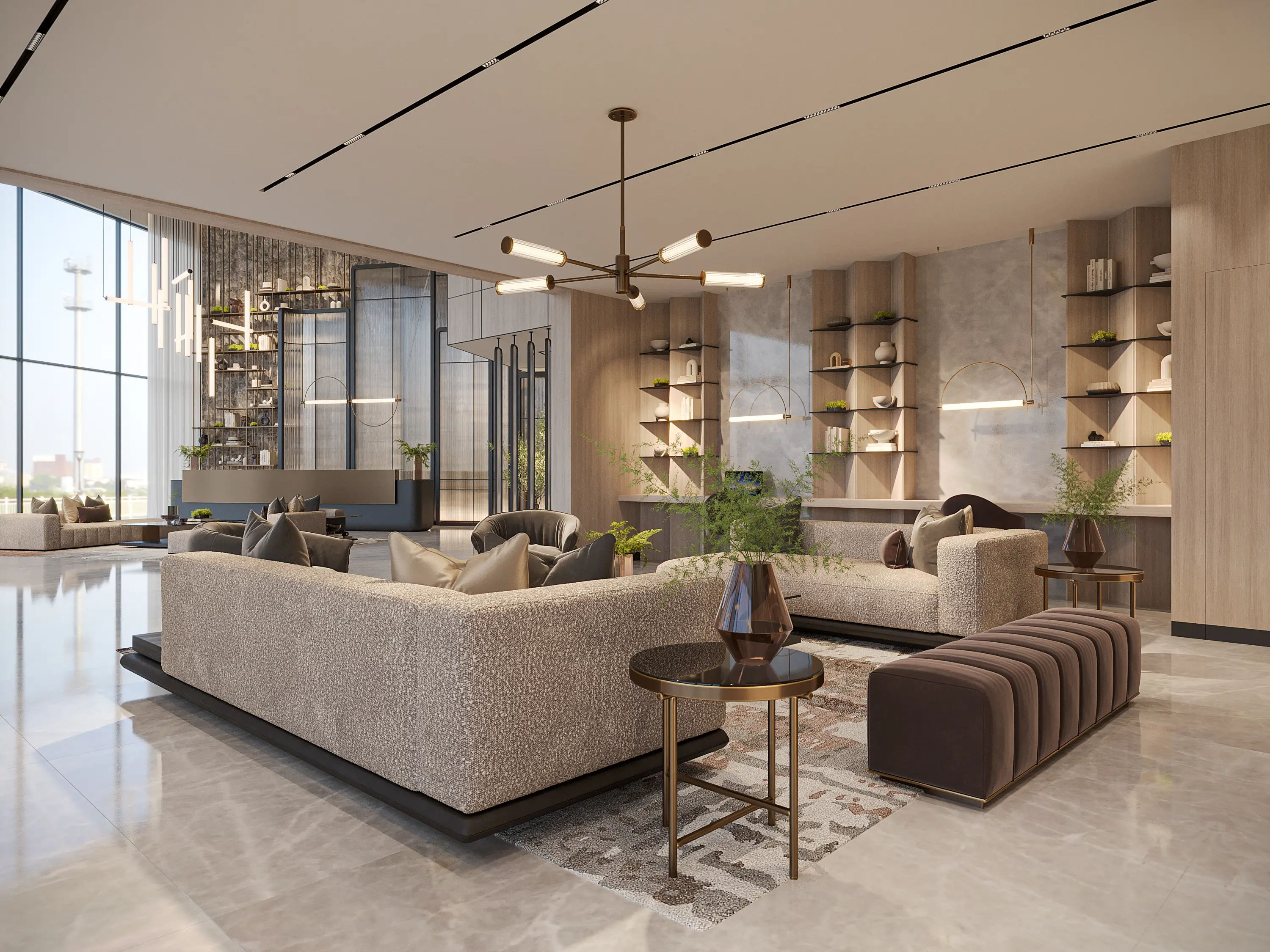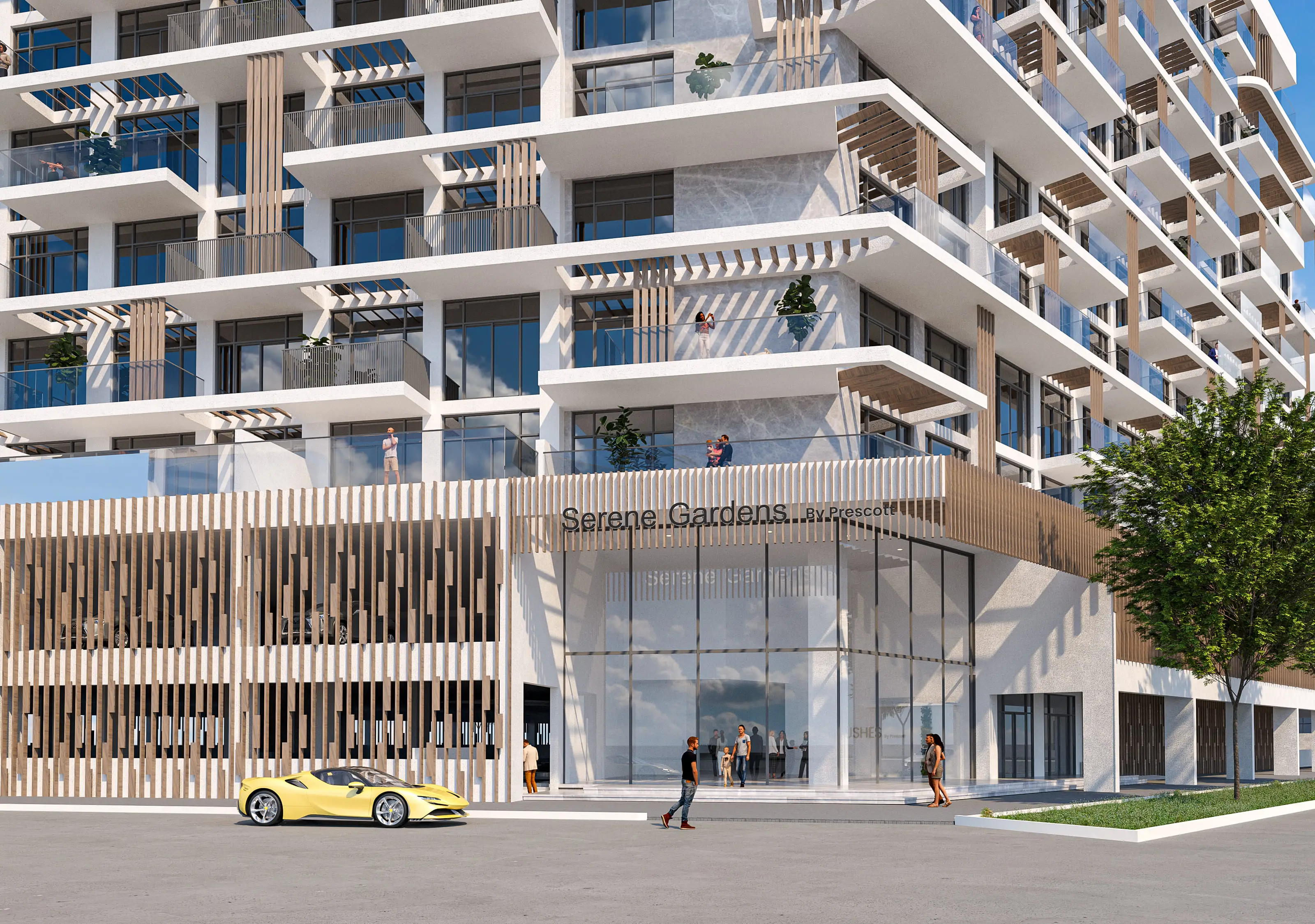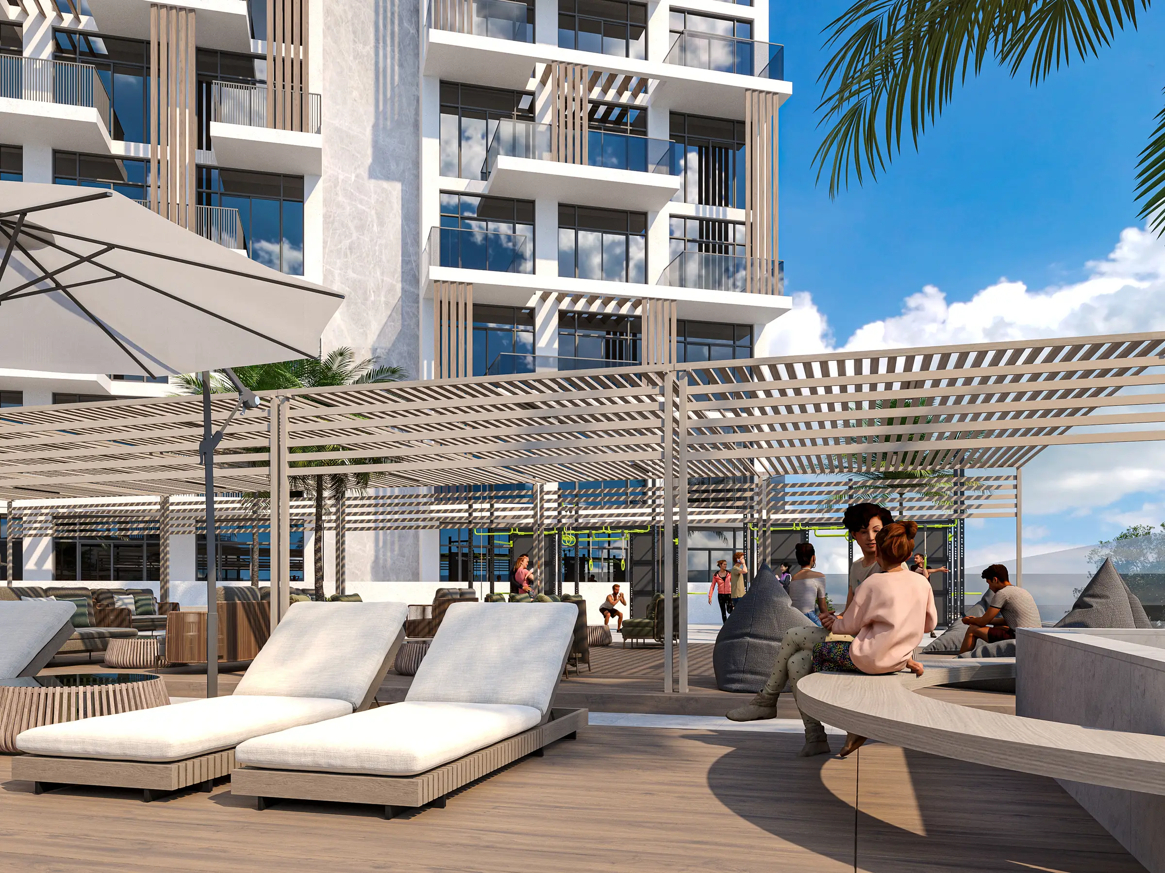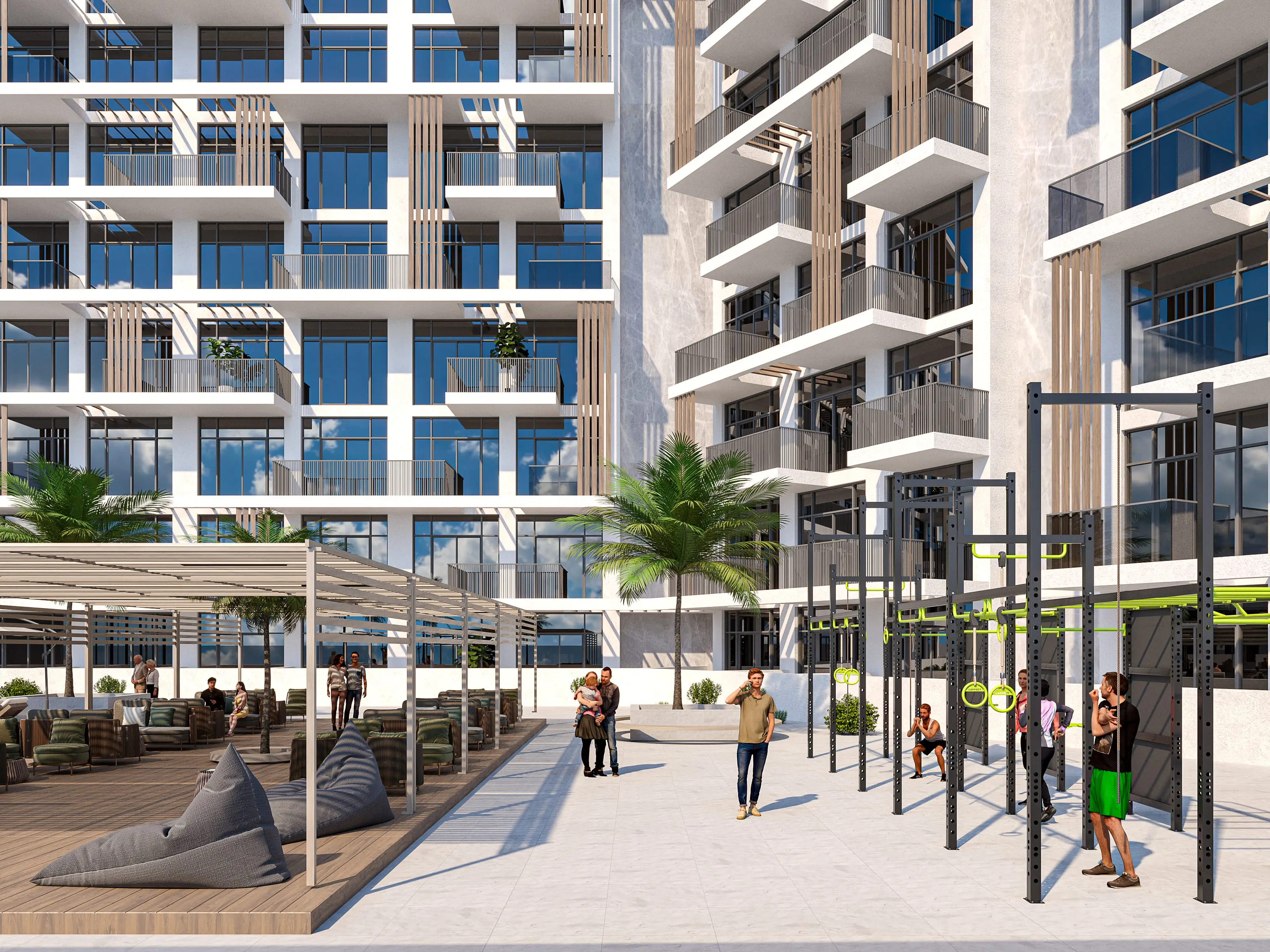 Shared gym Serene Gardens is a premium project by Golden Bridge, with Prescott as the developer. The complex includes a ground floor, two podium floors, and 10 residential floors, located in Al Furjan, near Discovery Gardens Metro Station. The refined architecture is expressed through simple geometry, perfectly combining aesthetics and functionality. The project offers luxurious one- and two-bedroom apartments with contemporary interiors in soft tones and glossy marble flooring.