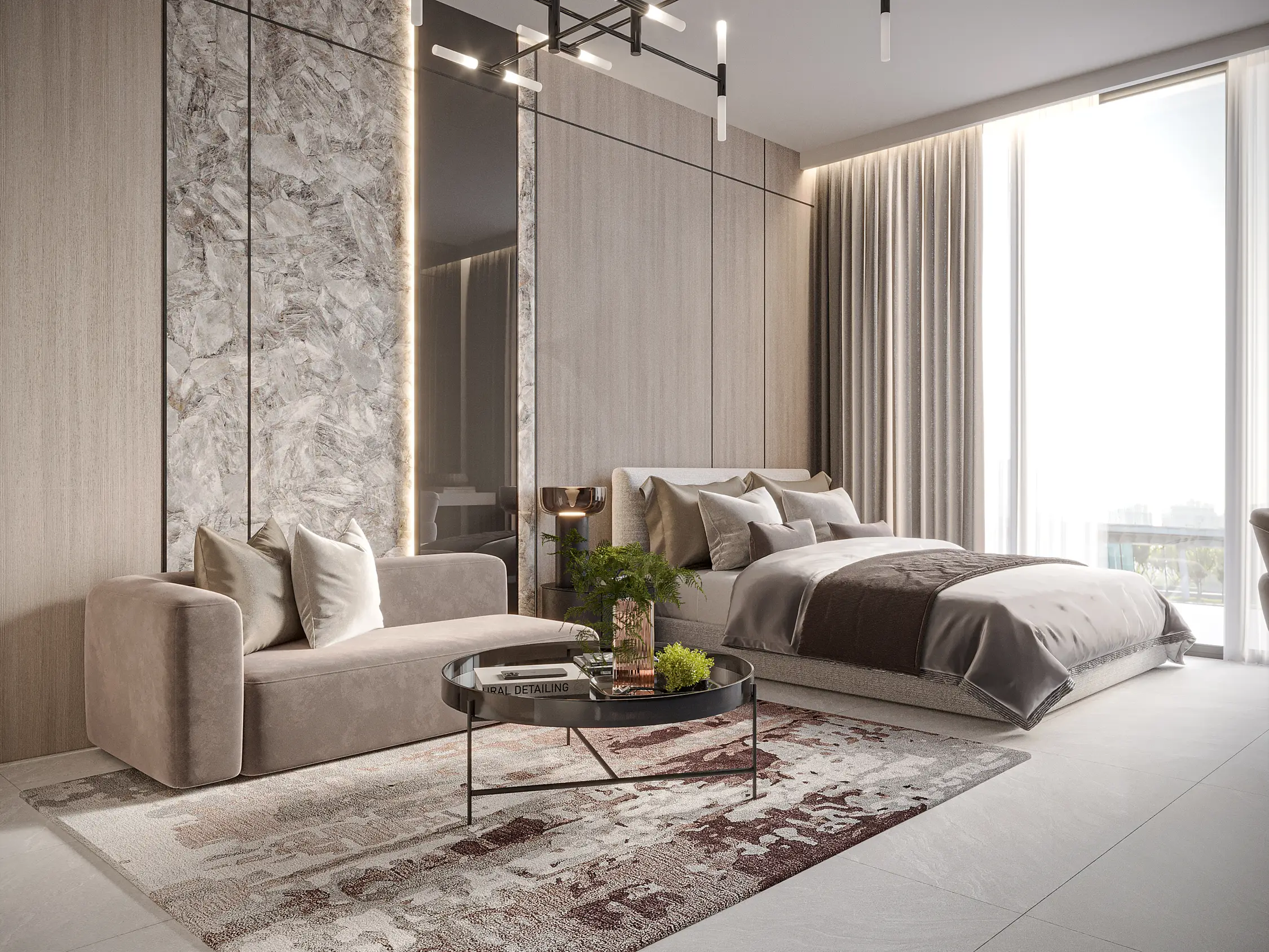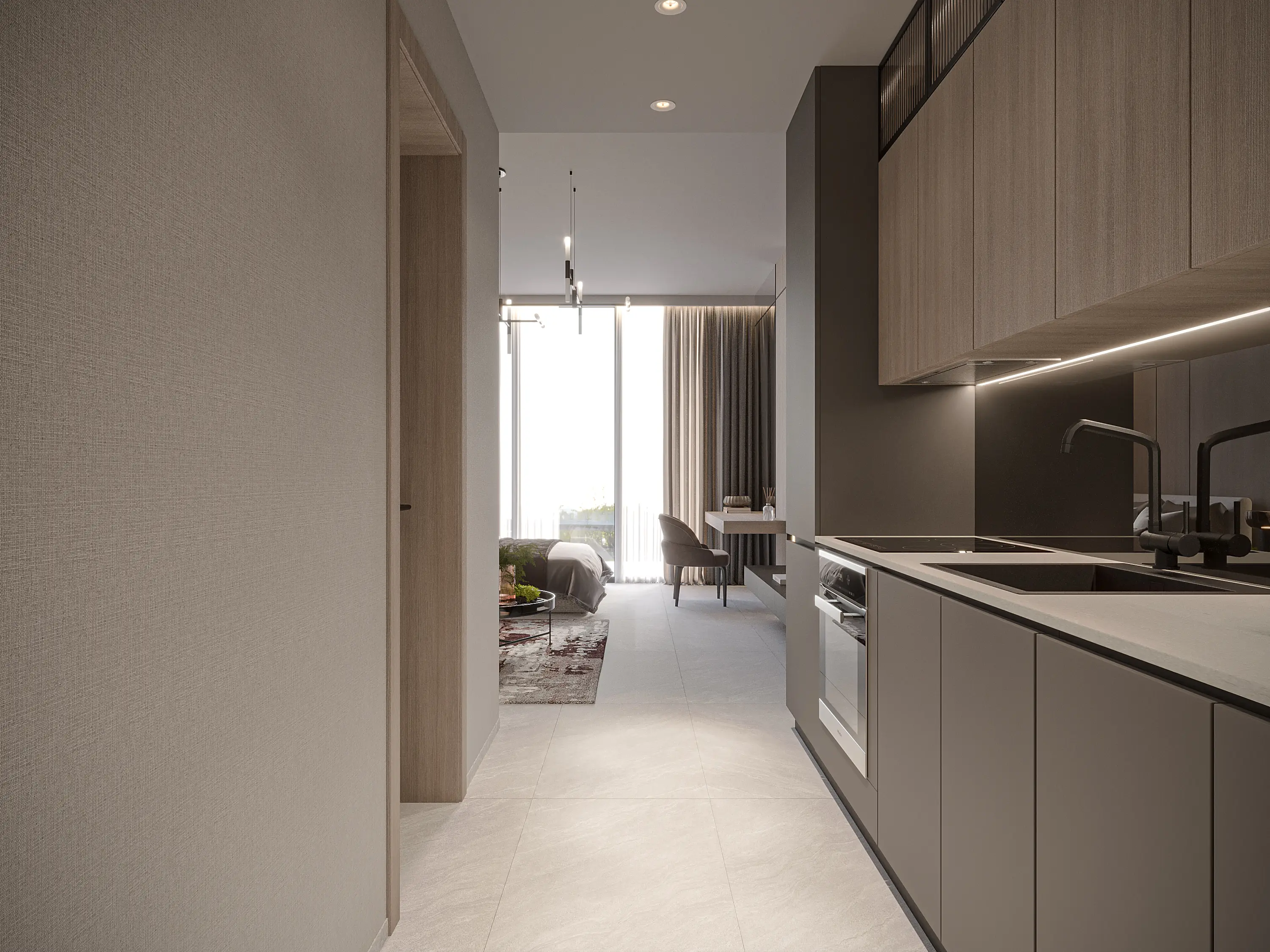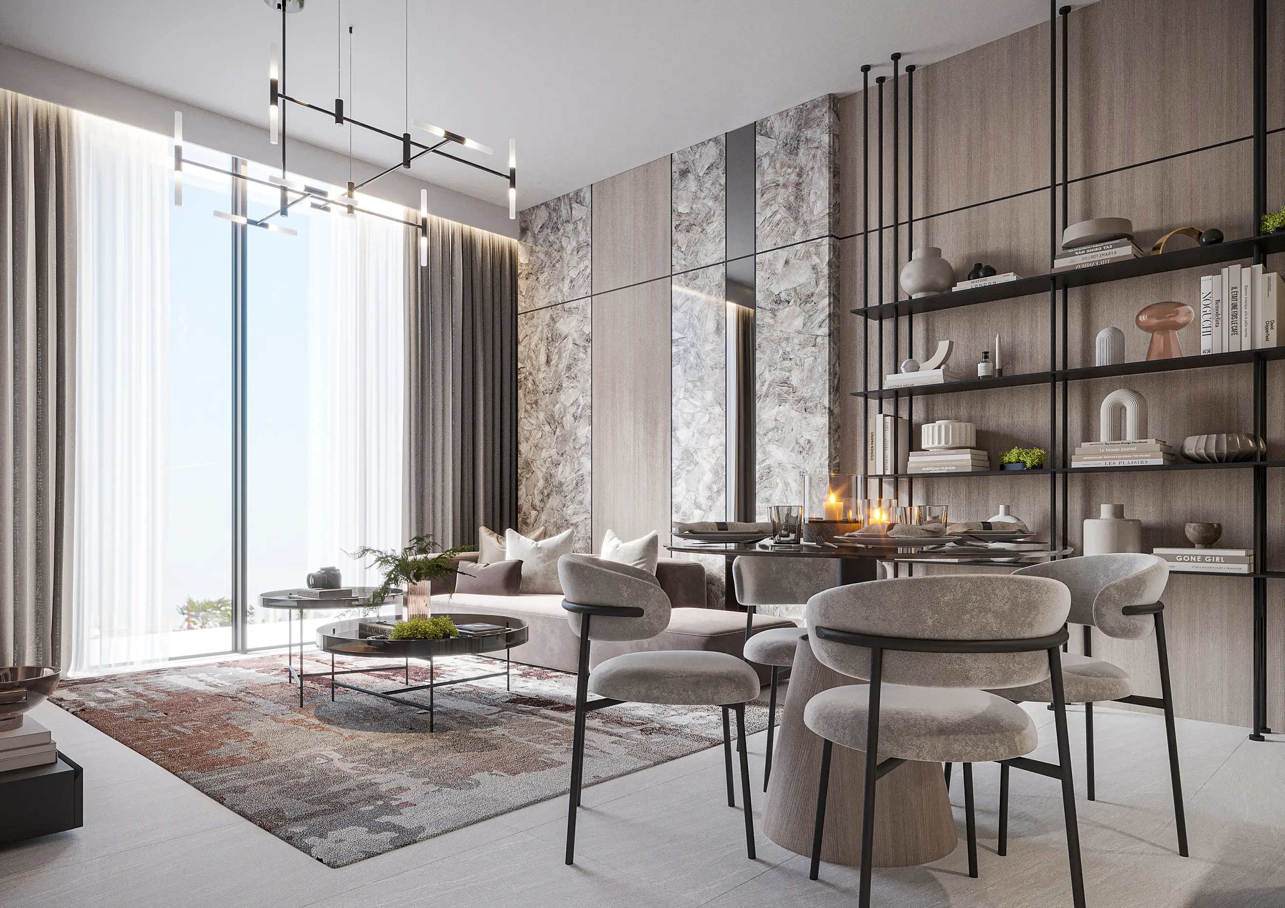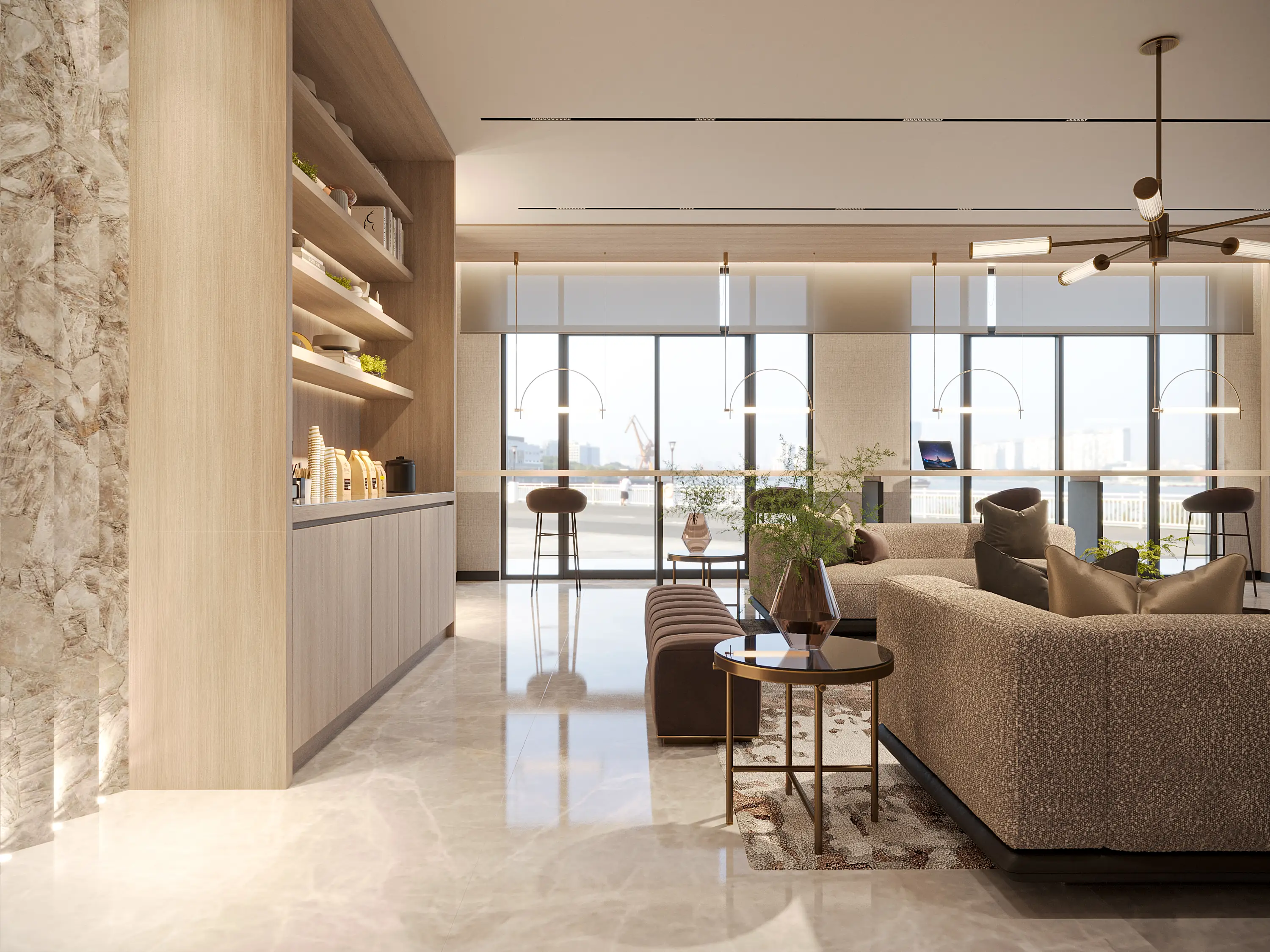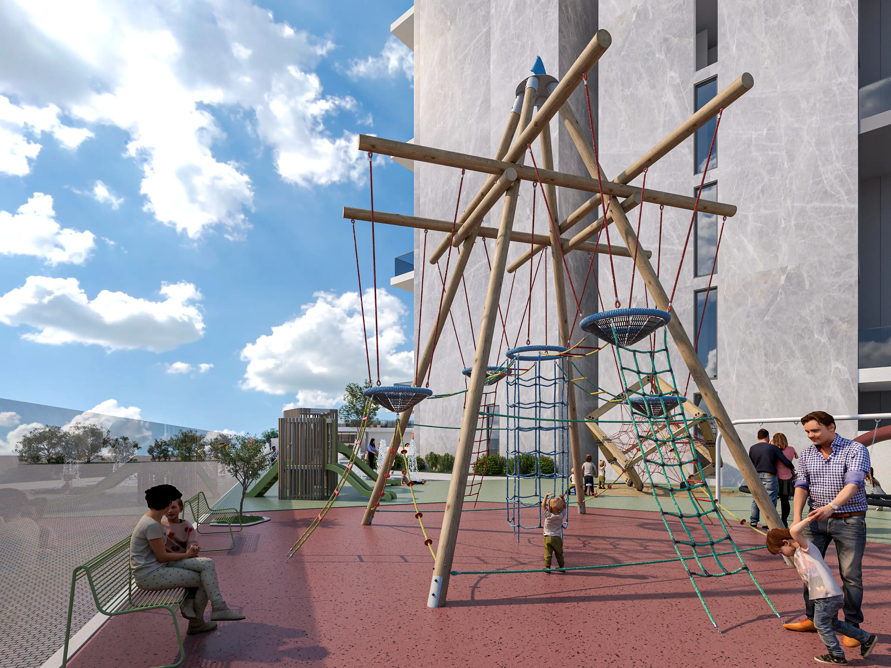 Shared gym Serene Gardens is a premium project by Golden Bridge, with Prescott as the developer. The complex includes a ground floor, two podium floors, and 10 residential floors, located in Al Furjan, near Discovery Gardens Metro Station. The refined architecture is expressed through simple geometry, perfectly combining aesthetics and functionality. The project offers luxurious one- and two-bedroom apartments with contemporary interiors in soft tones and glossy marble flooring.