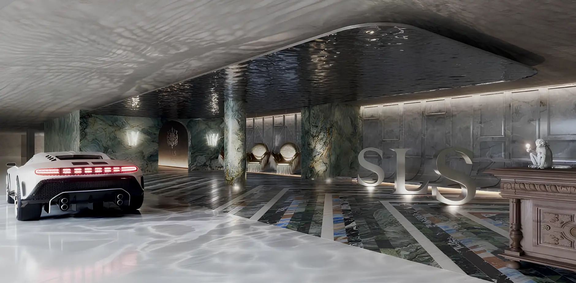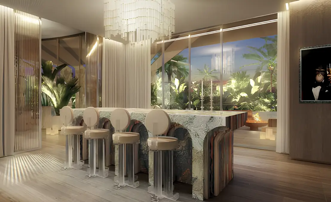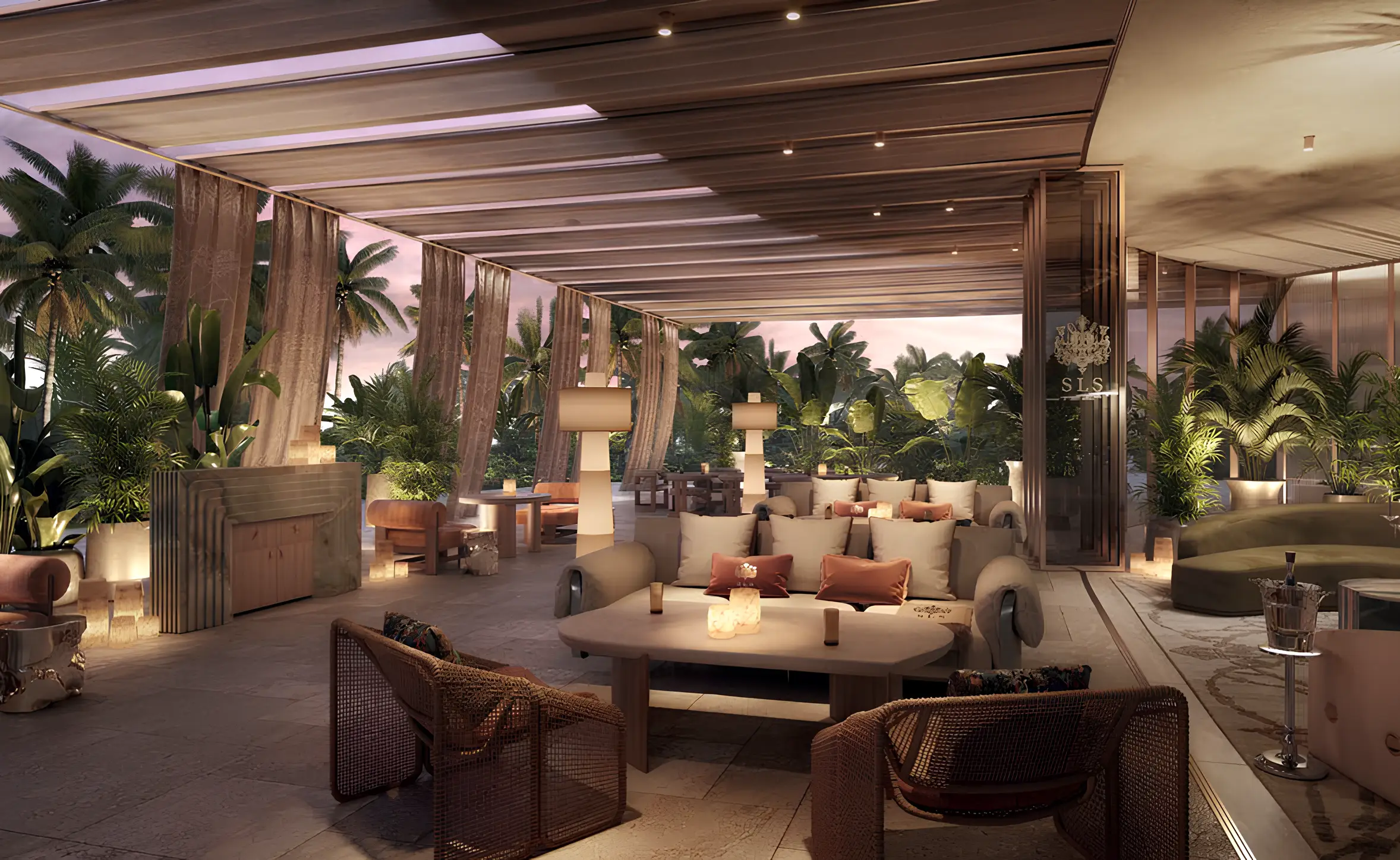 Yoga studio SLS Residences at The Palm Jumeirah is a luxury residential complex located on Palm Jumeirah Island, the most prestigious location in Dubai. The project is by developer ROYA Developments and is presented by the Evolutions agency.