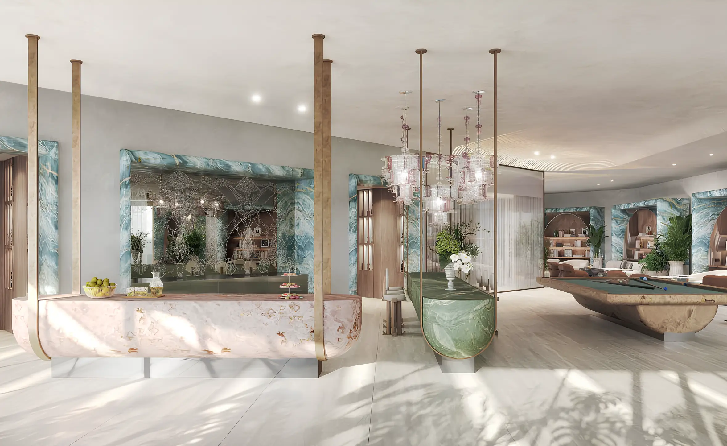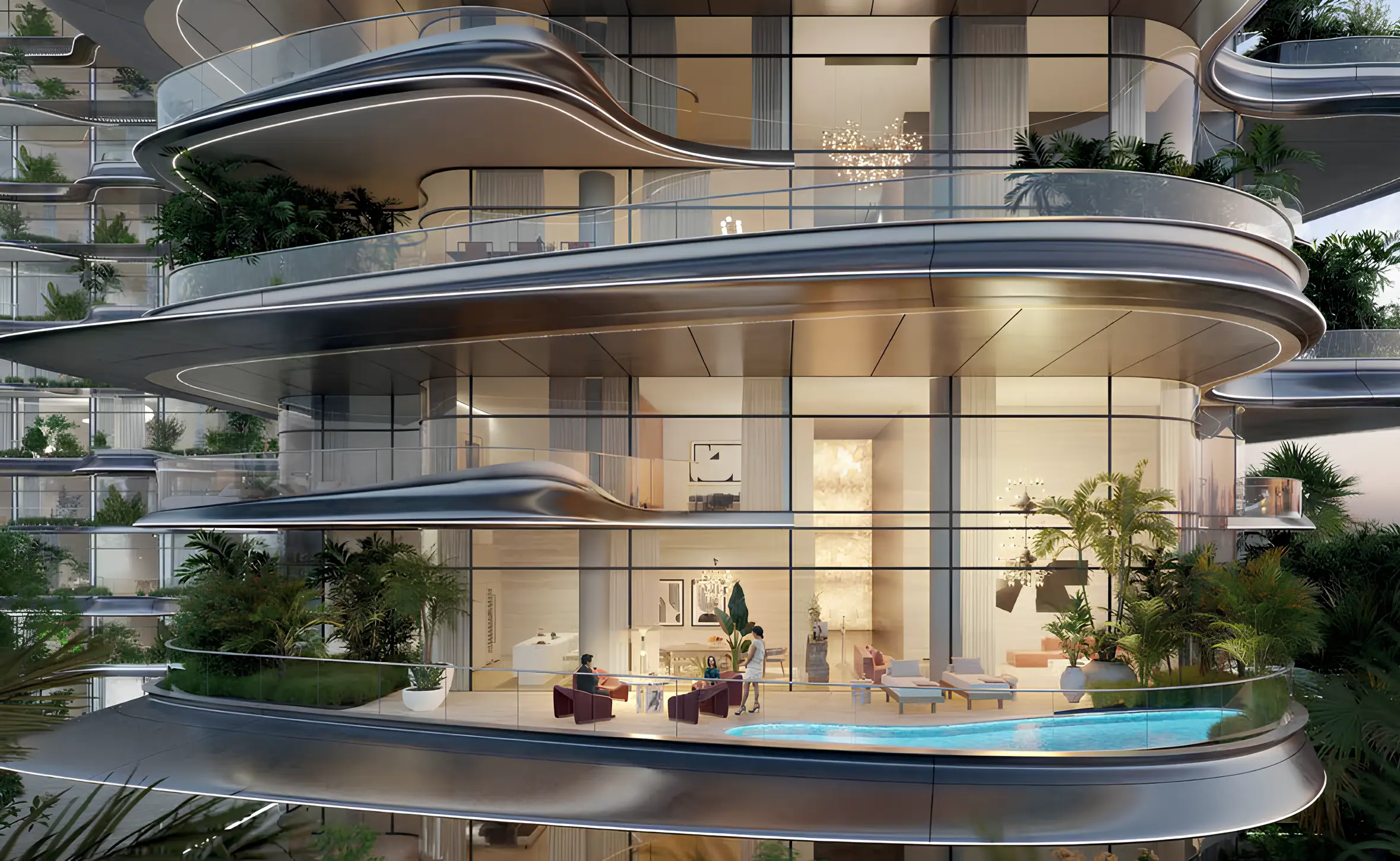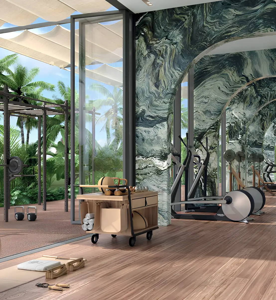 Yoga studio SLS Residences at The Palm Jumeirah is a luxury residential complex located on Palm Jumeirah Island, the most prestigious location in Dubai. The project is by developer ROYA Developments and is presented by the Evolutions agency.