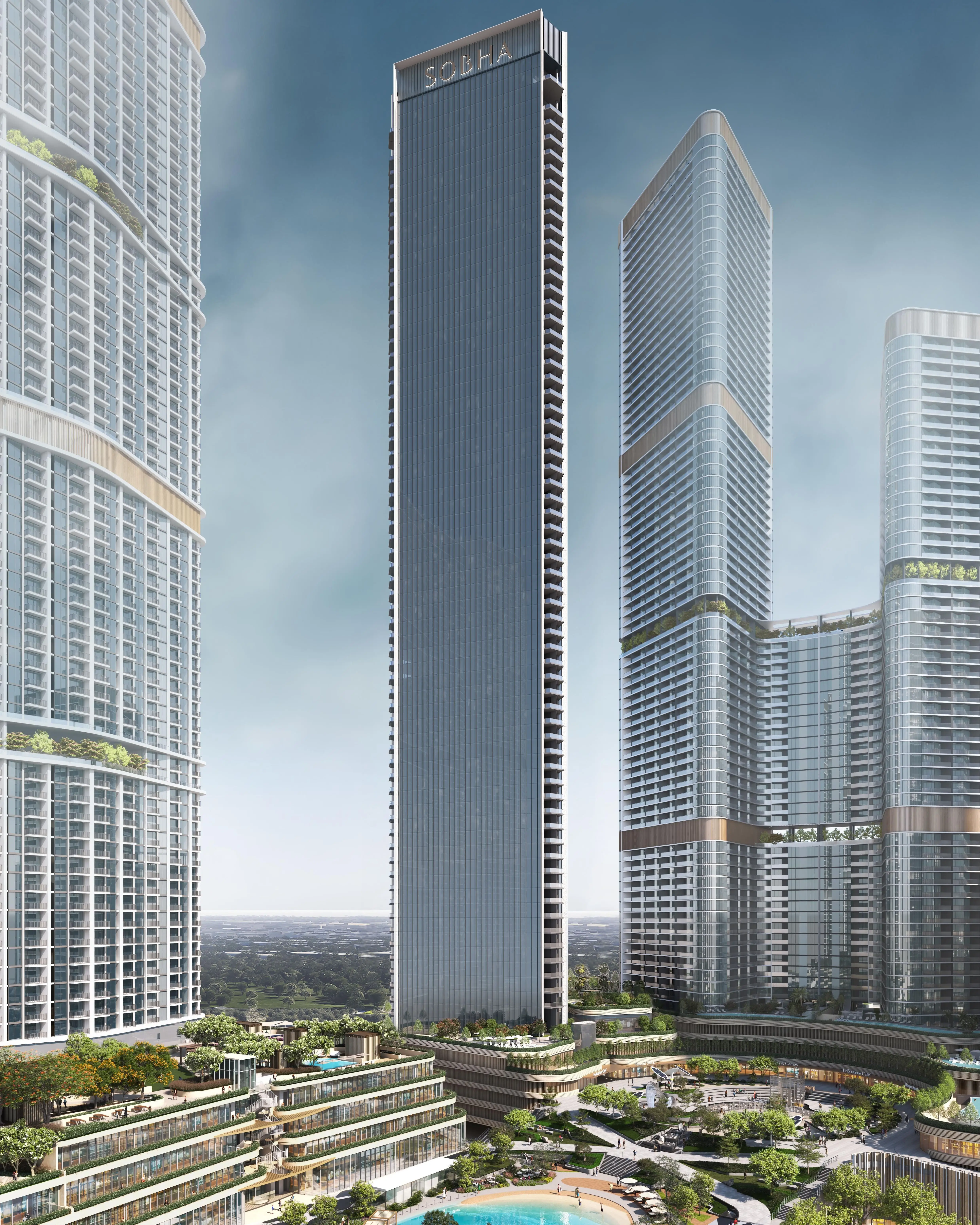 Shared Pool The S Tower is a flagship project by Sobha Realty, located in Dubai Internet City. The tower features two basement levels, a ground floor, six podium levels, and forty-nine residential levels.