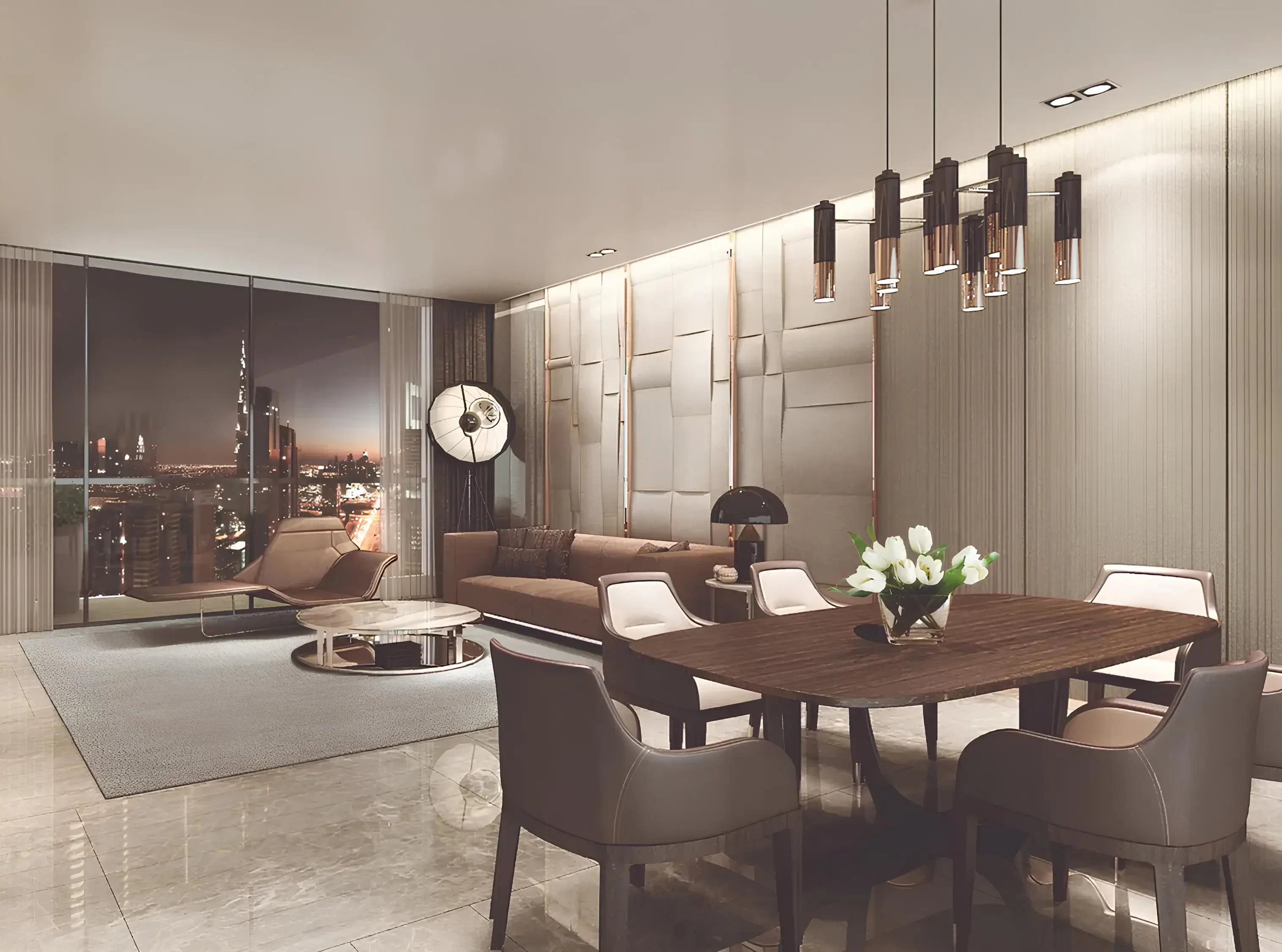 Residents of the complex have access to an array of world-class amenities and communal areas. Within the complex, there is a fully equipped fitness center, a luxurious spa, a rooftop swimming pool with city views, walking trails, manicured gardens, and much more. Residents can also enjoy breathtaking city views from panoramic windows or simply relax on spacious terraces.