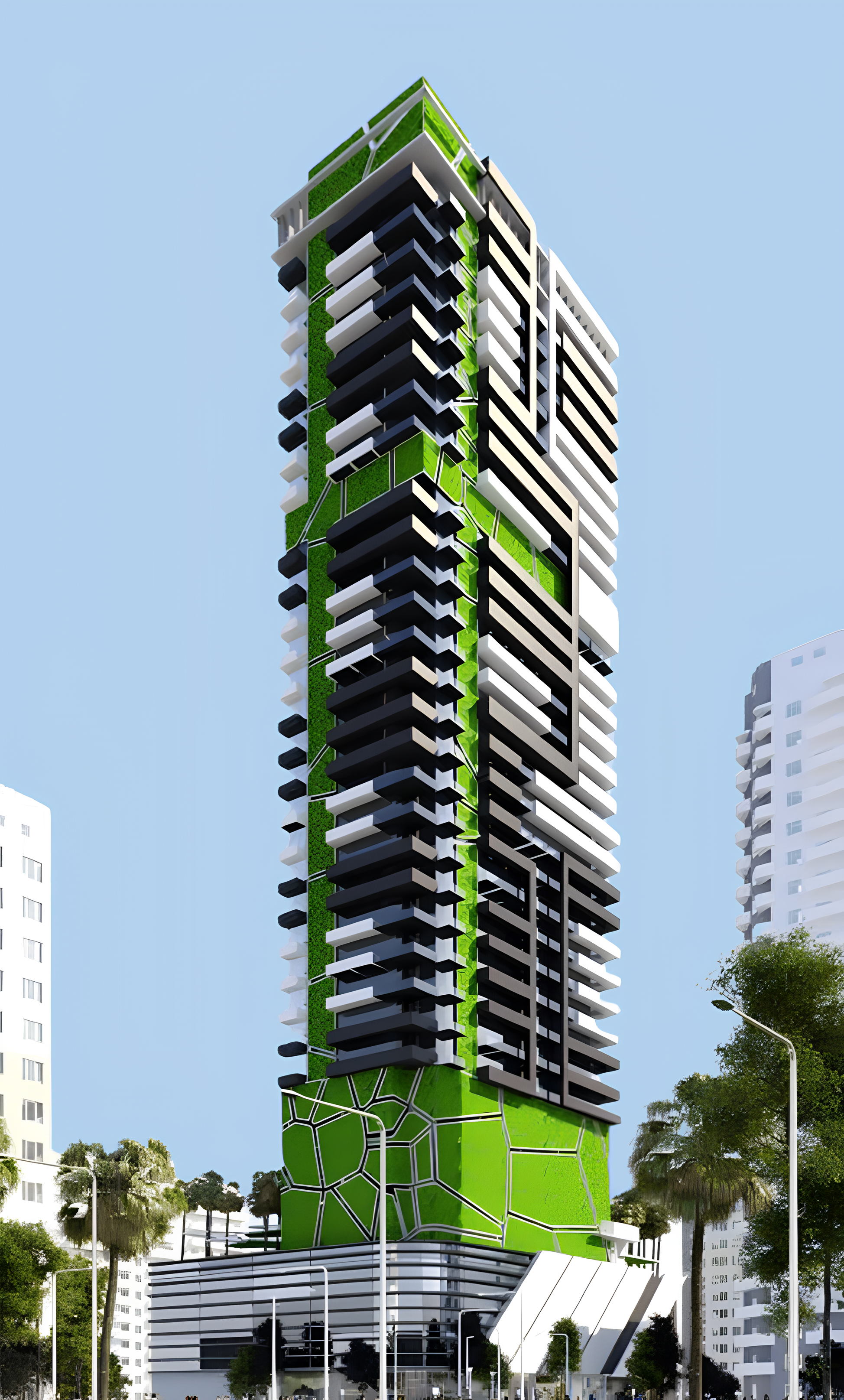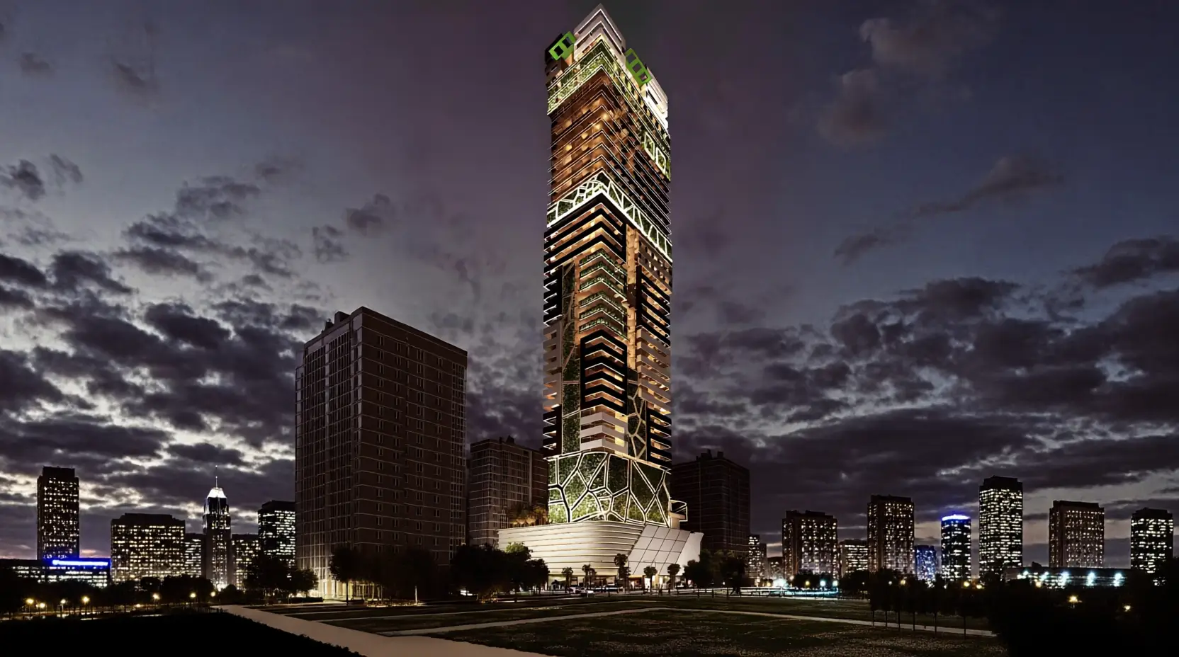 Yoga Area Tranquil Wellness Residences is a wellness hotel complex from the developer Urban Wellness, located in the heart of the JVT district, in Dubai. The building consists of a technical floor, a ground floor, a four-level podium, thirty-three residential floors and a roof.