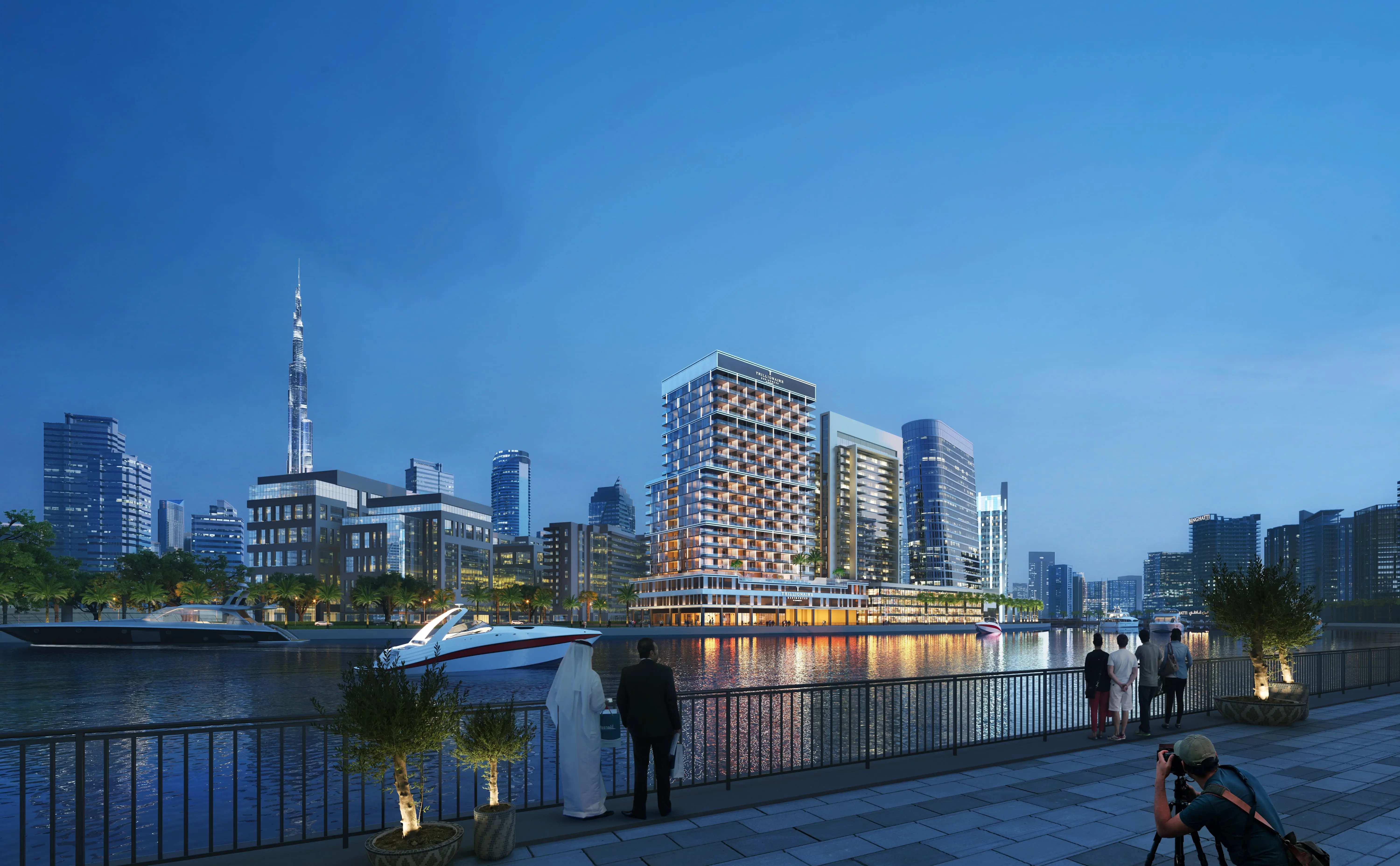 The project's property types include elegant studios, luxury one-, two-, and three-bedroom apartments, and several commercial spaces located on the lower floors of the building. All residences feature functional layouts and premium finishes. They offer picturesque views of the Dubai Canal and the cityscape.
