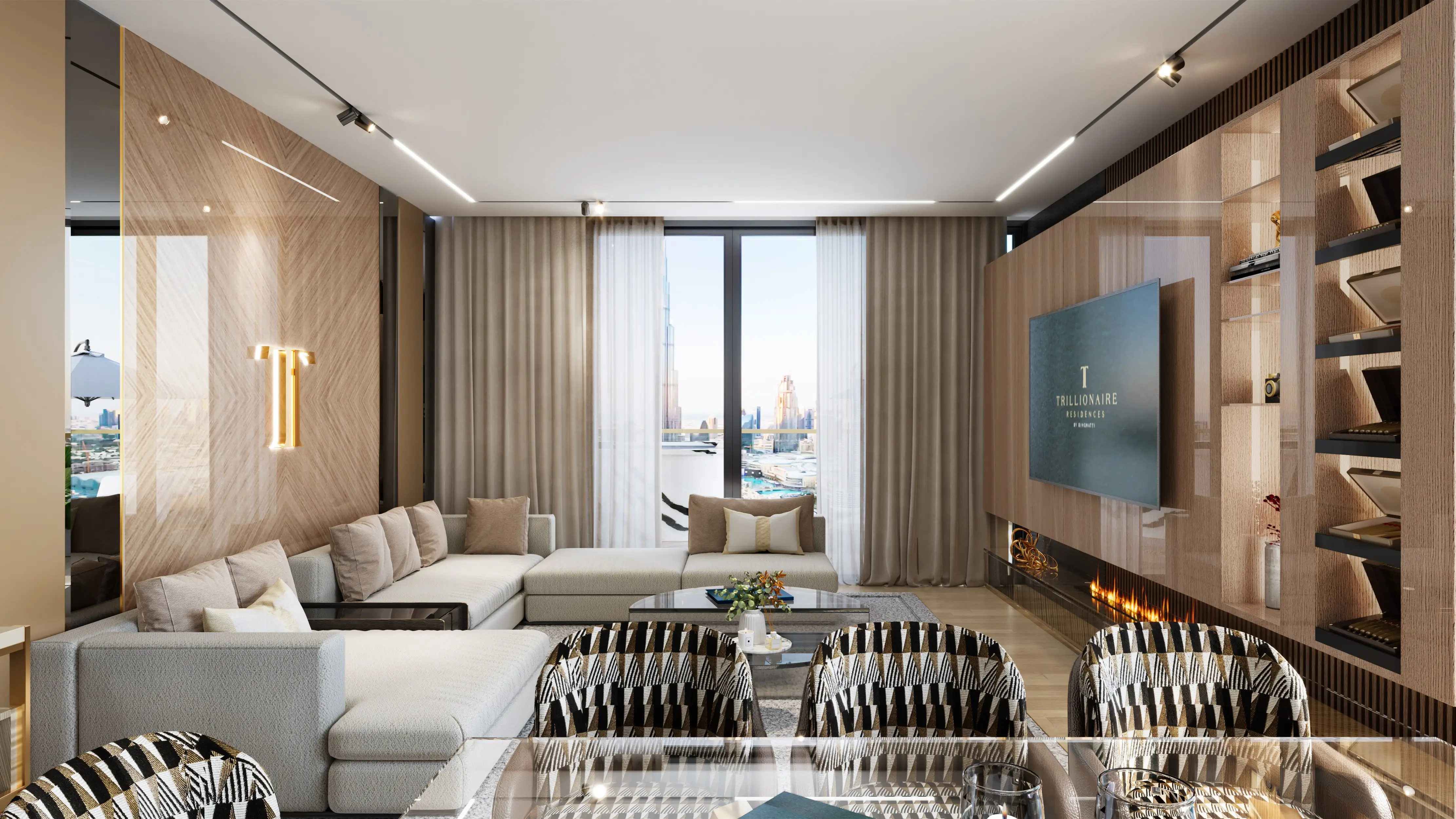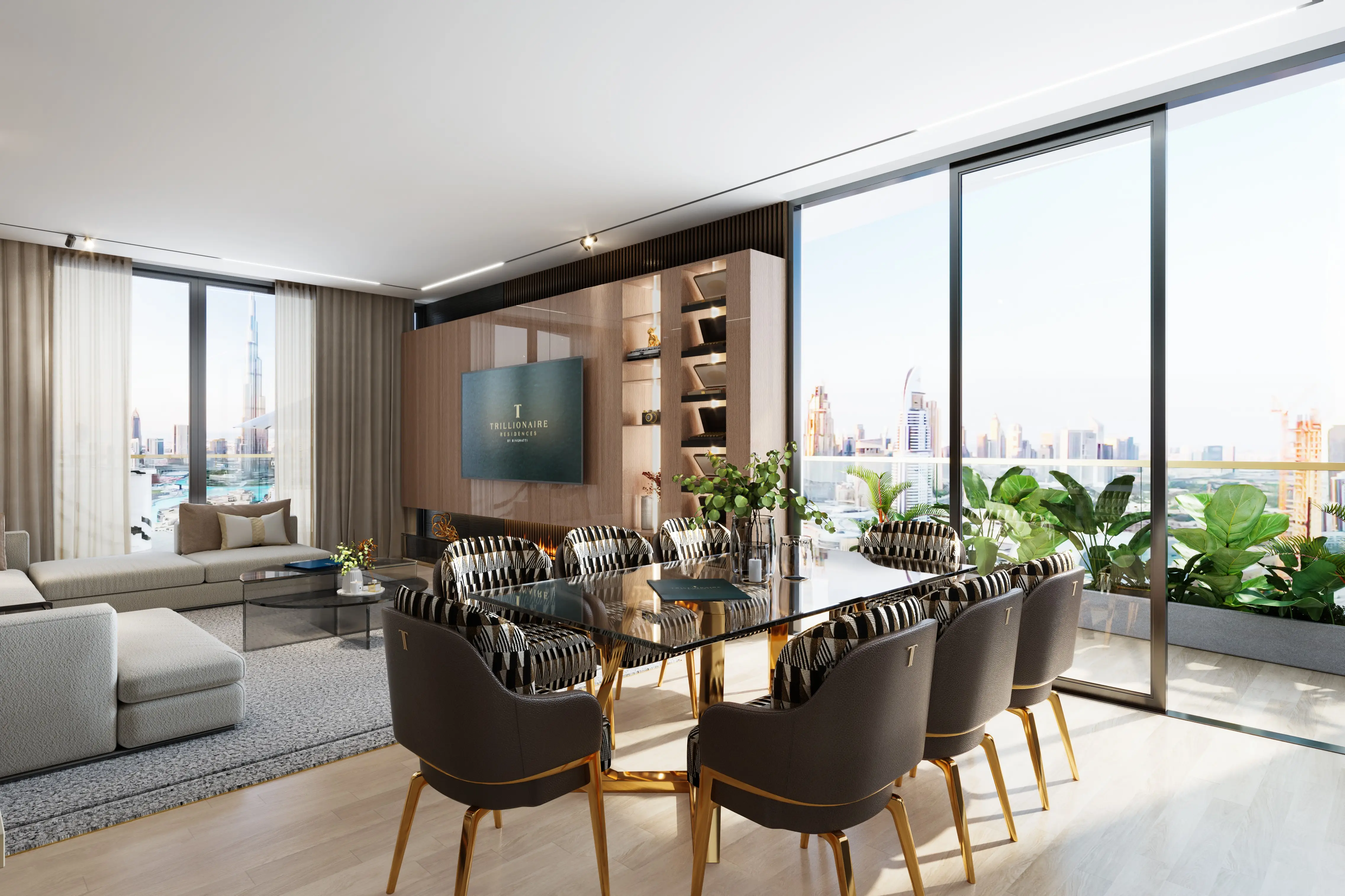 Shared gym & fitness Trillionaire Residences is a magnificent luxury project developed by Binghatti in the Business Bay area. This residential complex comprises two basement levels, a ground floor, three podiums, nineteen residential floors, and a roof. The tower stands out with its amazing glass facades and clean lines while blending perfectly into the surrounding landscape.