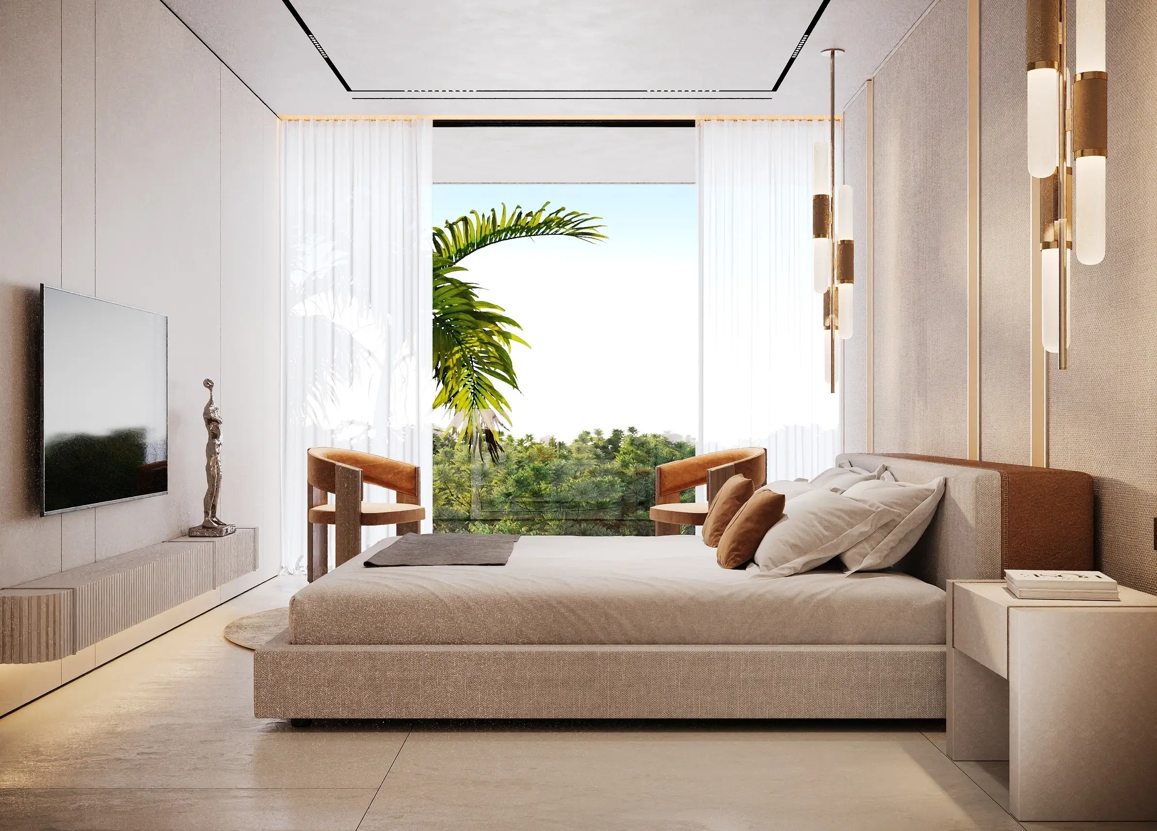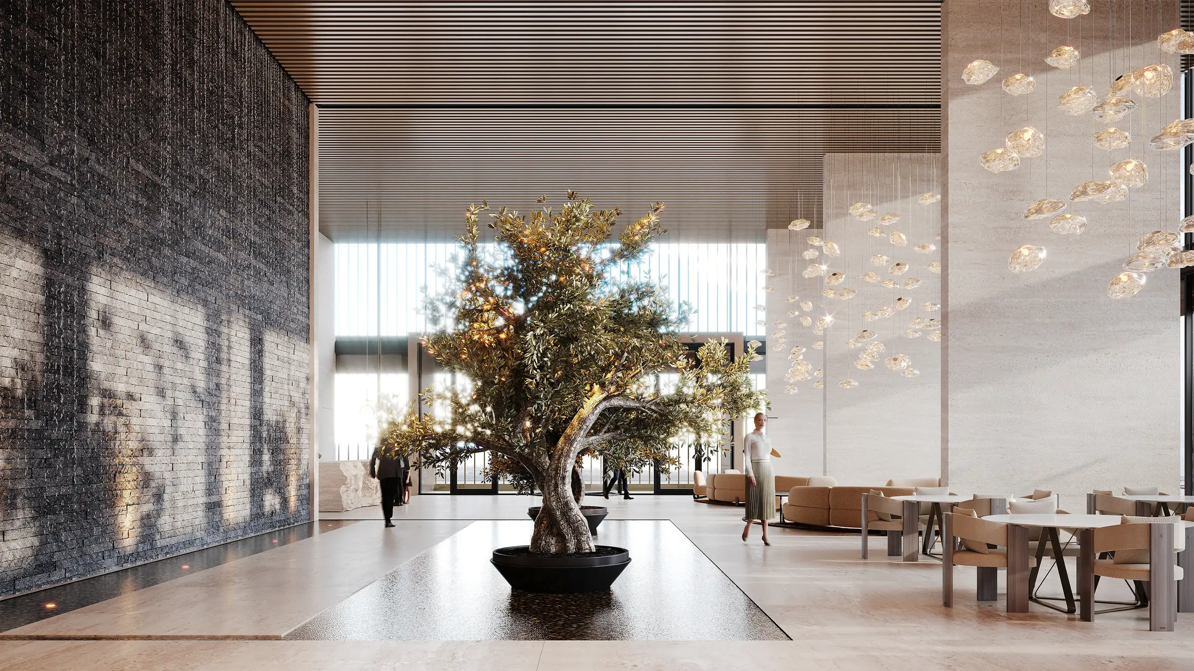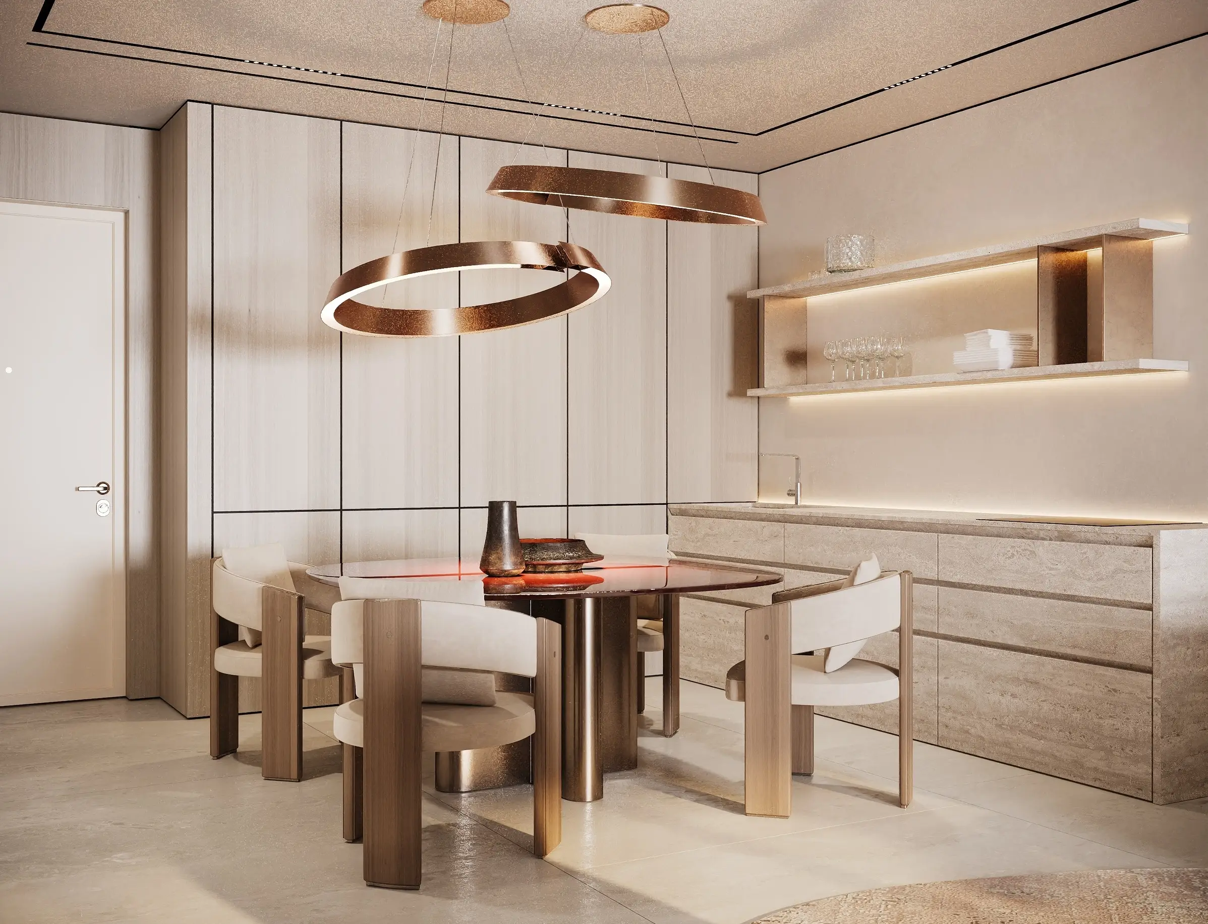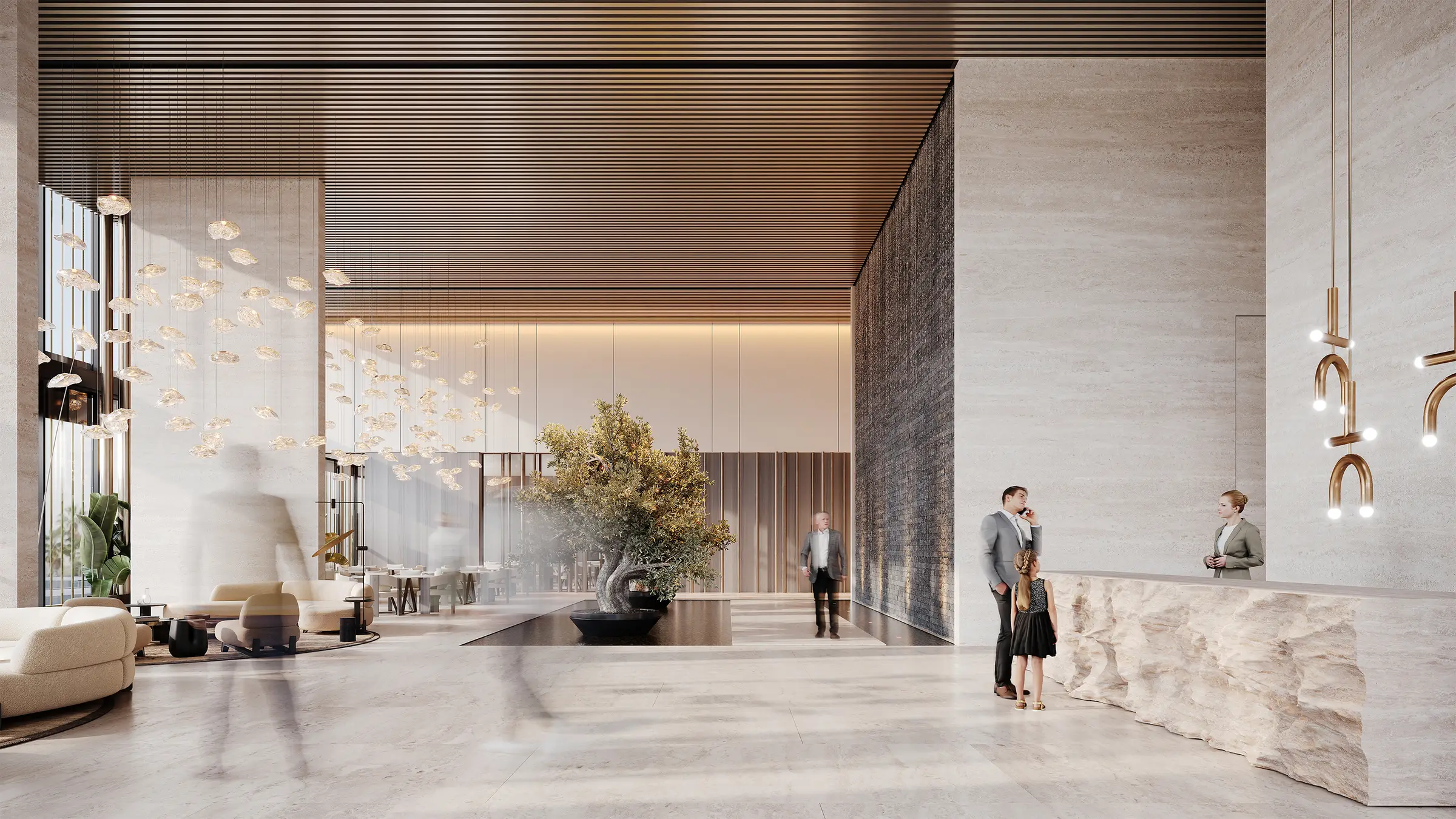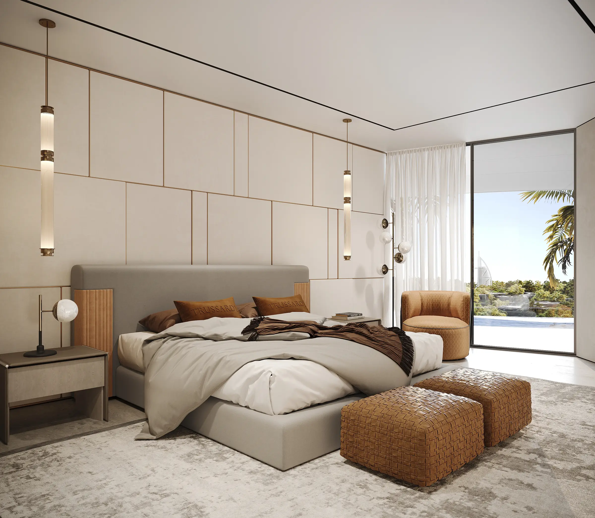 Yoga studio Trussardi Residences Phase 1 - the first phase of luxury complex which is created in collaboration with world-famous Italian fashion home. The complex, located in the Al Furjan area, consists of an basement level, a ground floor, a three-level podium, 11 residential floors and a roof. For purchase offers fully furnished exclusive apartments with 1-3 bedrooms. Some 2-3-bedroom residences have storage rooms, staff quarters, a private pool on the terrace. All apartments are presented with interiors in a neutral palette and furniture from an iconic brand, as well as equipped with a smart home system.