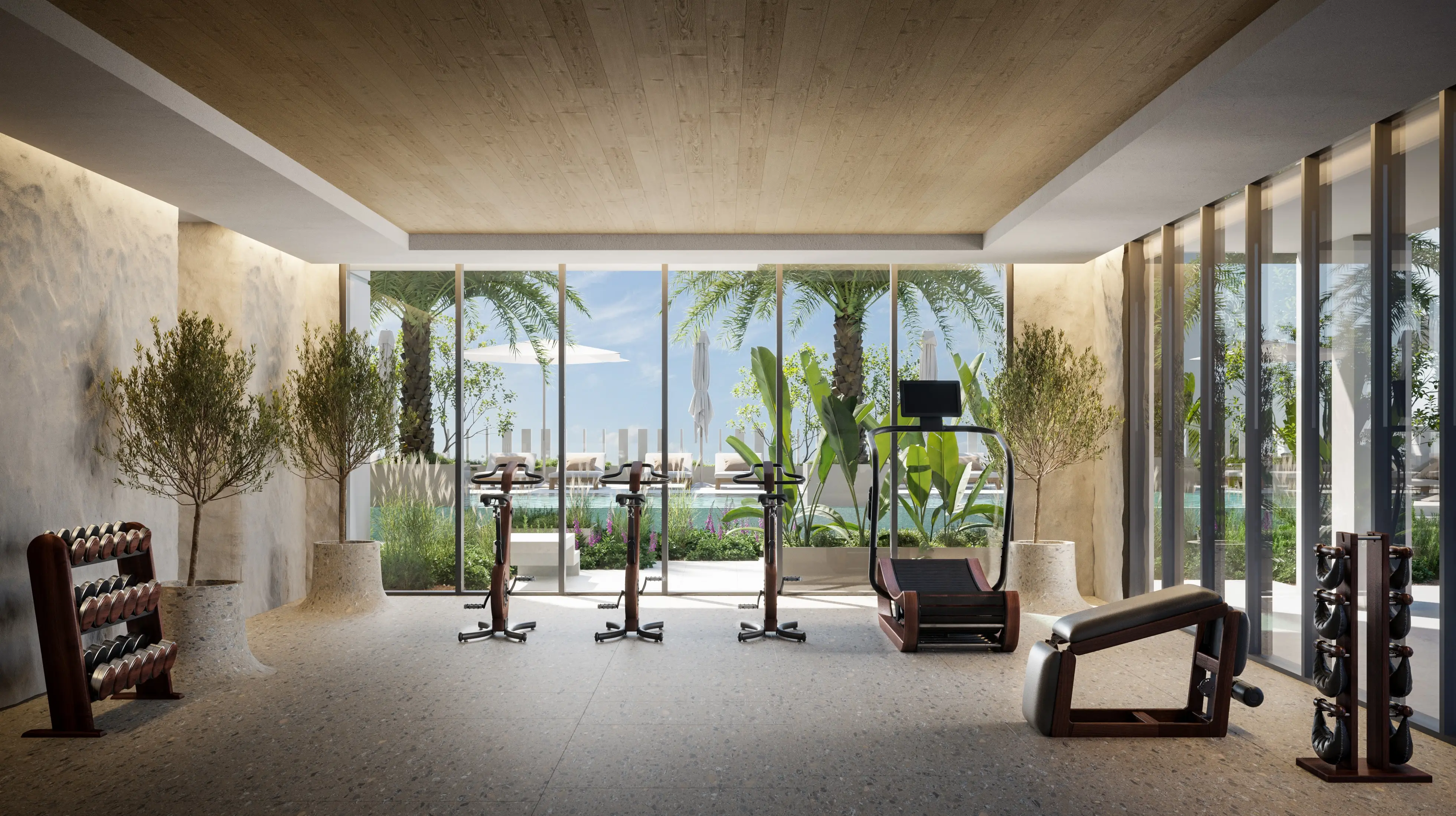 Shared gym & fitness V1TER is a residential complex by Object One Real Estate Development, located in the Jumeirah Village Circle area. The project combines modern architectural design, high-quality materials, and a comfortable living environment. The elegant tower includes three basement levels, a ground floor, three podium levels, twenty-two residential floors, and a roof.