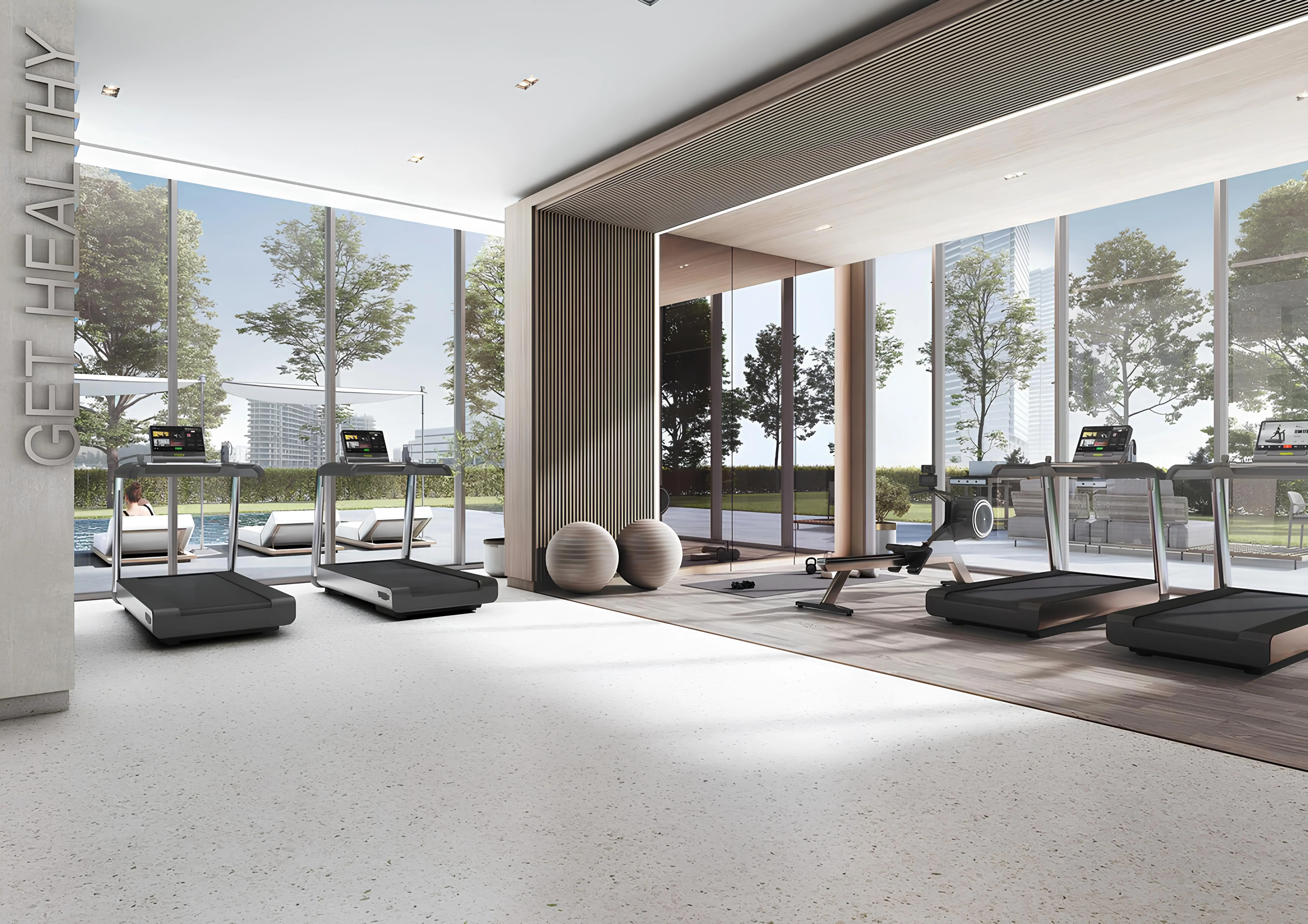 Shared gym & fitness Verde is the tallest building in the JLT district, designed and developed by Sobha Realty. The tower features a ground floor, a seven-level podium, fifty-eight residential floors, and a roof.