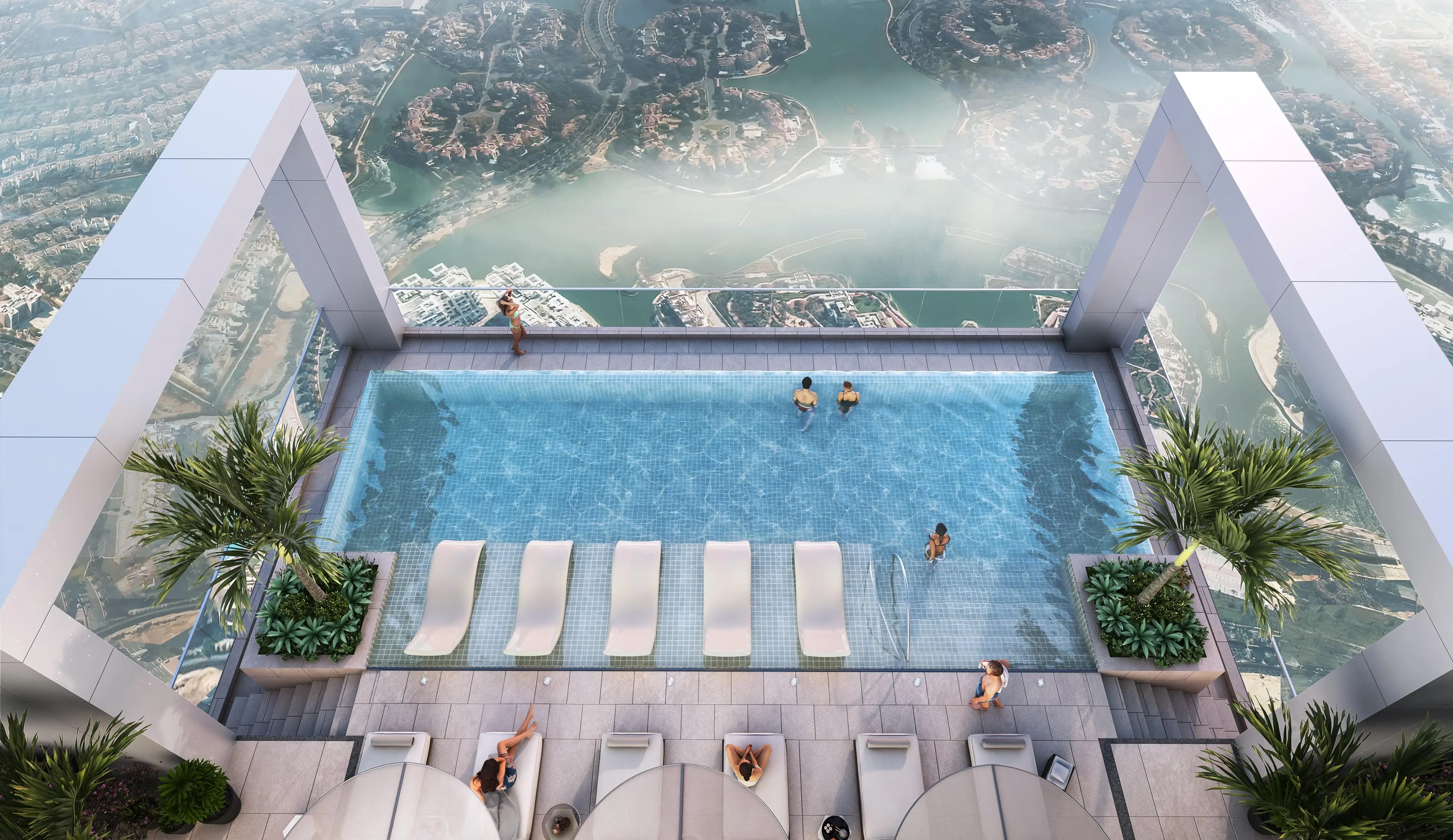 Residents will enjoy a variety of premium amenities. The rooftop hosts a lounge area with an infinity pool and a panoramic observation deck. The podium features an additional pool, a yoga area, a jacuzzi, barbecue zones, and sports courts. Inside, there is a fully equipped gym, a sauna, and a children’s play area. The ground level will house retail shops and restaurants.