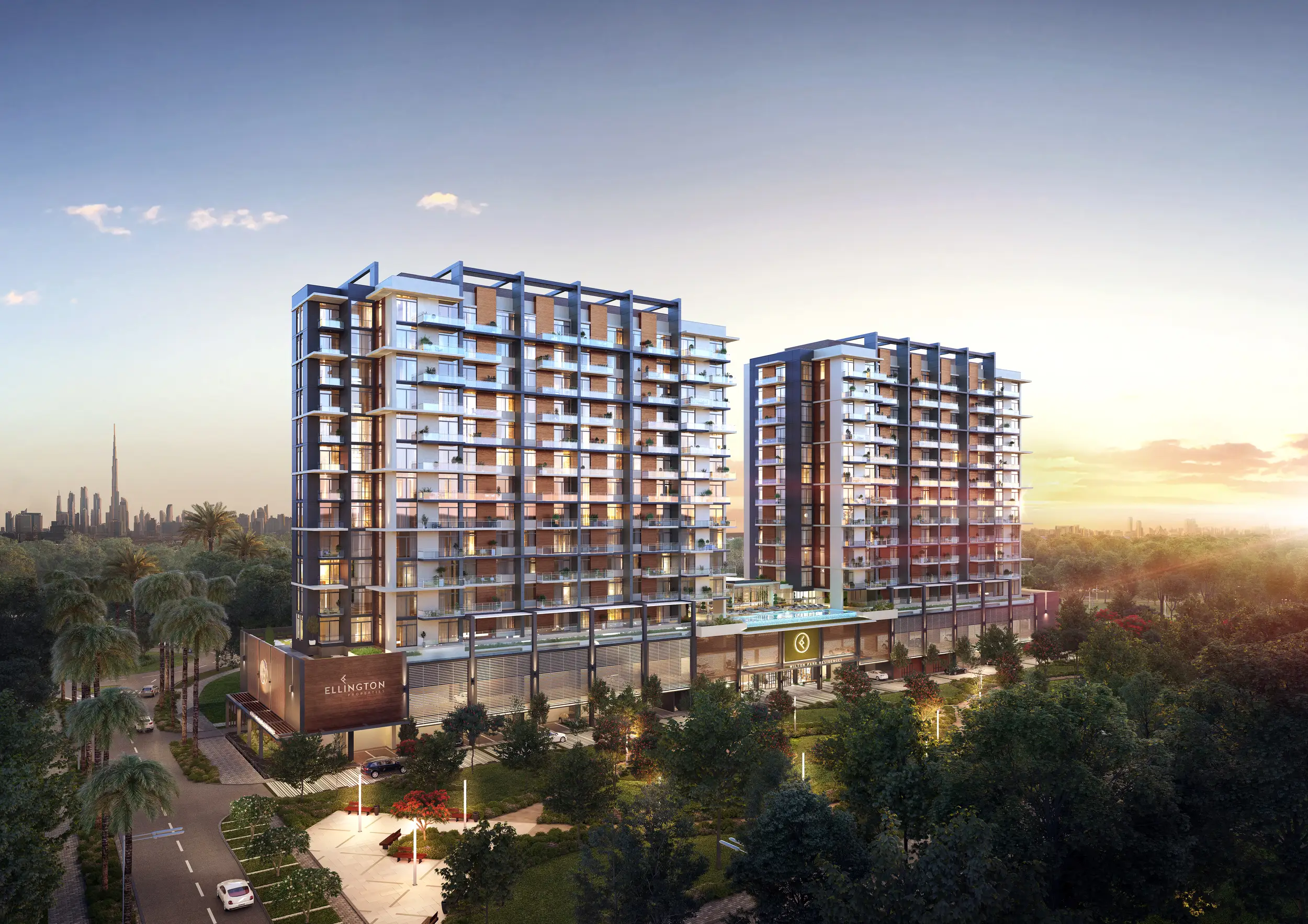 Shared Pool Wilton Park Residences is a modern residential complex from Ellington Group in Mohammed Bin Rashid Al Maktoum City. It consists of two elegant towers with a ground floor, two podium levels and twelve residential floors. It offers an exquisite selection of studios, 1-and 2-bedroom apartments.